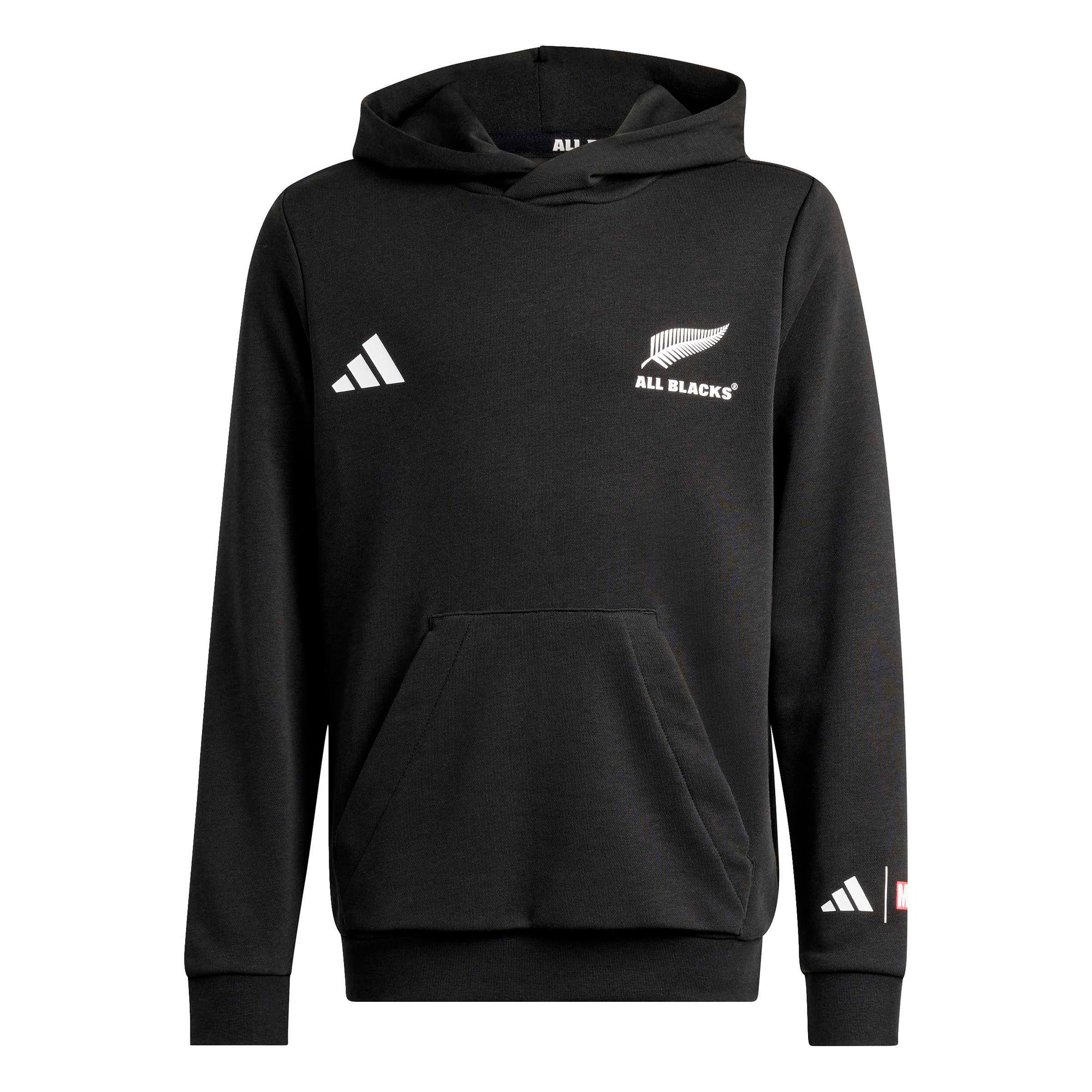 Der All Blacks x Marvel Hoodie vereint die Kraft des Kiwi-Rugbys und der Marvel-Superhelden – eine unschlagbare Kombination in einer markanten schwarzen Silhouette, die für ein selbstbewusstes Spiel wie gemacht ist.