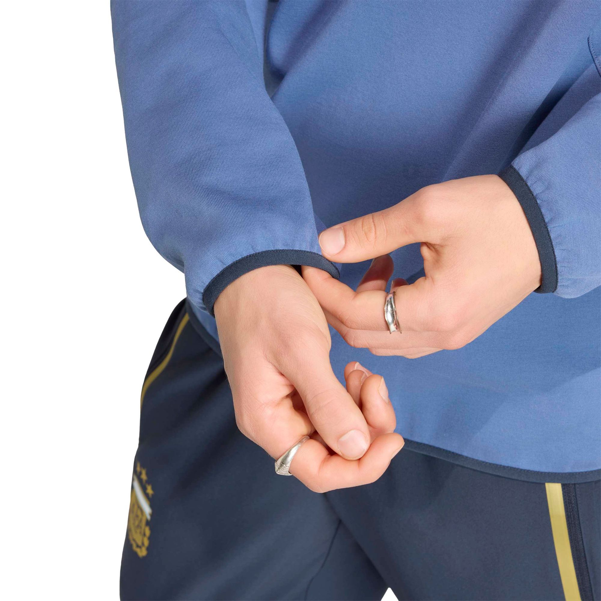 Der Argentinien Tiro Travel Crew Pullover ist dein Must-have für eine nahtlose Mischung aus Fußballkultur und Streetwear-Style. Das Modell mit modernem Design ist von der dynamischen Welt des Running inspiriert und bietet gleichzeitig eine fußballinspirierte Passform und Haptik.