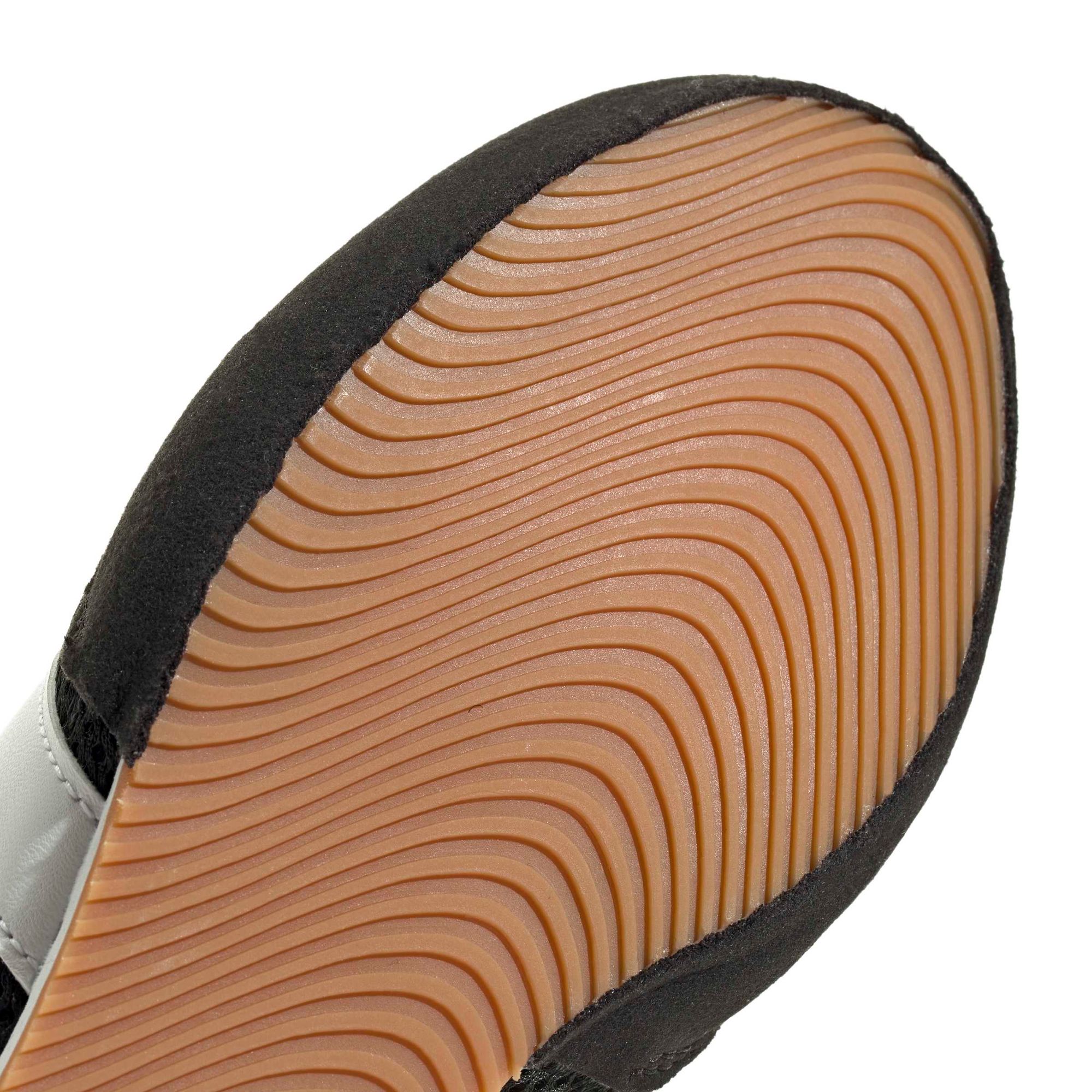 Eine gestanzte Zwischensohle sorgt für ein dämpfendes Gefühl unter den Füßen und ist perfekt für schnelle Fußarbeitstrainings. Die Gummiaußensohle für Bewegungen in alle Richtungen sorgt für Agilität und Reaktionsfreudigkeit und hilft Kindern, sich im Ring schnell und sicher zu bewegen.