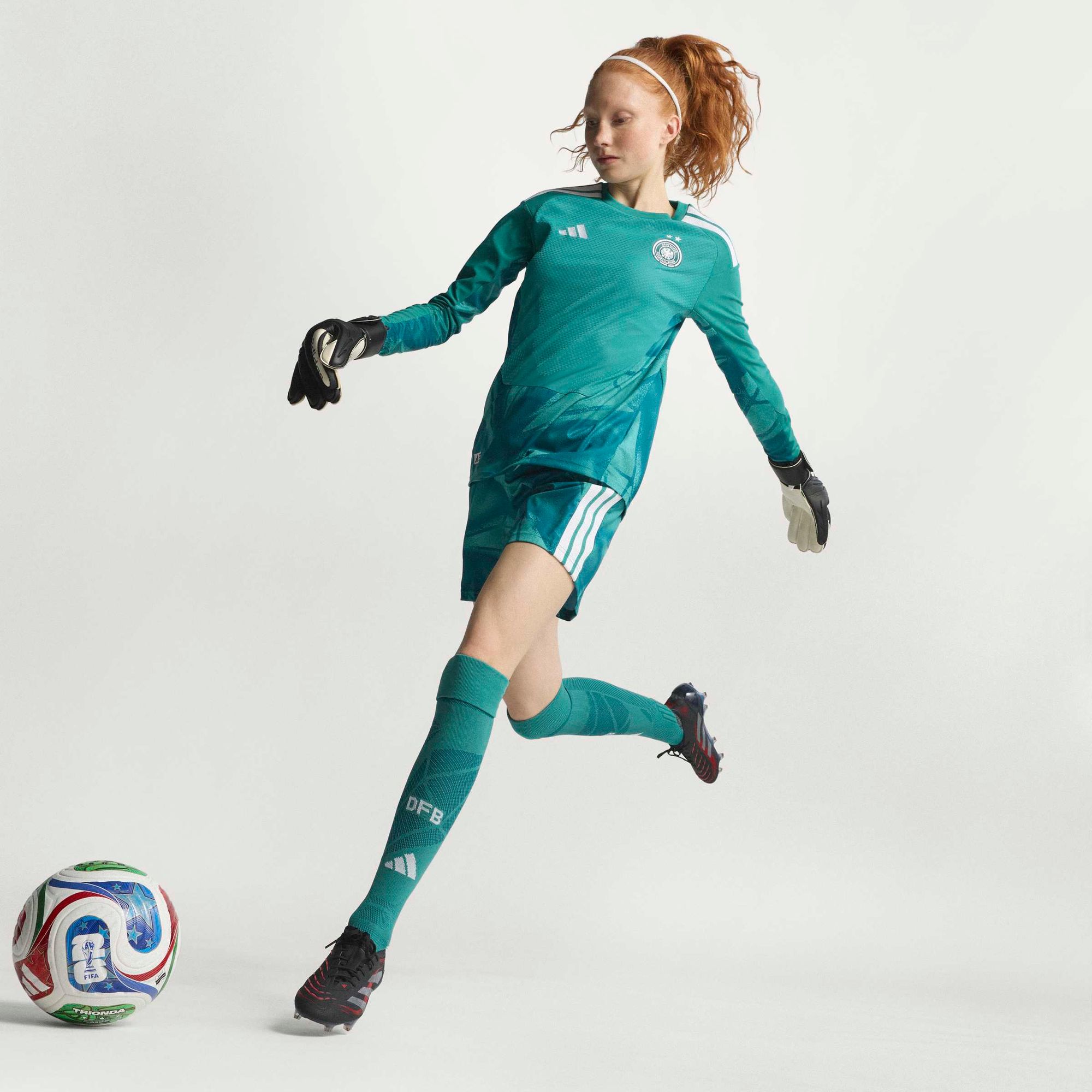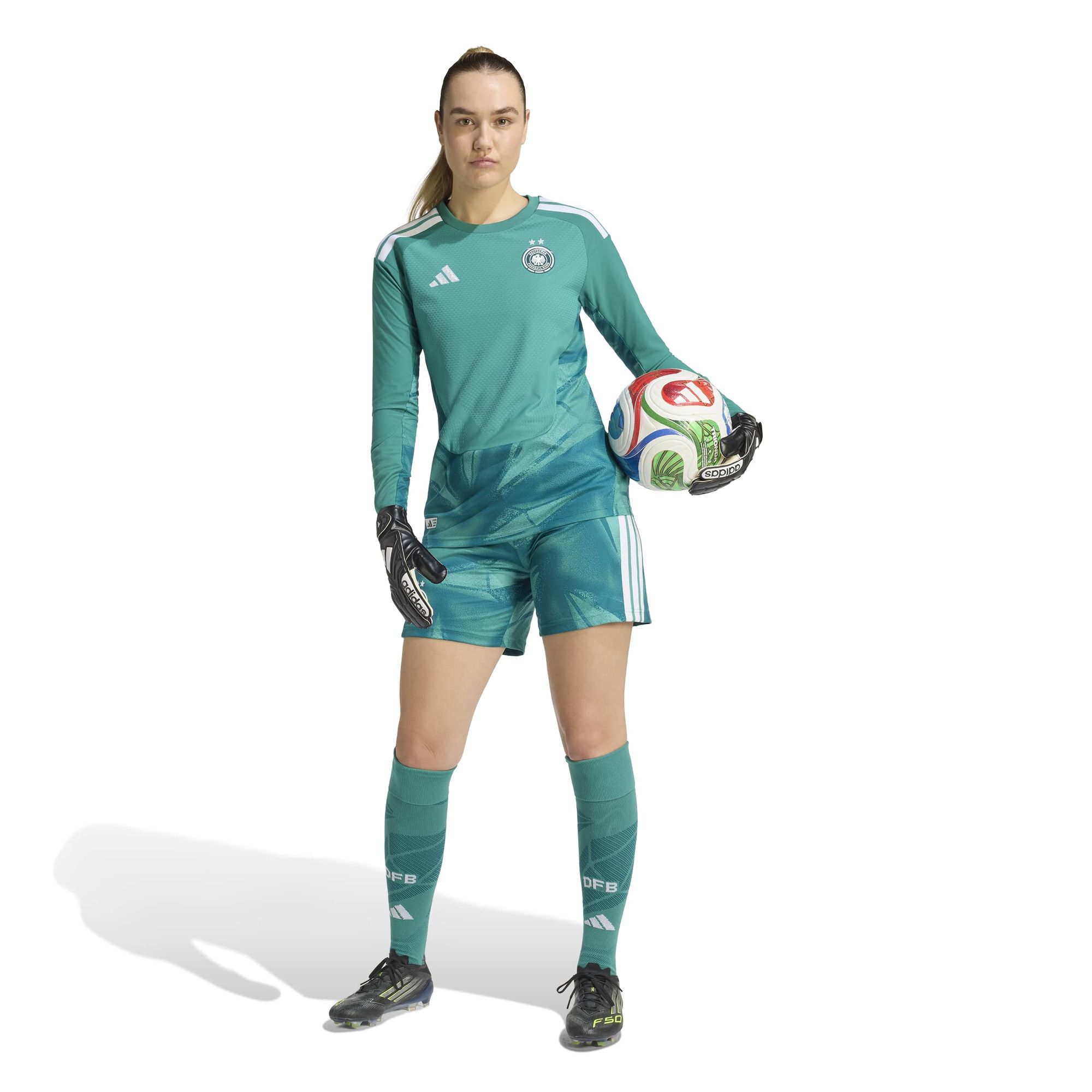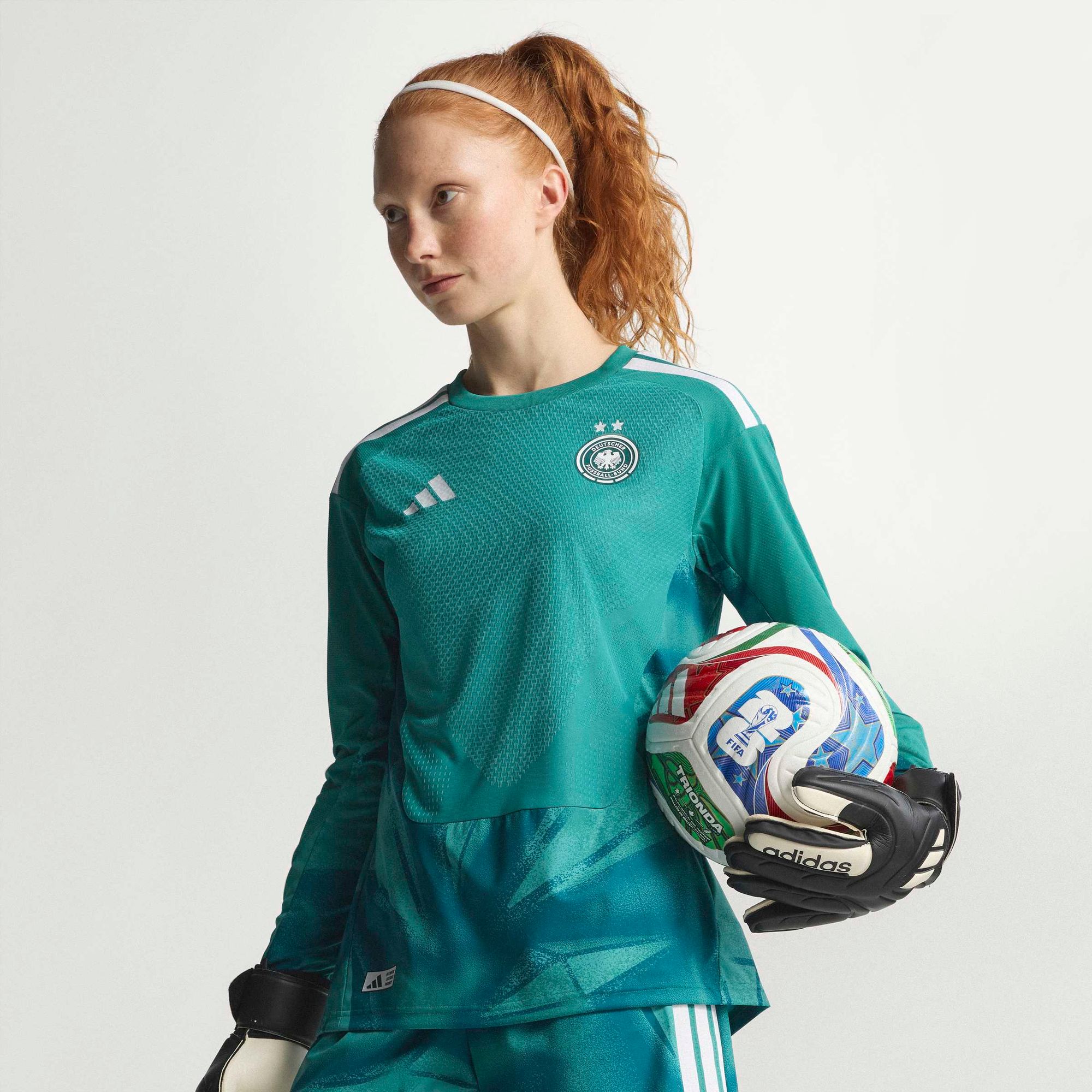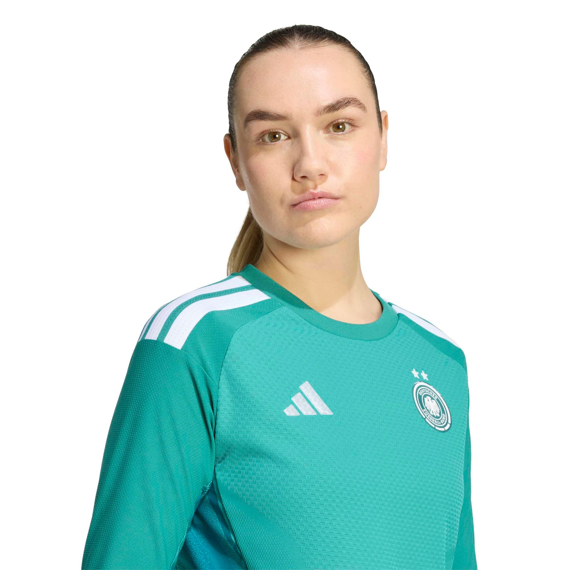 Das offizielle Trikot der Deutschland-Torwarte kombiniert innovative Materialien für maximale Performance auf dem Platz. Entwickelt in Zusammenarbeit mit Profis, verkörpert es Mut und Optimismus, damit du das Spiel souverän kontrollierst.