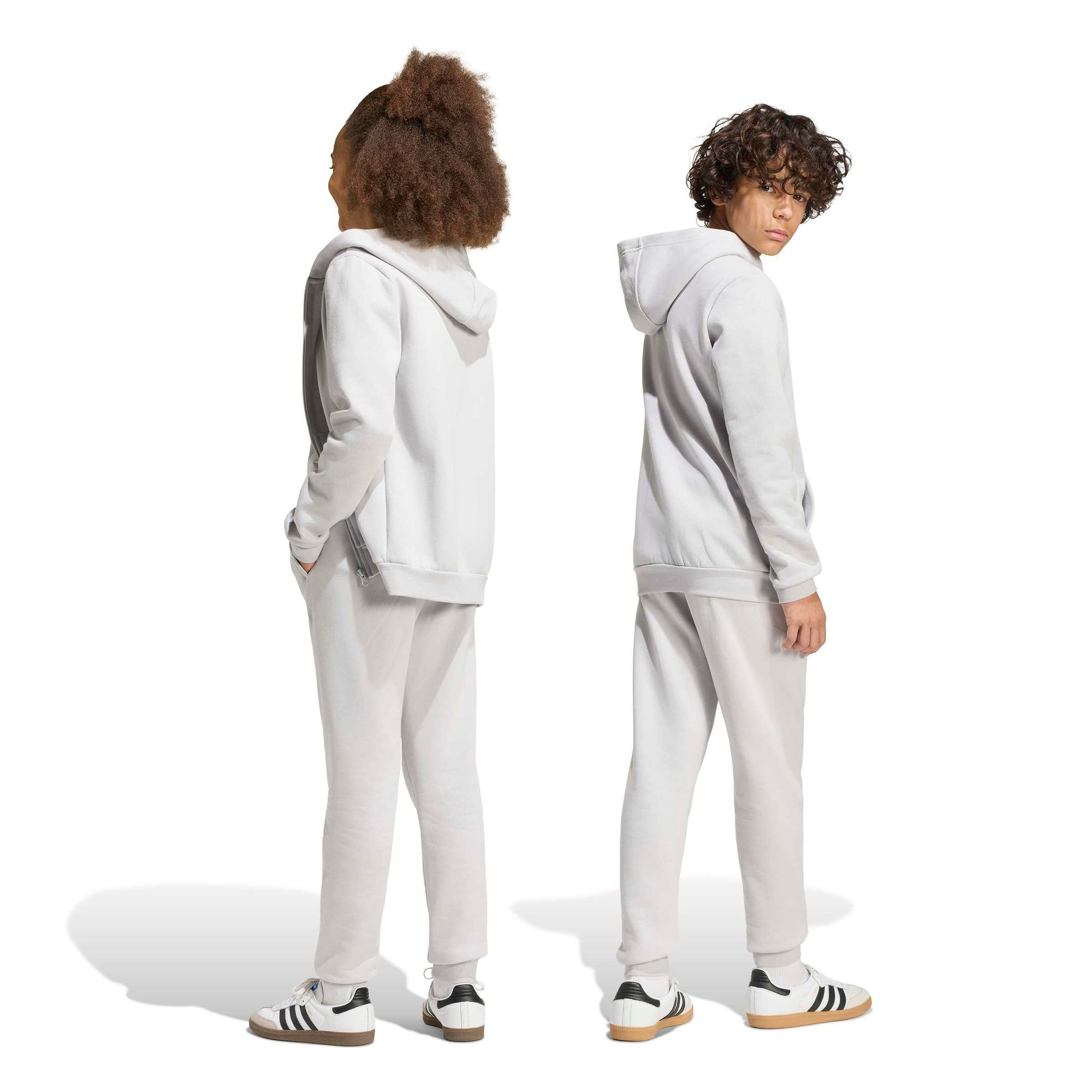 Durch den regulären Schnitt entsteht ein eleganter Freizeitlook. Das aufgestickte Badge of Sport verankert die Jogginghose stolz in der adidas DNA und macht sie zu einer stilvollen Wahl für junge Fußballfans.