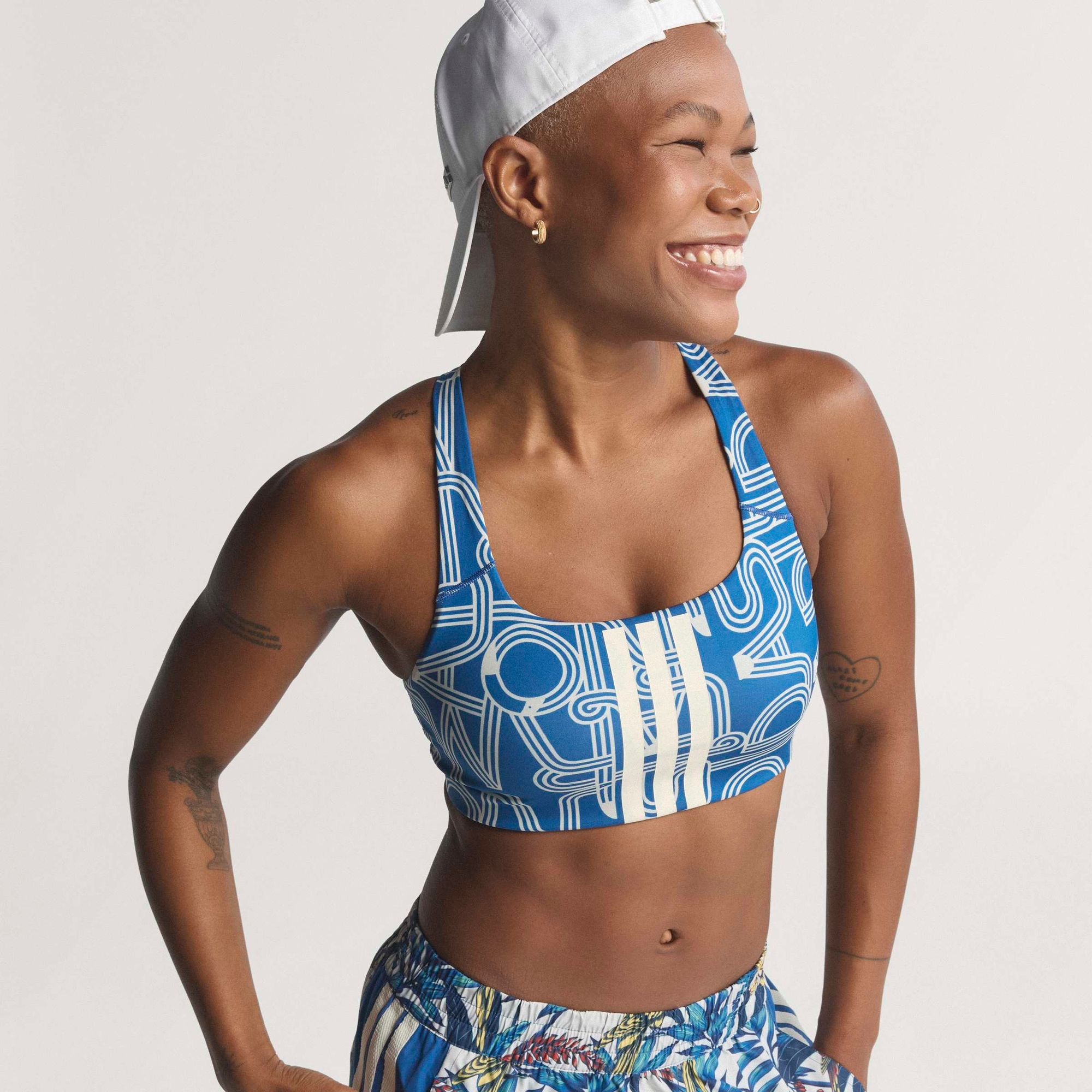 Dieser adidas x FARM Rio Optime BH mit mittlerem Halt ist Teil einer Kollektion, die von den kühnen Wandgemälden auf städtischen Plätzen auf der ganzen Welt inspiriert wurde.