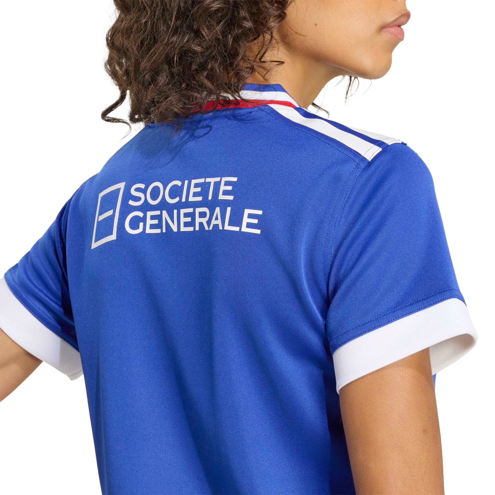 Mit dem France Rugby Home Replica Jersey feierst du das französische Rugby und den legendären FFR. Das Trikot ist in leuchtendem Mittelblau gehalten mit einem modernen Flachstrickkragen in Blau, Weiß und Rot.