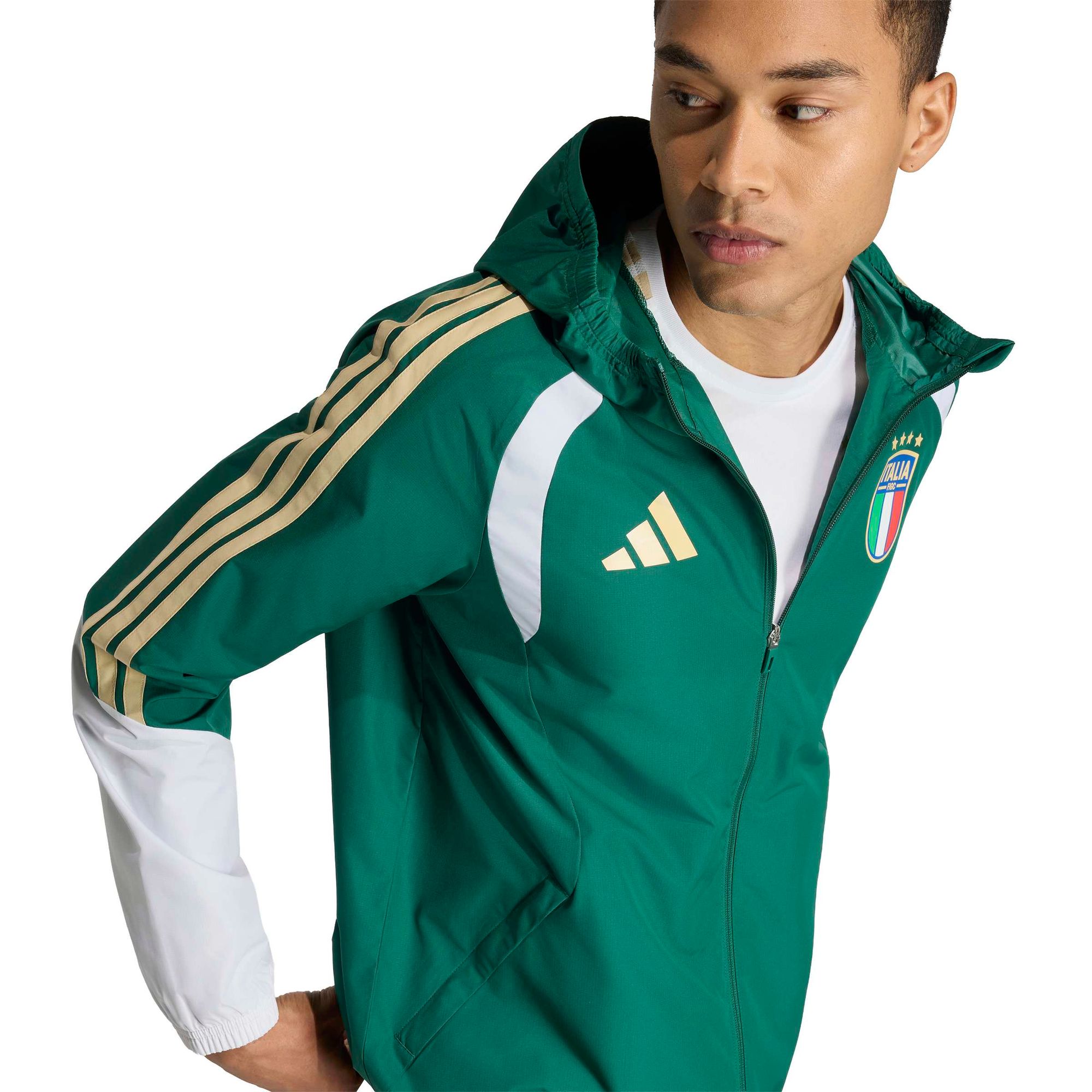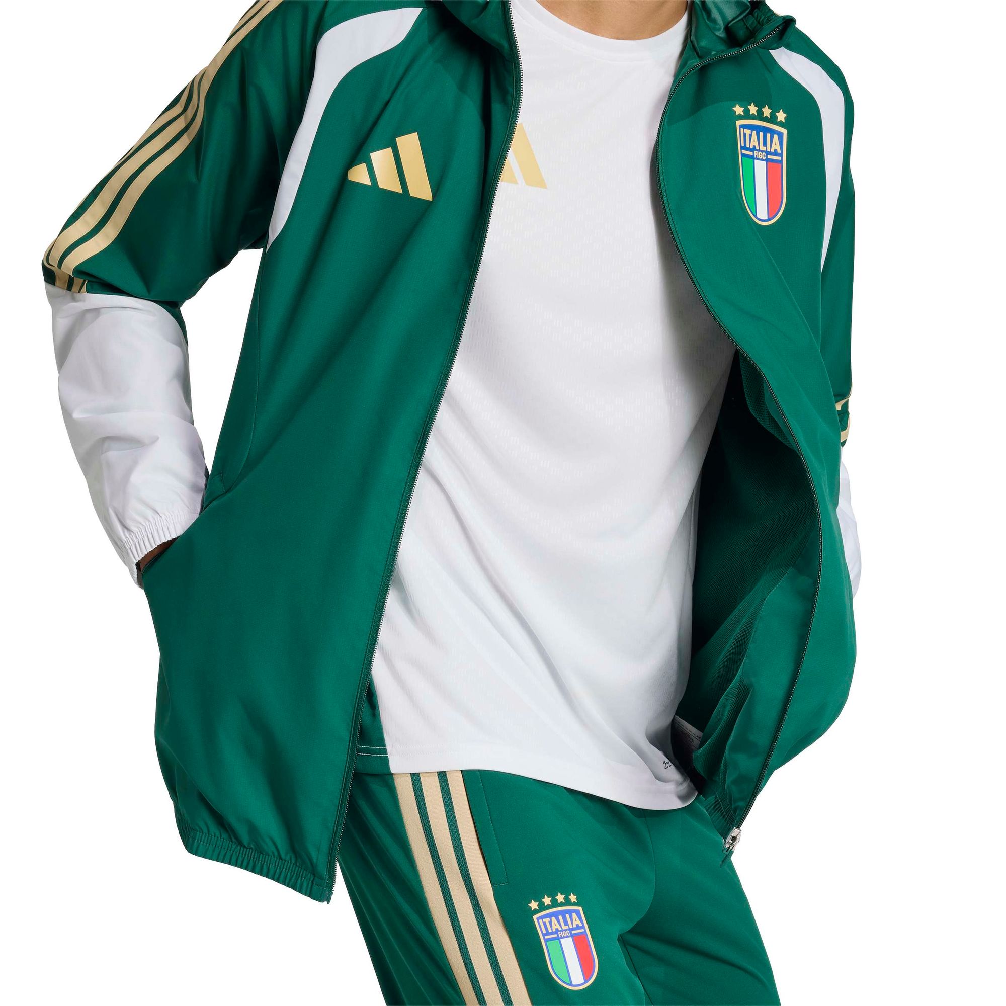 Diese Allwetterjacke Italien 26 Tiro lässt dich mit Selbstvertrauen aufs Spielfeld treten. Sie kombiniert italienische Fußballtradition mit modernem Stil und hoher Funktionalität.