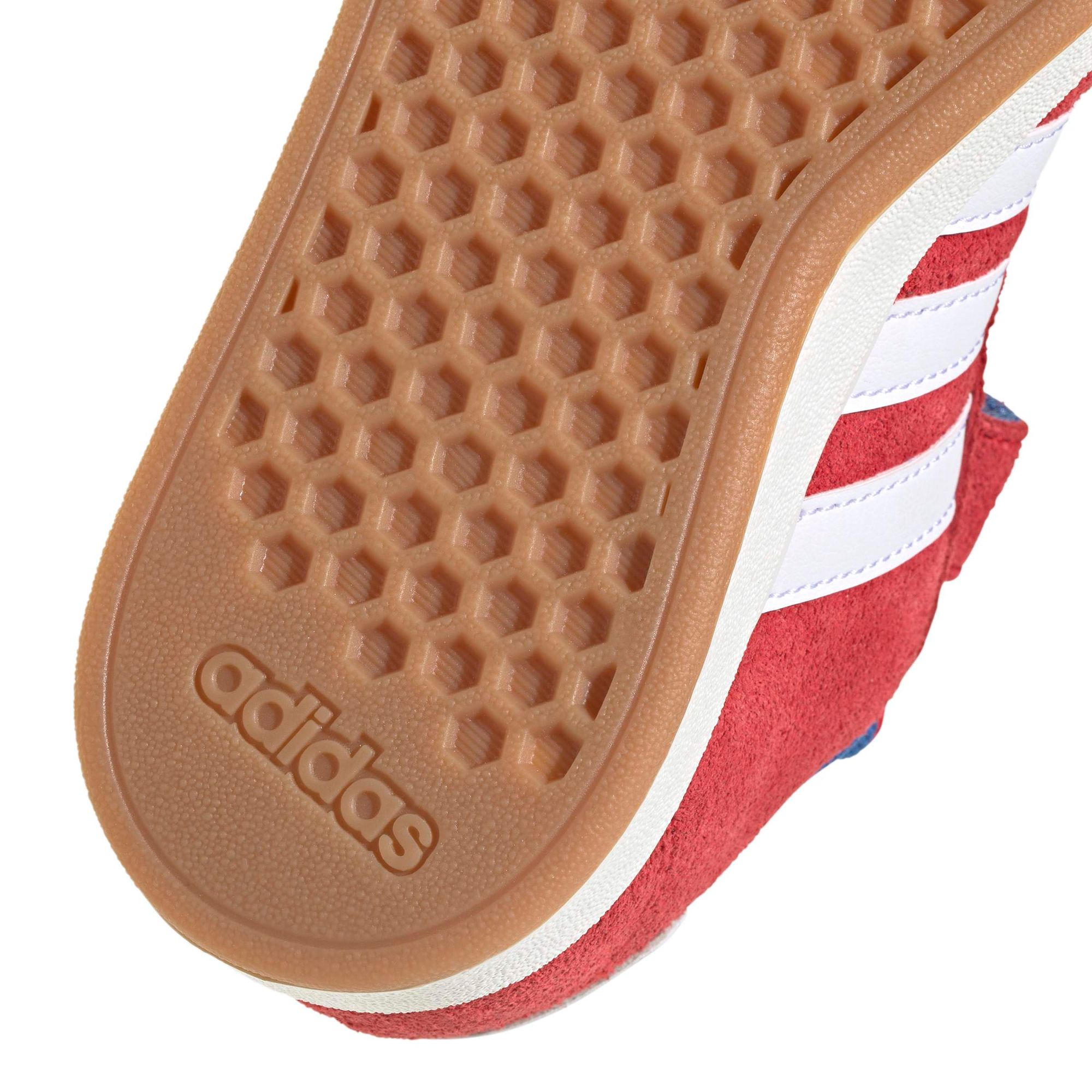 Mit diesem adidas Schuh für Kinder ist dein kleiner Schatz bereit fürs Spielen und Toben. Er hat ein Obermaterial aus weichem Wildleder, eine breite, elastische Schnürung und einen Klettverschlussriemen für einen sicheren, bequemen Sitz. Die gepolsterte Zunge versprüht außerdem lässigen 2000er-Vibe. Egal, ob auf dem Spielplatz oder beim Chillen, dieser Schuh sorgt für einen coolen Look und ein angenehmes Tragegefühl.