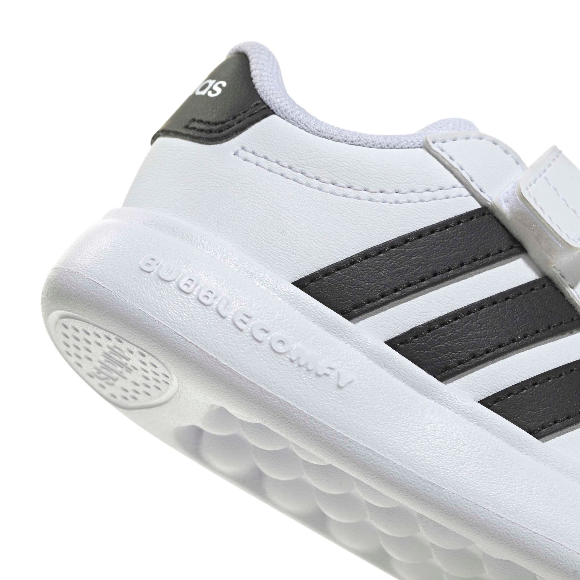 Leuchtende Farben und ein Mix aus verschiedenen Texturen regen die Fantasie der Kleinen an, während die lustige und funktionale Außensohle in Form von Blasen eine weitere spielerische Dimension hinzufügt. Als erster adidas Schuh gibt es kaum etwas Besseres als „bubbletastic“ Style und Komfort.