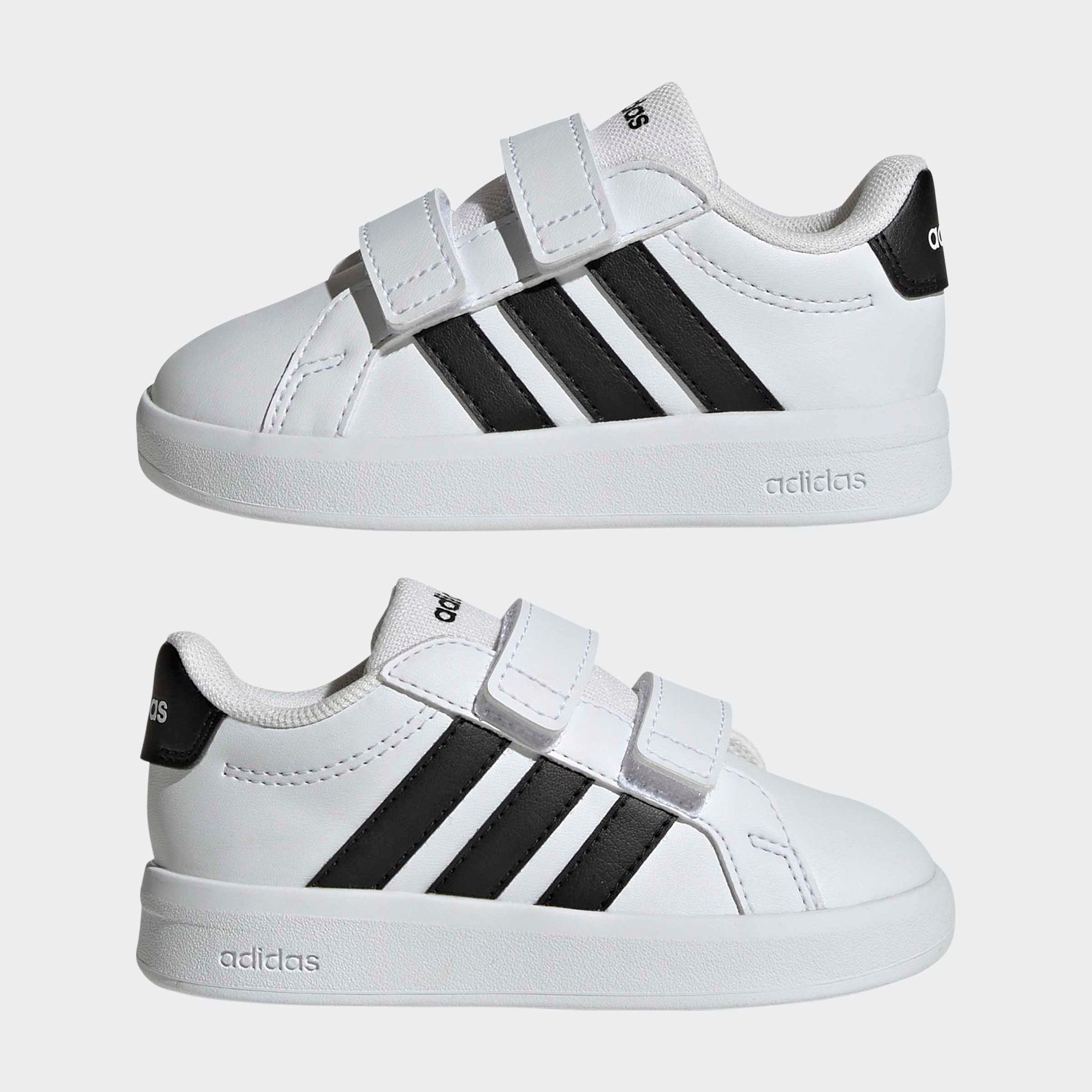 Die Grand Court 3.0 Schuhe für Babys und Kleinkinder sind ein klassischer adidas Court Sneaker, neu gestaltet für kleine Füße. Mit zeitlosem Style begleiten sie die jungen Abenteurer, während weitenregulierbare Klettverschlussriemen den Eltern das Anziehen erleichtern.