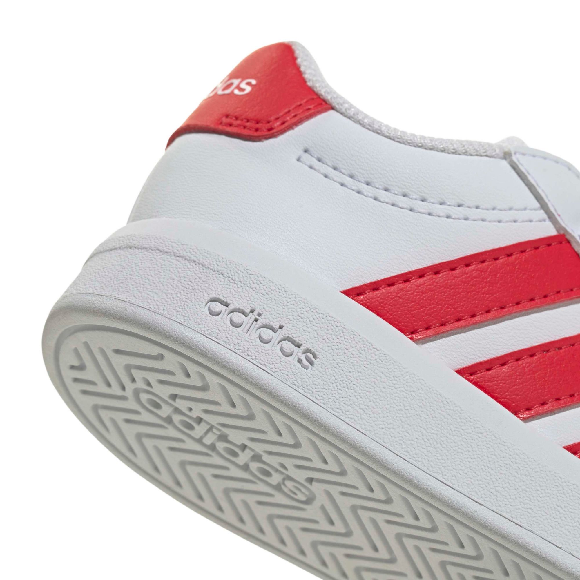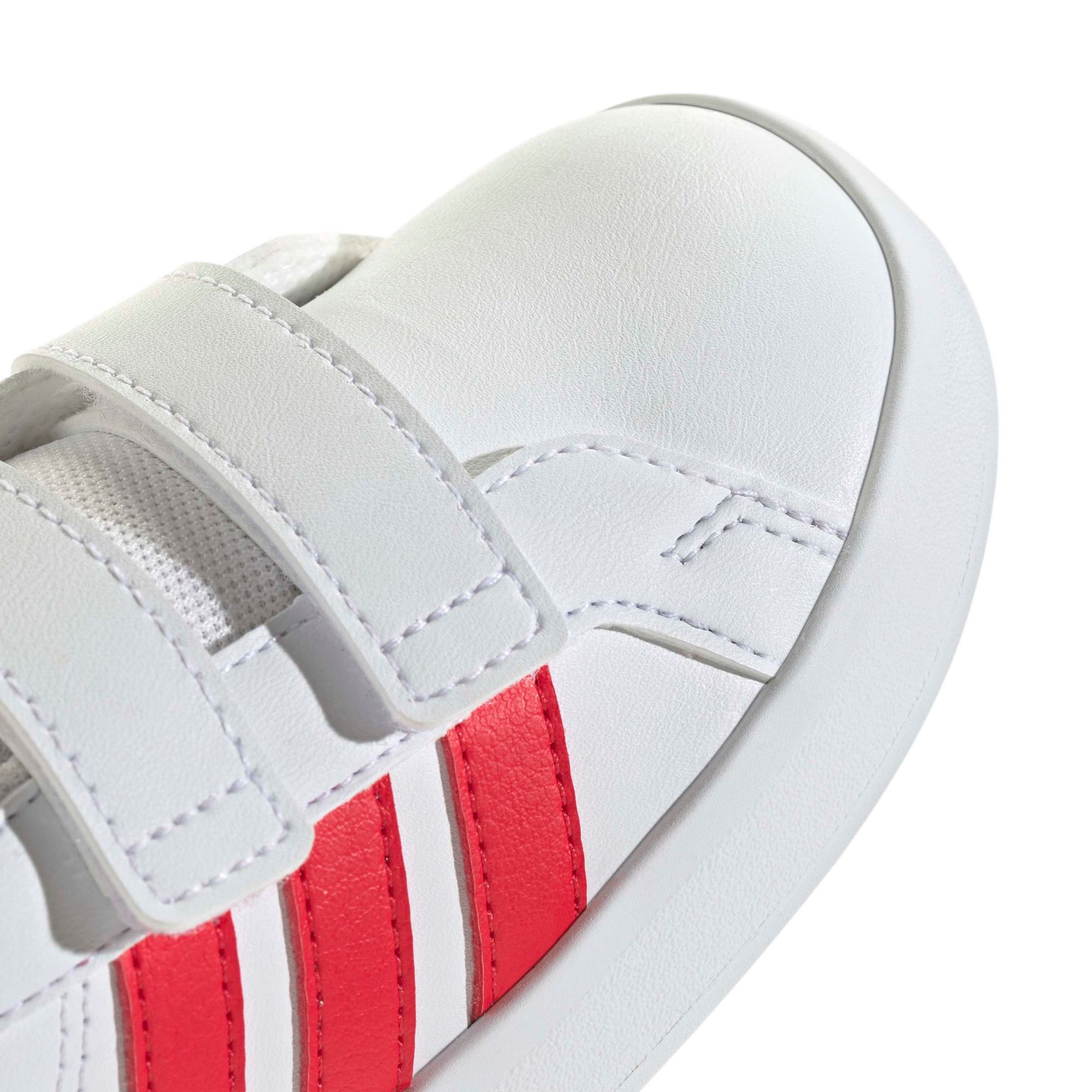 Die Grand Court 3.0 Schuhe für Babys und Kleinkinder sind ein klassischer adidas Court Sneaker, neu gestaltet für kleine Füße. Mit zeitlosem Style begleiten sie die jungen Abenteurer, während weitenregulierbare Klettverschlussriemen den Eltern das Anziehen erleichtern.