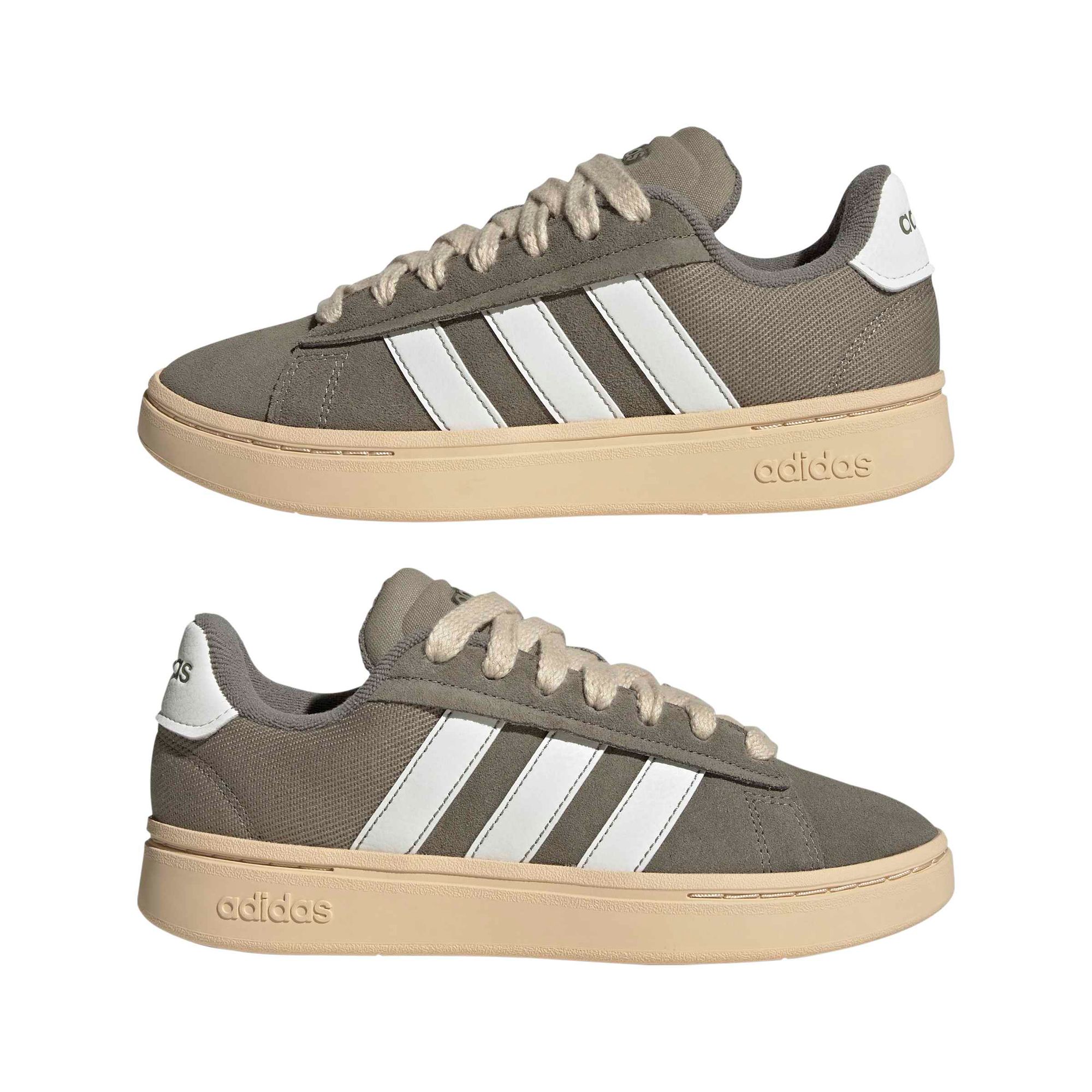 Der Grand Court Alpha 00s Schuh wurde von der Chunky-Ästhetik inspiriert, die den heutigen Streetstyle prägt, und richtet sich mit seinen markanten 3-Streifen und dicken Schnürsenkeln an alle Modemutigen.