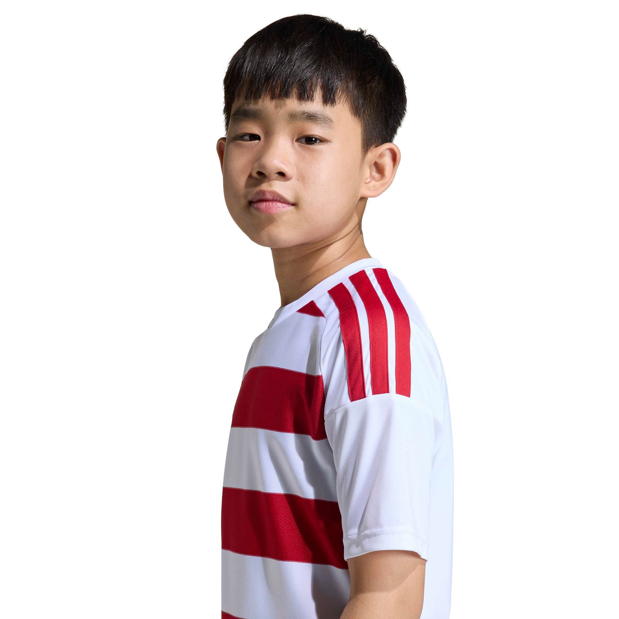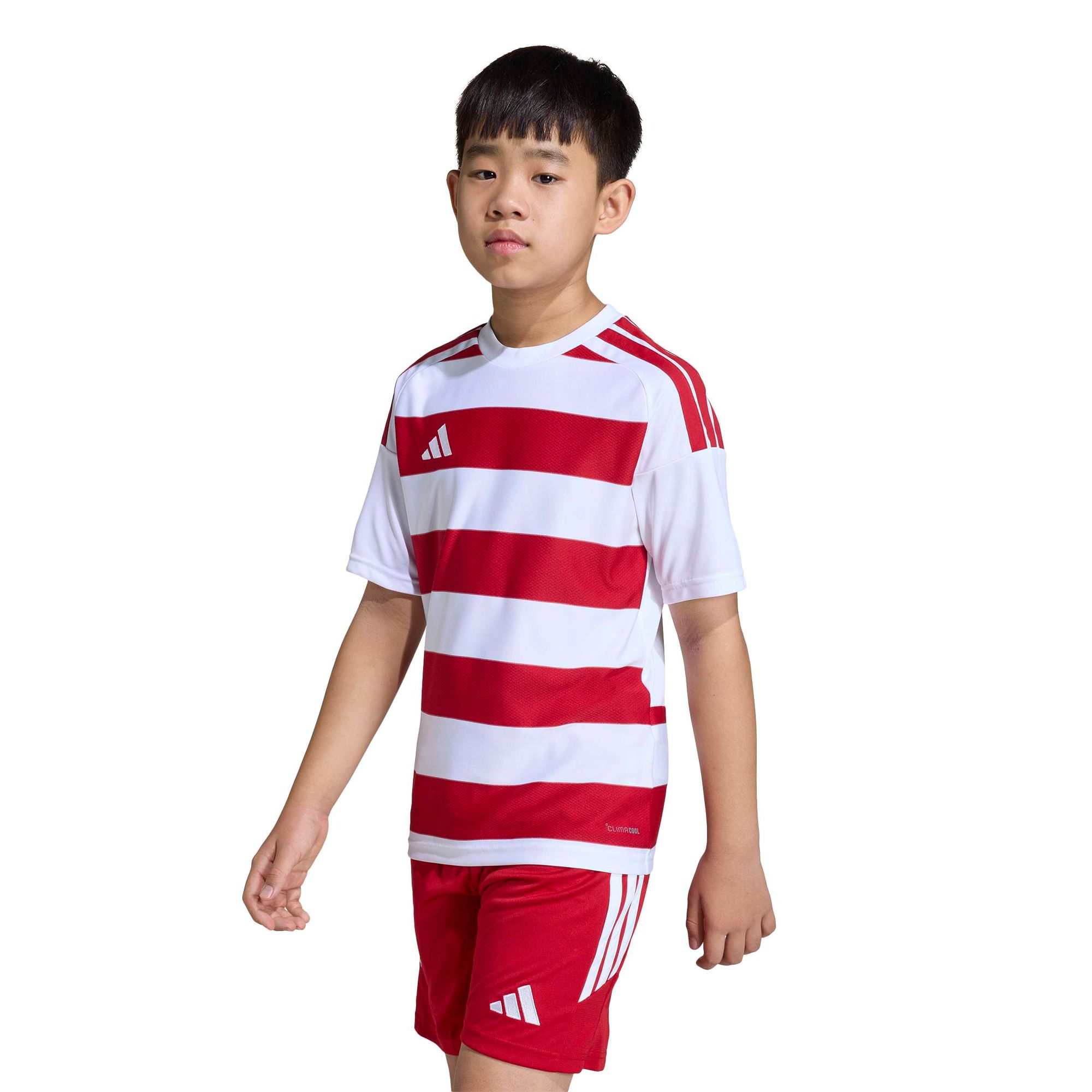 Klassischer Style trifft auf Alltagsabenteuer. Das adidas Hooped26 Jersey für Kinder ist von traditionellen Trikots inspiriert und wurde für aktive Kinder entwickelt, die auch beim Spielen gut aussehen wollen.
