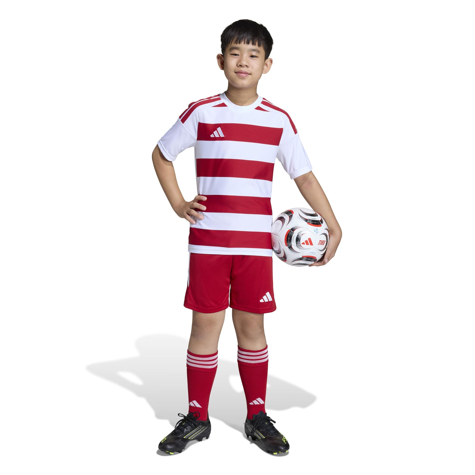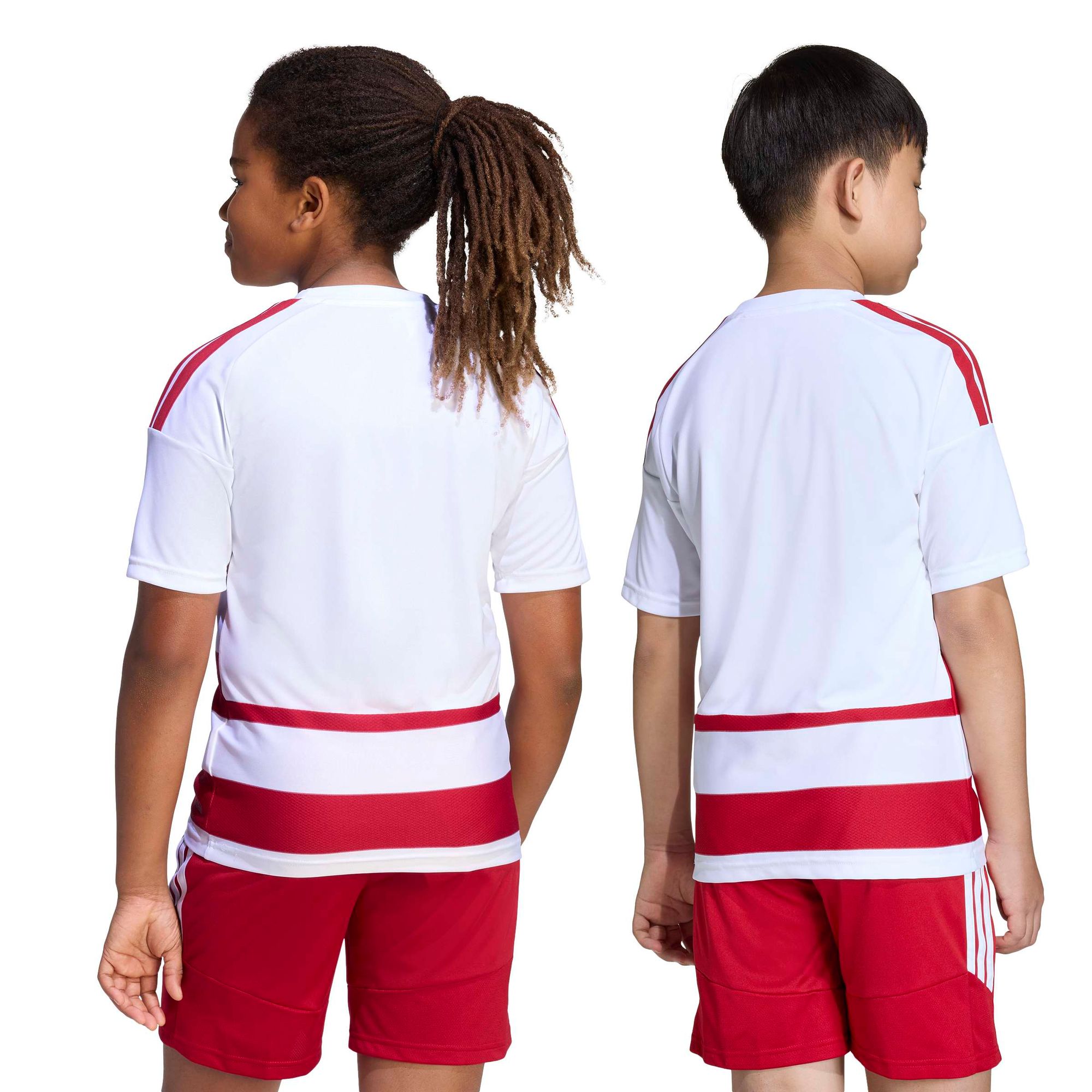 Das atmungsaktive, gewirkte Material und die adidas Climacool Technologie sorgen dafür, dass die Kinder kühl und trocken bleiben, egal ob sie hart trainieren oder wild herumtollen. Der gerippte Halsausschnitt sorgt für ein cleanes Finish, während die schmale Passform volle Bewegungsfreiheit garantiert – keine Ablenkung, keine Aufregung.