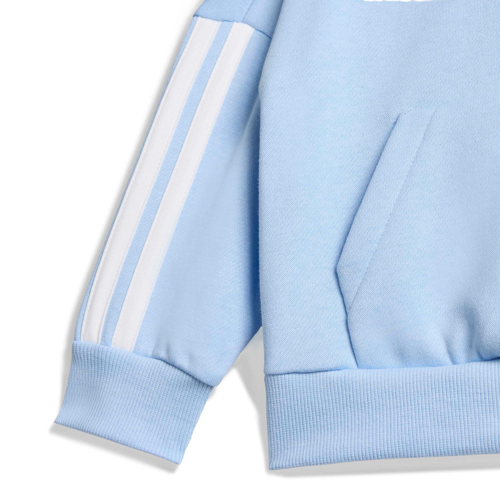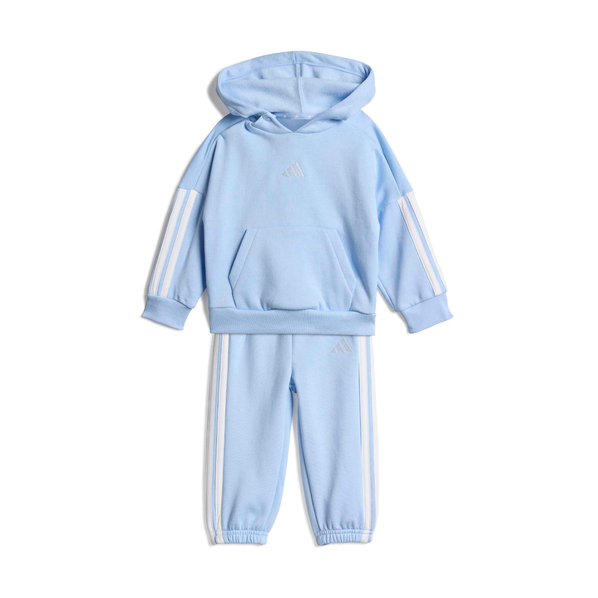 Ob Playdate, Mittagsschlaf oder beides: Dieser bequeme adidas Jogginganzug für Babys und Kleinkinder ist wie gemacht für deinen kleinen Schatz. Während das kuschelige Fleecematerial angenehm warm hält, sorgen die Rippbündchen und der elastische Bund für einen sicheren Sitz. Die legendären 3-Streifen runden den Look mit einem sportlichen Touch ab.
