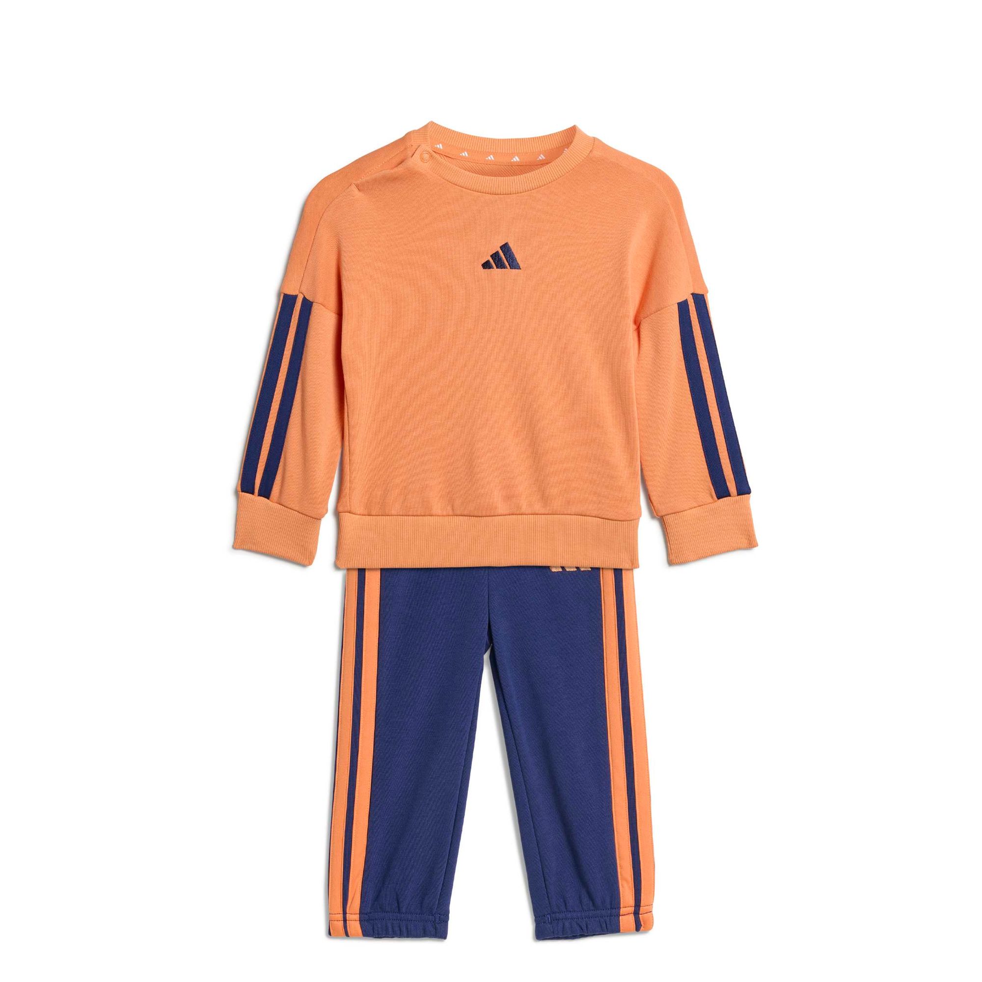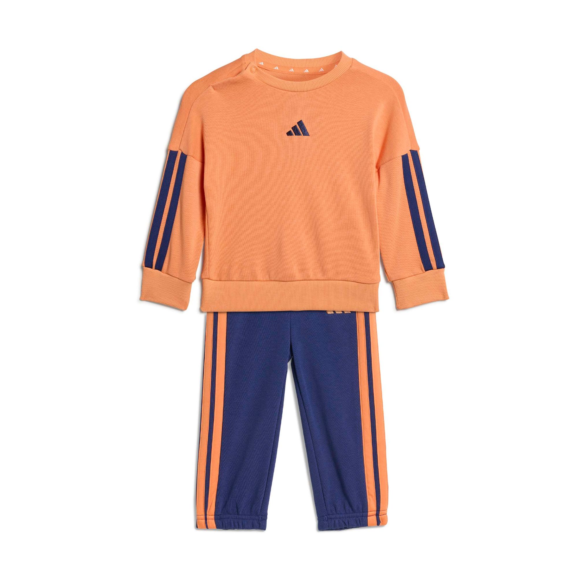 Mit dieser Jogginghose für Babys und Kleinkinder ist dein kleiner Schatz für alles bereit, was der Tag so bringt. Das weiche French-Terry-Material fühlt sich angenehm weich auf der Haut an und die Rippbündchen sorgen für einen sicheren Sitz. Die klassischen 3-Streifen an den Beinen machen den sportlichen Look komplett.