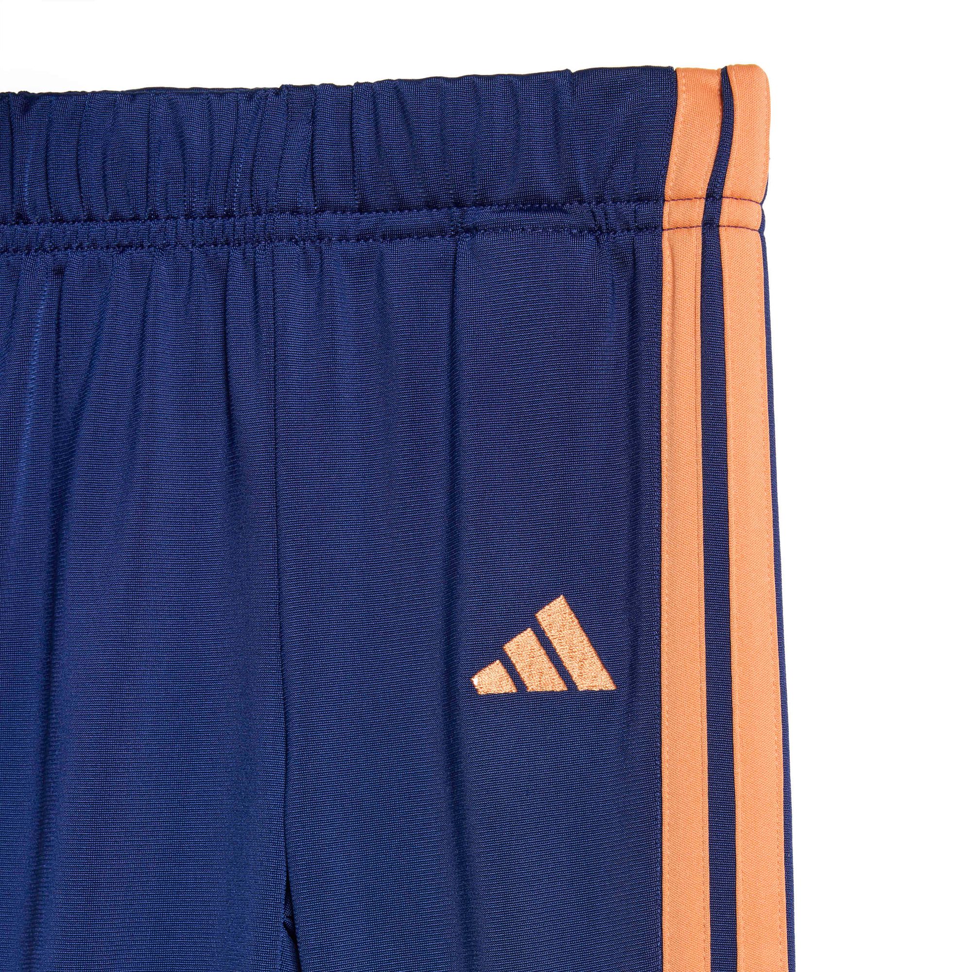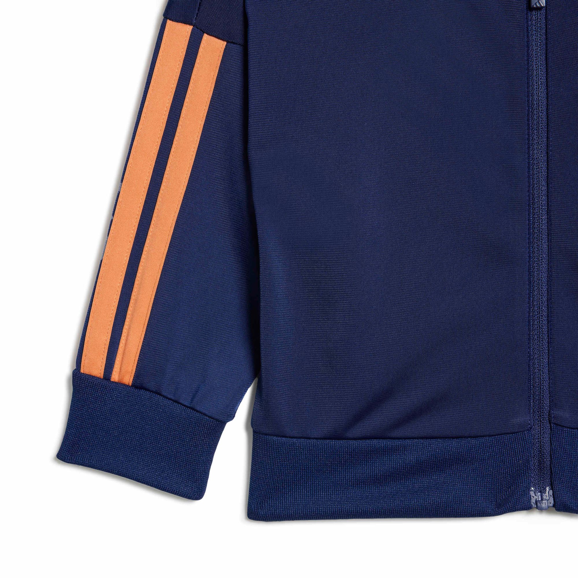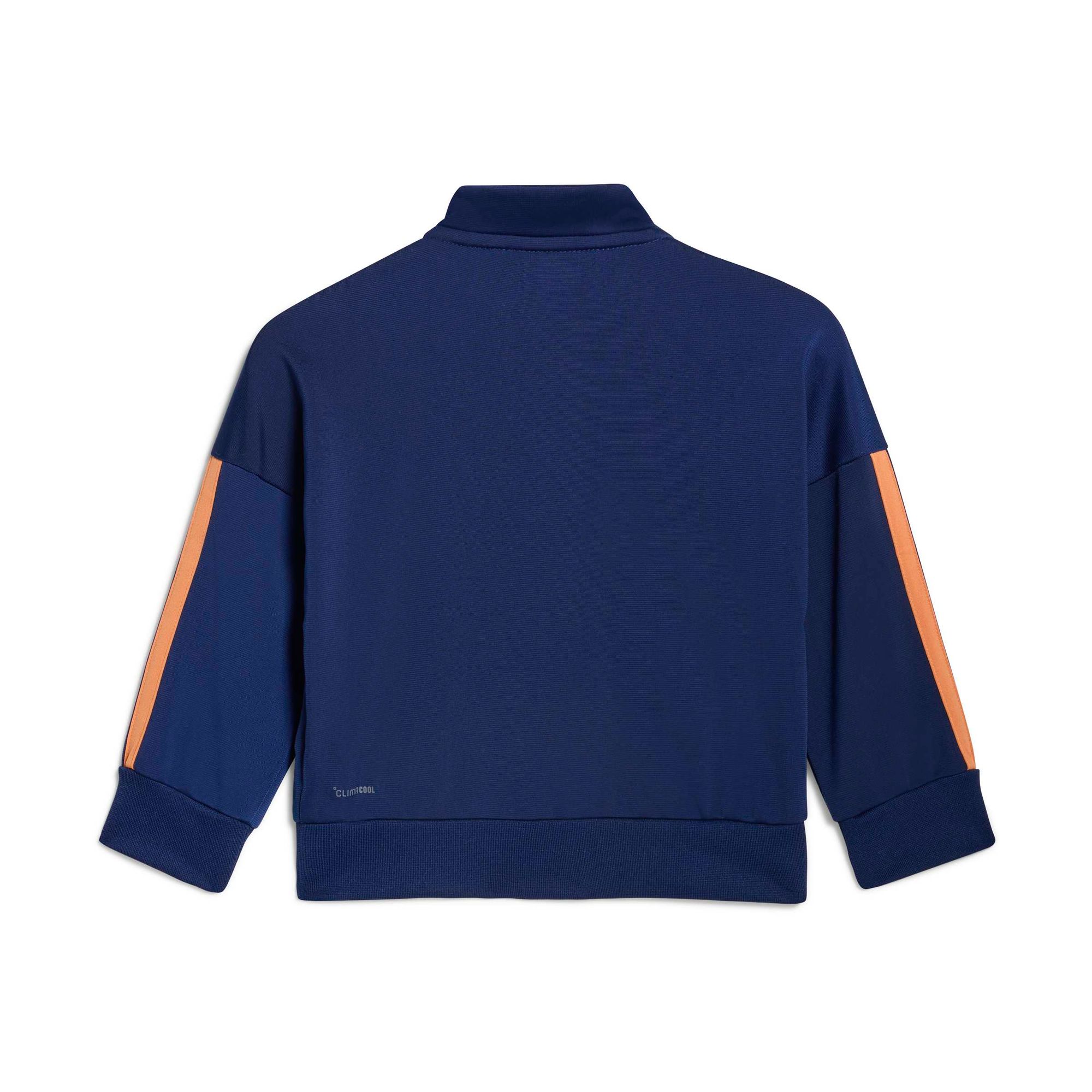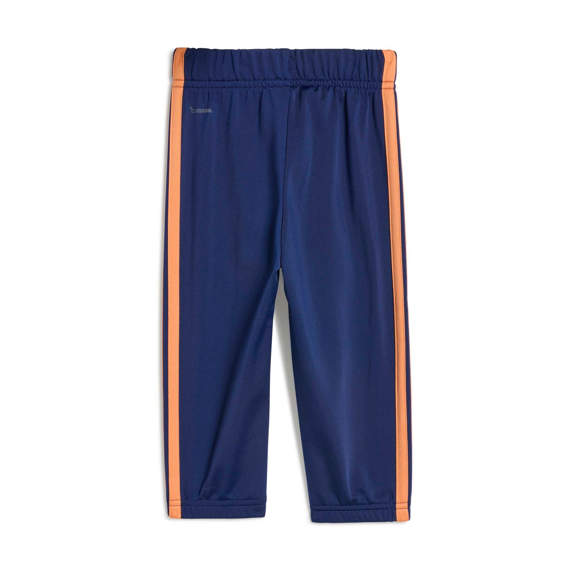 Mit diesem adidas Trainingsanzug für Babys und Kleinkinder ist dein kleiner Schatz bereit für jedes Abenteuer. Der Zweiteiler ist aus weichem, bequemem Material und macht jede Bewegung mit – egal, ob zu Hause im Kinderzimmer oder draußen auf dem Spielplatz. CLIMACOOL leitet Feuchtigkeit von der Haut ab und sorgt für ein kühles und trockenes Tragegefühl – keine Ablenkung, nur Performance. Die klassischen 3-Streifen an den Ärmeln und Beinen verpassen dem Set außerdem einen sportlichen Signature-Look.