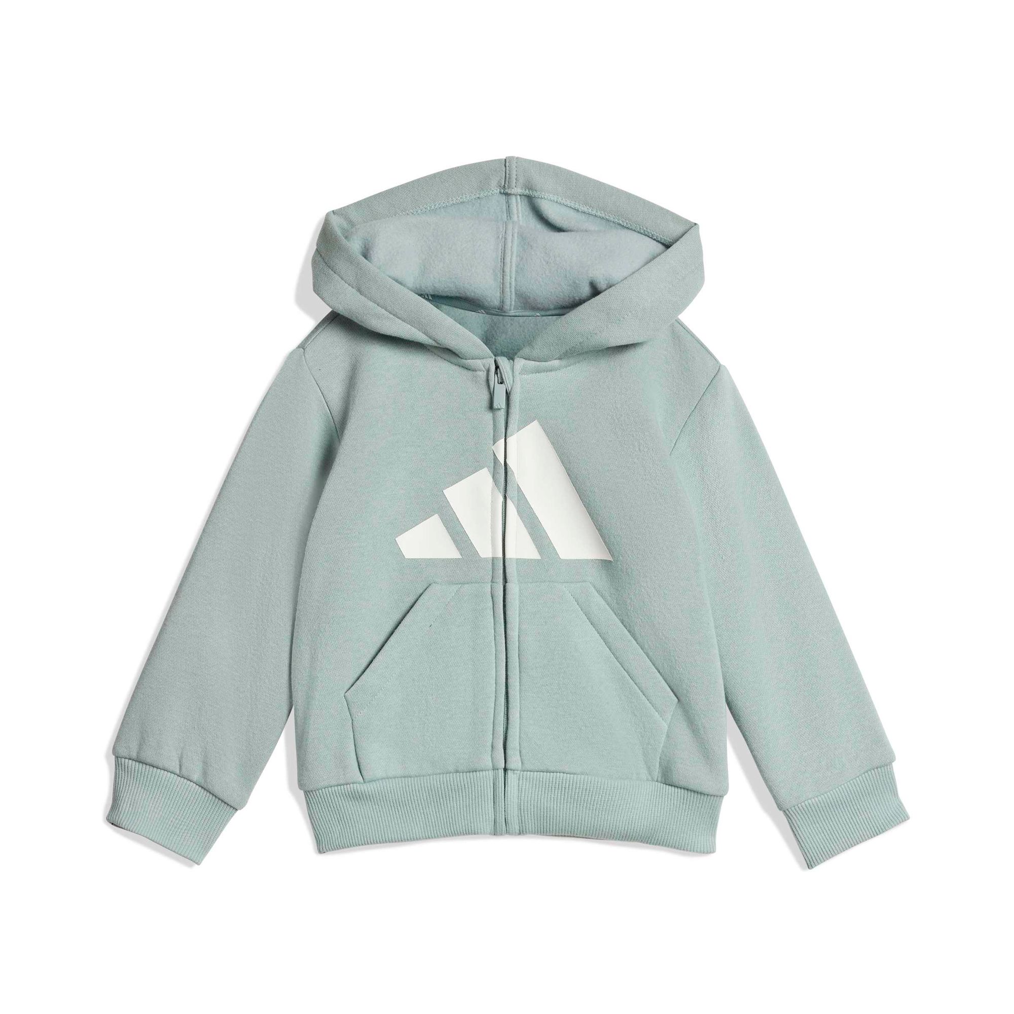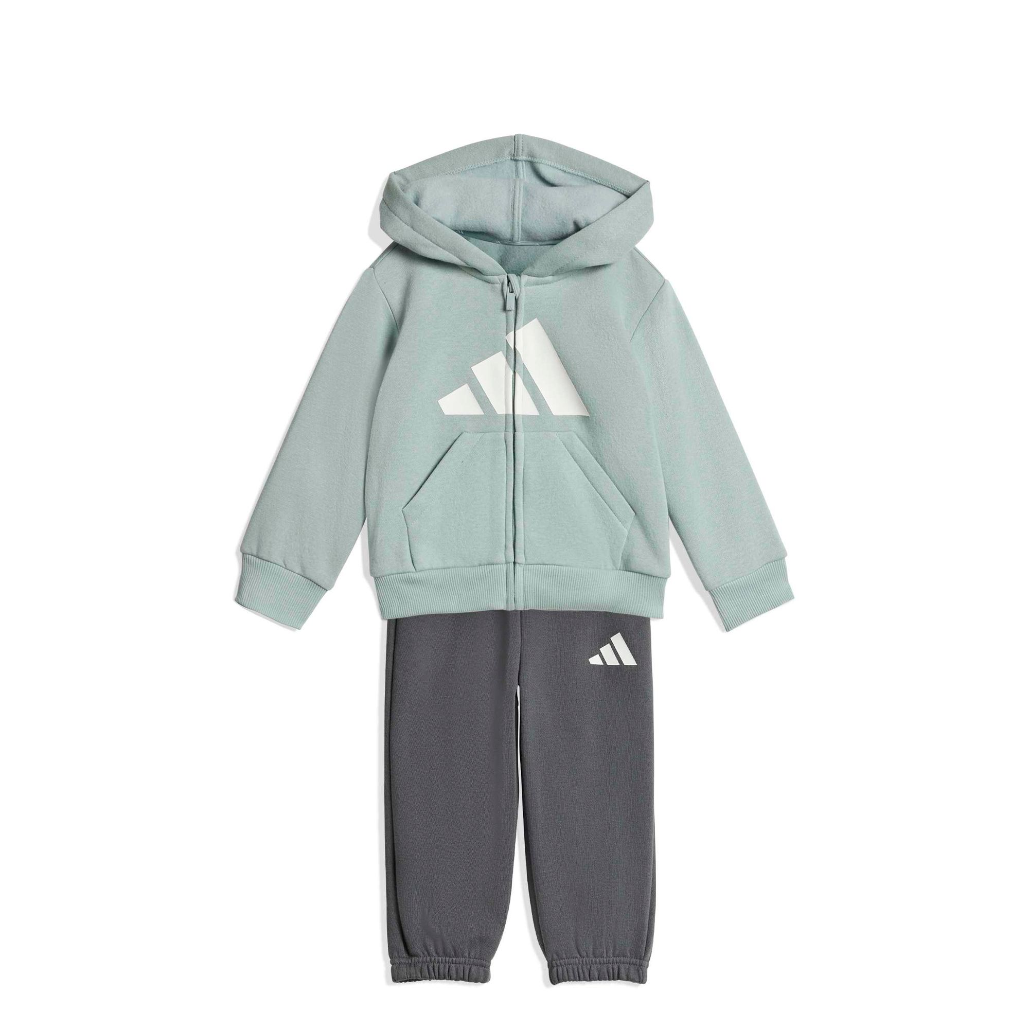 Mit diesem adidas Trainingsanzug für Babys und Kleinkinder ist dein kleiner Schatz für alles bereit. Das Oberteil lässt sich dank Reißverschluss blitzschnell an- und ausziehen, damit die Spielsachen nicht so lange warten müssen. Und die Hose kommt mit einem elastischen Bund mit weitenregulierbarem Kordelzug für einen sicheren Sitz. Dank weichem Fleece ist das Set außerdem superbequem.