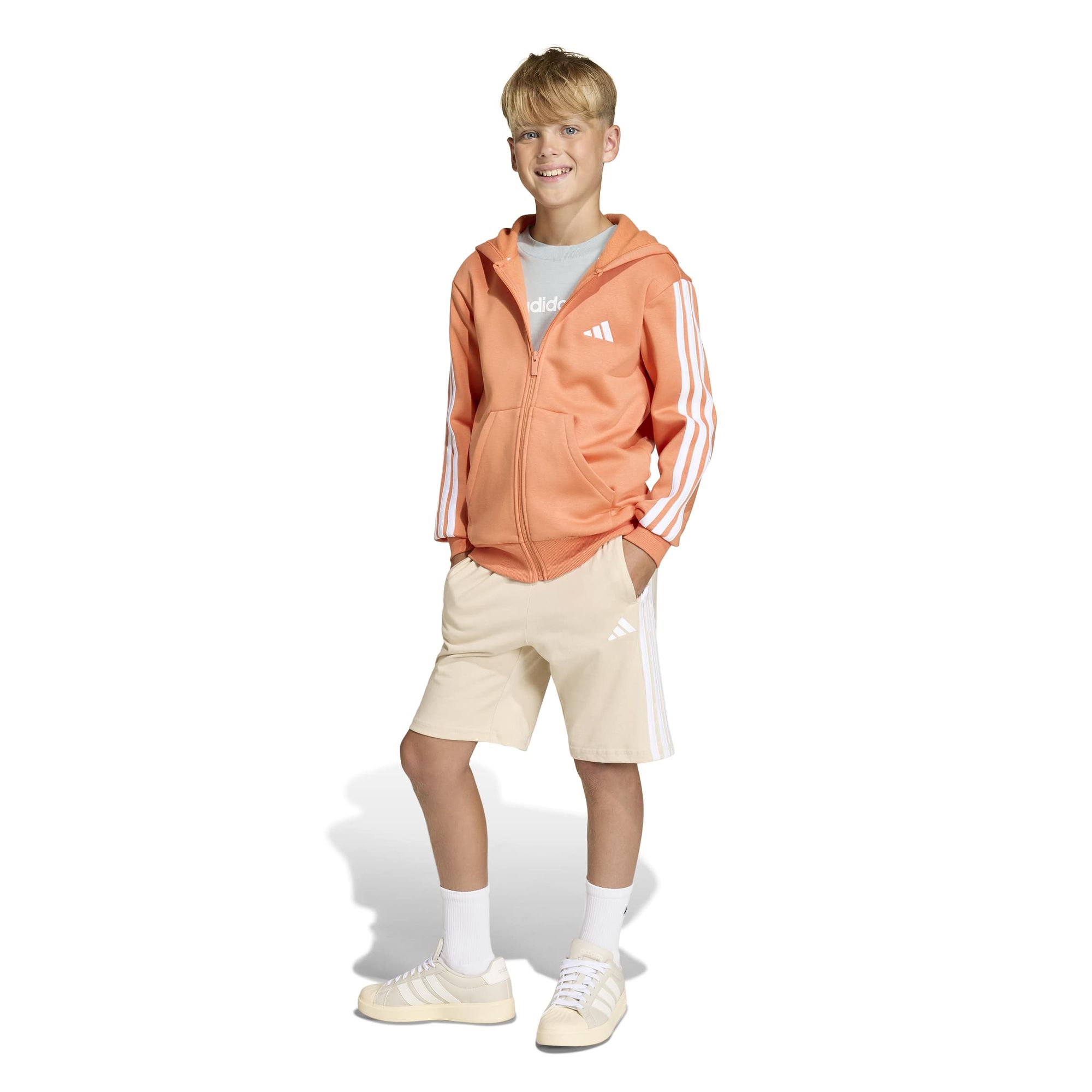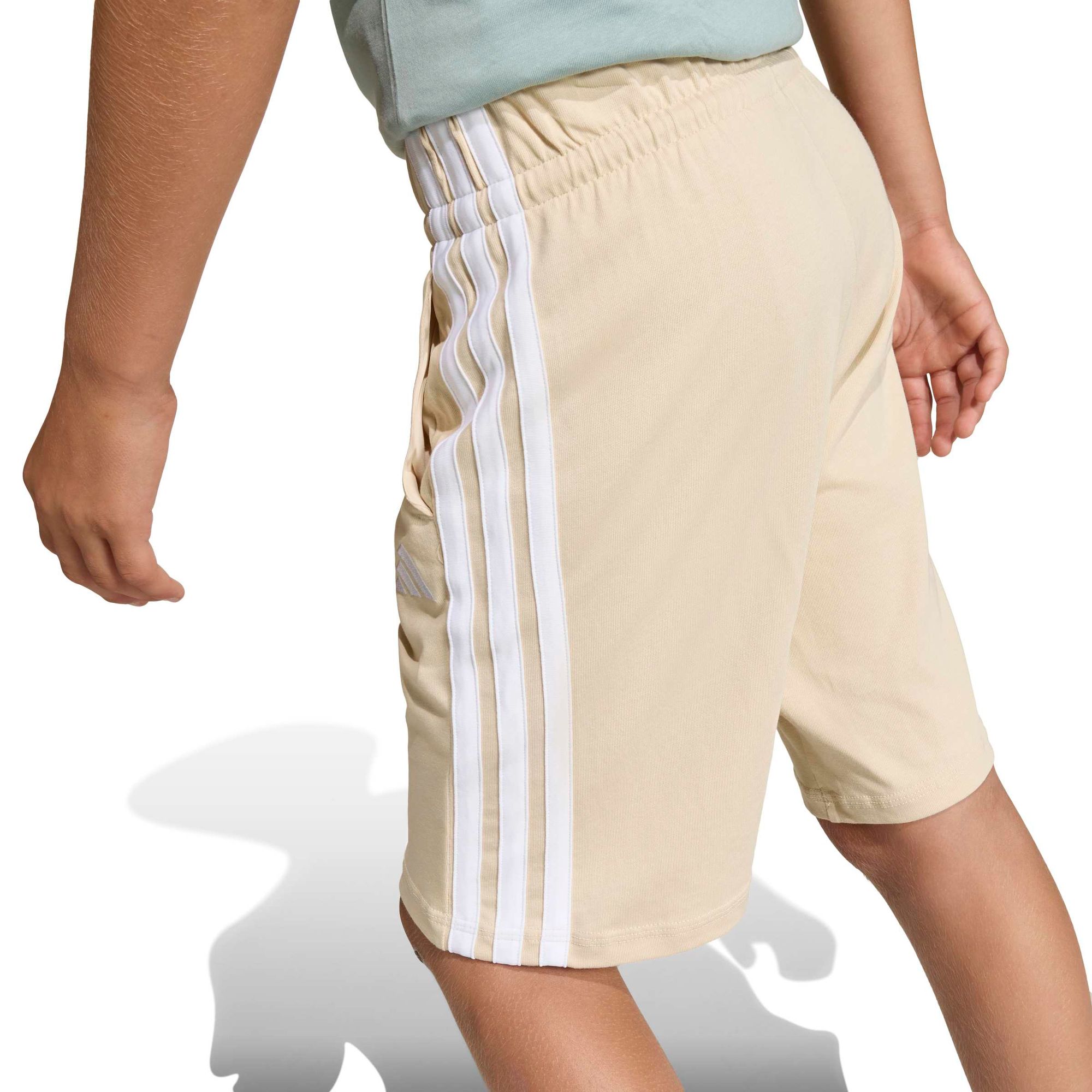 Mit diesen adidas Shorts für Kinder und Teens bist du perfekt ausgestattet. Das Baumwollmaterial ist weich und atmungsaktiv, egal ob du zu Hause entspannst oder unterwegs bist. Das aufgestickte 3-Streifen Logo am Bein sorgt dabei für einen sportlichen Touch. Diese vielseitigen Shorts sind modern geschnitten und weder zu locker noch zu eng. So passen sie zu allem, was dein Kleiderschrank hergibt.