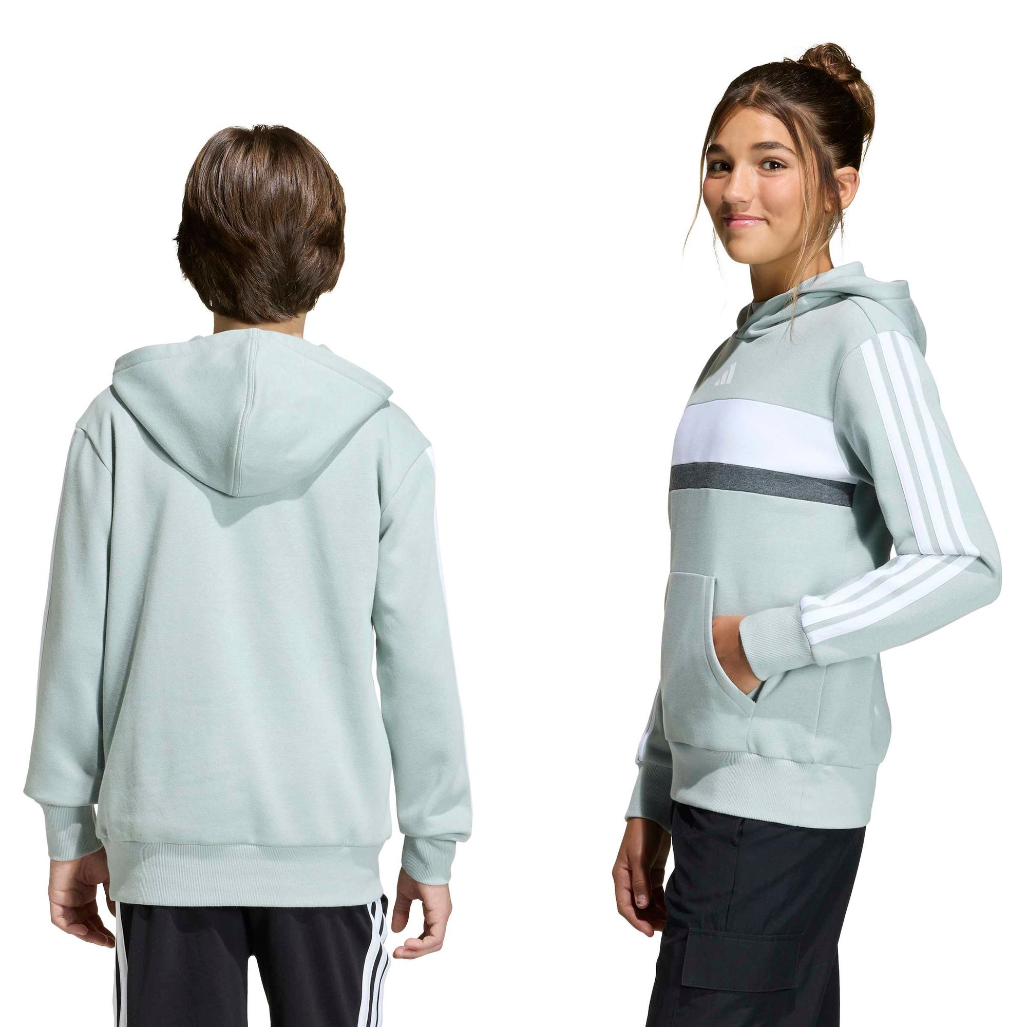 Dieser adidas Hoodie für Kinder und Teens kommt mit auffälligen 3-Streifen an den Ärmeln und einem angesagten Colourblocking-Design. Während das weiche Material mit flauschiger Innenseite für gemütlichen Komfort sorgt, garantieren die Rippbündchen ein Plus an Wärme. Dieses lässig-coole Piece ist ein Must-have für deinem Kleiderschrank.