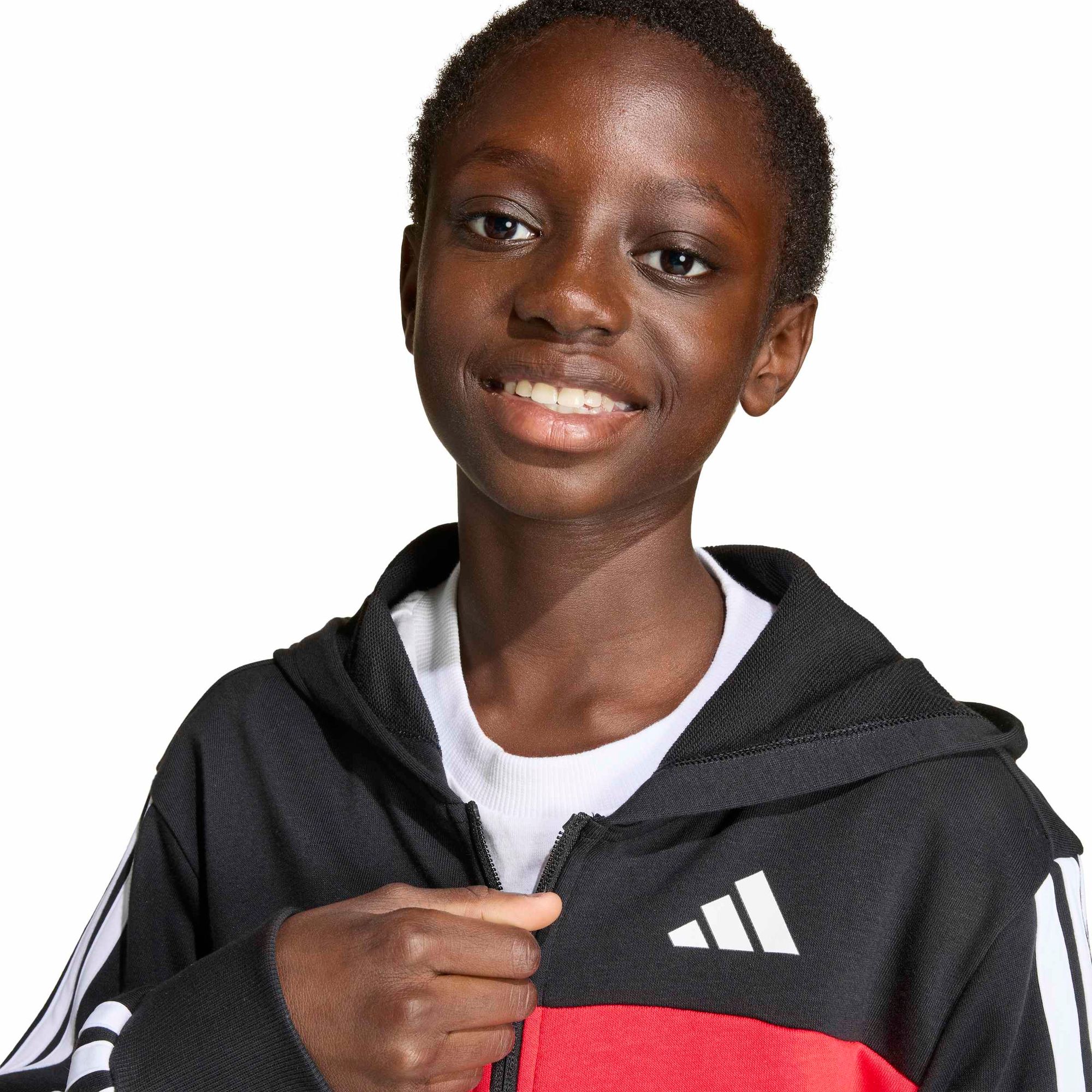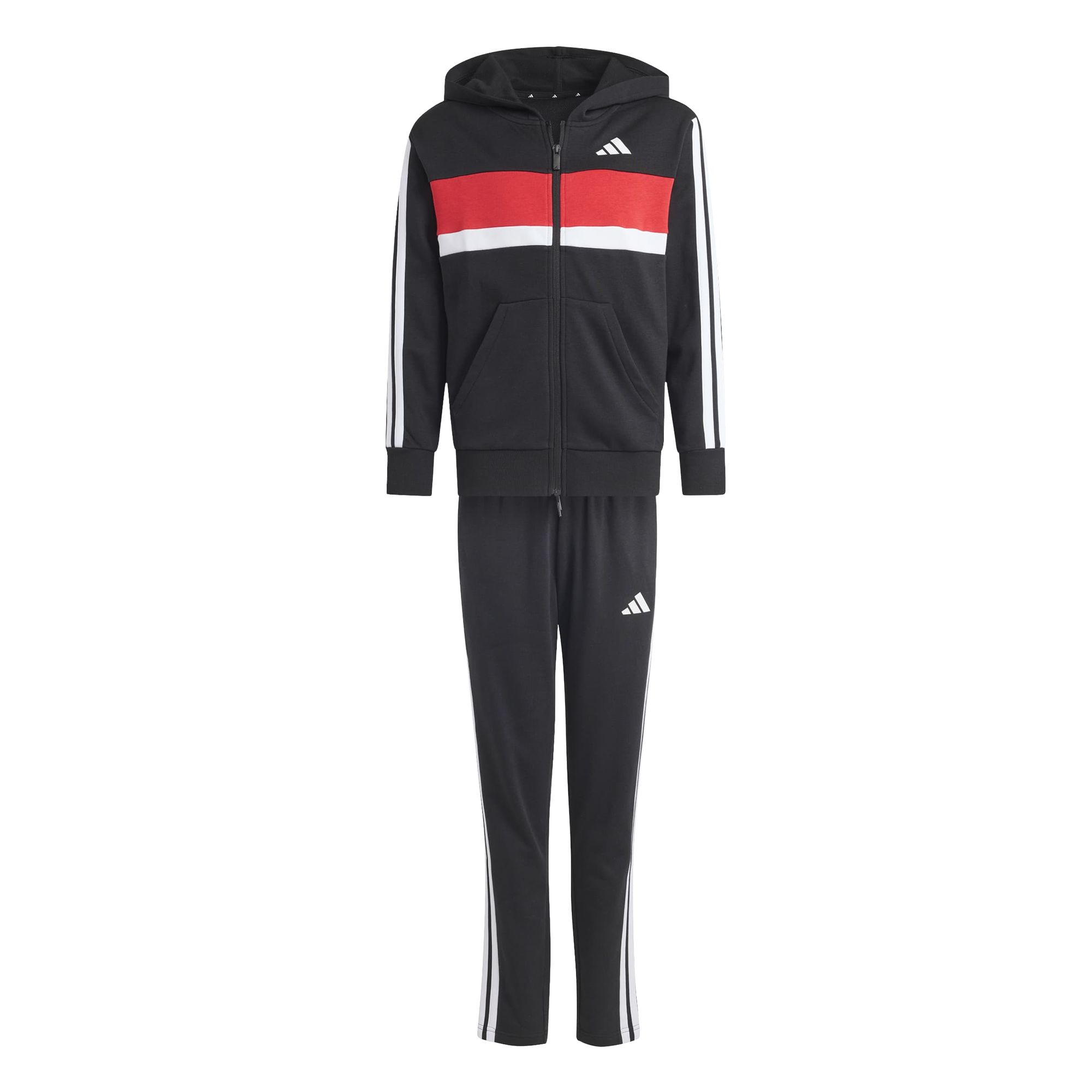 Mit diesem Seasonal Essentials Tiberio Trainingsanzug aus French Terry und den ikonischen 3-Streifen zeigst du auffälligen adidas Style. Dieses Set aus Kapuzenjacke und Jogginghose bringt auffälliges Colour-Blocking in deine Garderobe und lässt dich überall auffallen..