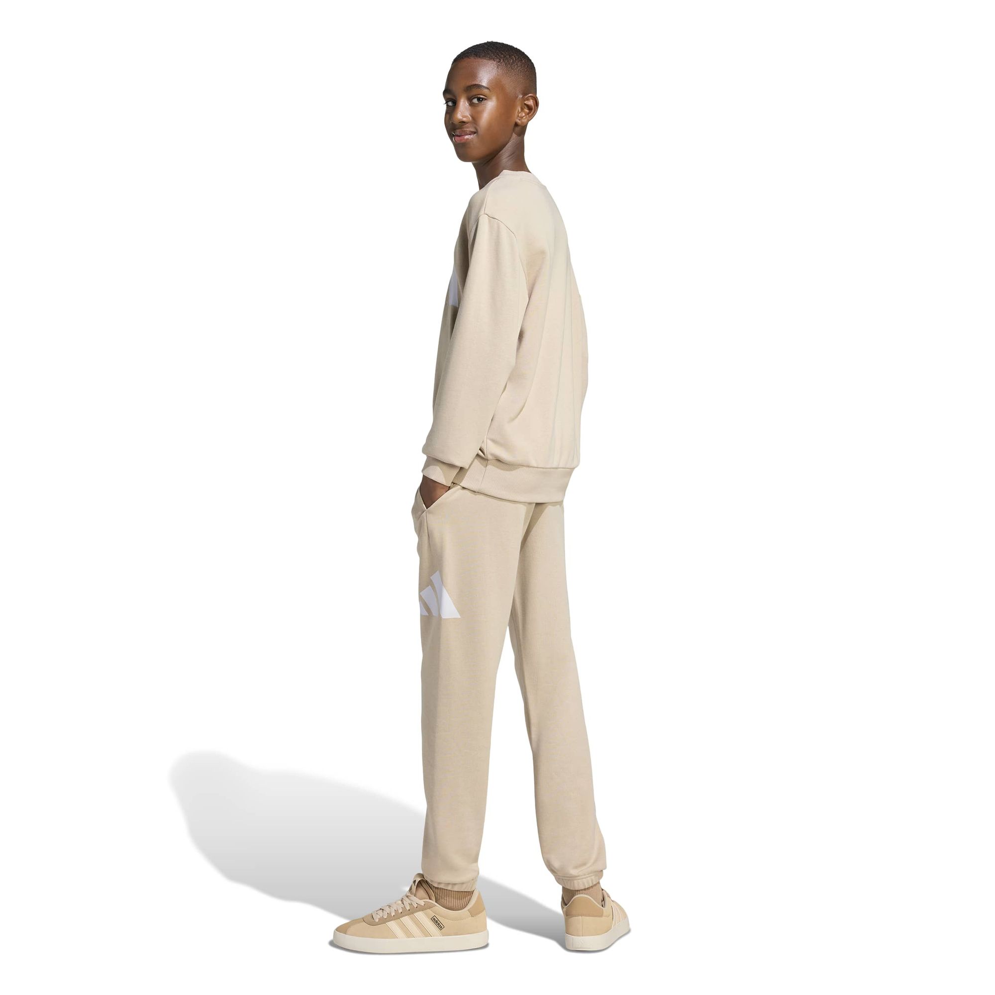 Das Essentials Jogger-Set ist für Kinder und Teens gedacht, die ihren Tag bequem und stylisch verbringen möchten. Das regulär geschnittene Design und die modernen Linien sorgen für einen klaren, vielseitigen Look, der perfekt zu ihrem Alltag passt.