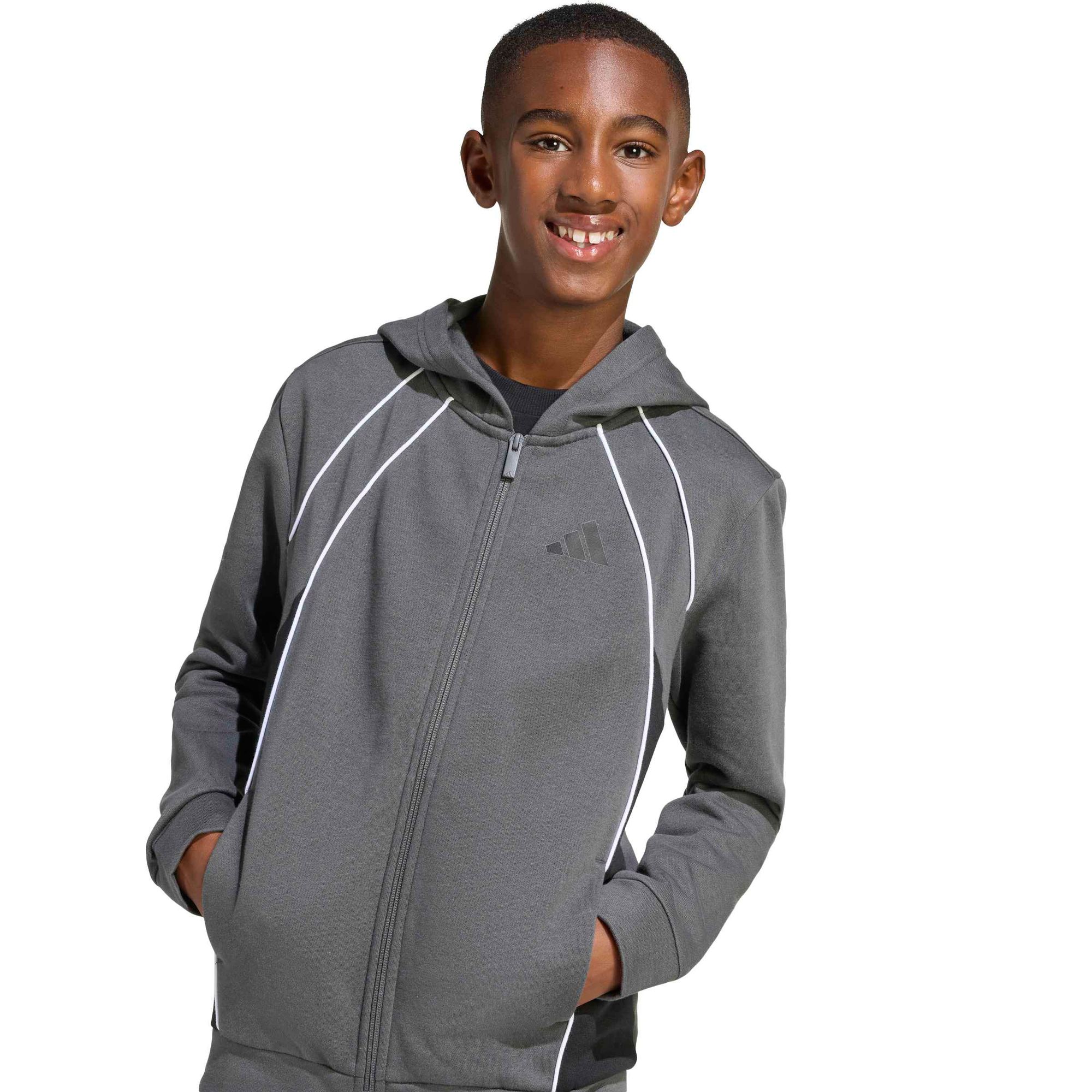 Das adidas 3-Balken Logo verleiht der Marke einen Hauch von Stolz, während die Paspelierung für ein trendiges Finish sorgt und diesen Hoodie zu einem Must-have für junge Trendsetter macht.