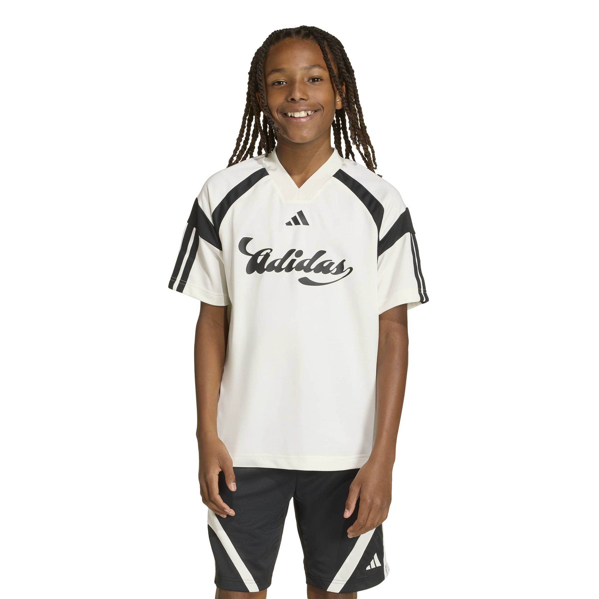 Die lockere Passform und der V-Ausschnitt machen das Shirt bequem und verleihen ihm einen Hauch von klassischem Stil, sodass du dich frei und selbstbewusst bewegen kannst. Das Shirt besteht aus Knit-Material und ist Teil der House of Tiro-Linie, die traditionelle Fußballästhetik mit modernem Flair verbindet.