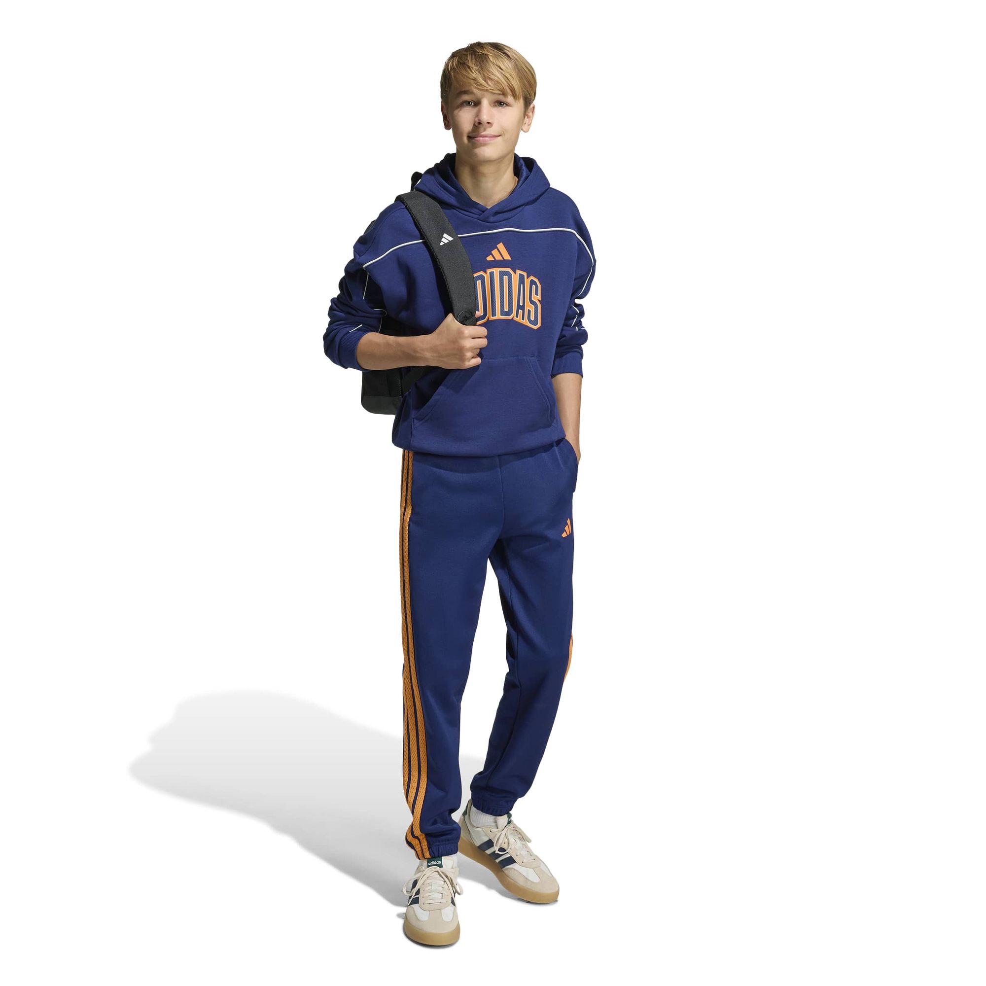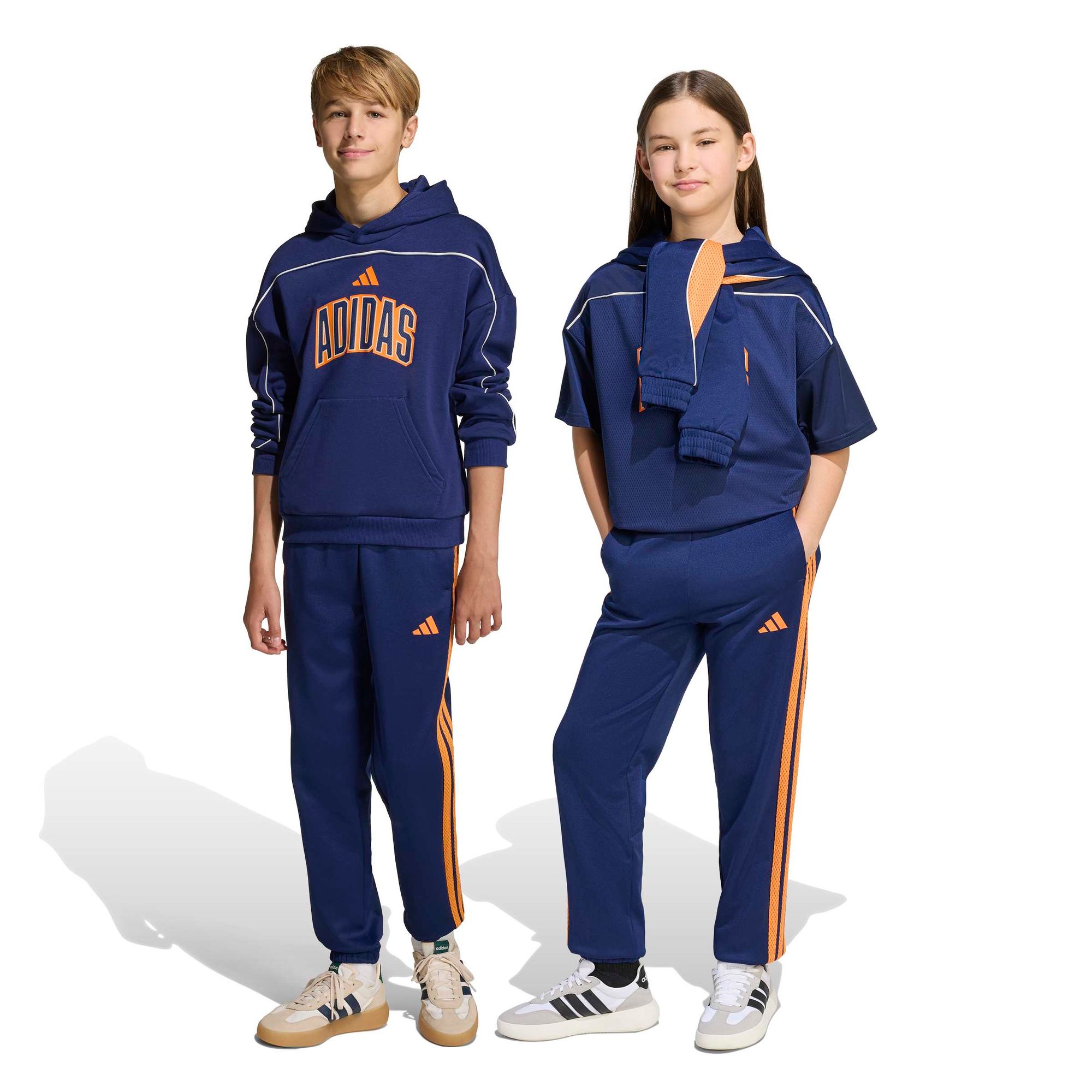 Die Stadium-Trainingshose ist so gemacht, dass sie den coolen Spirit der Sportkultur einfängt. Inspiriert von der Energie und Kreativität junger Fans, verbinden diese Hosen modernen Stil mit zeitlosen Sportswear-Elementen. Egal, ob sie mit Freunden Sport machen oder einfach nur einen entspannten Tag draußen verbringen – mit dieser Hose sind die Kleinen im typischen adidas Stil unterwegs.