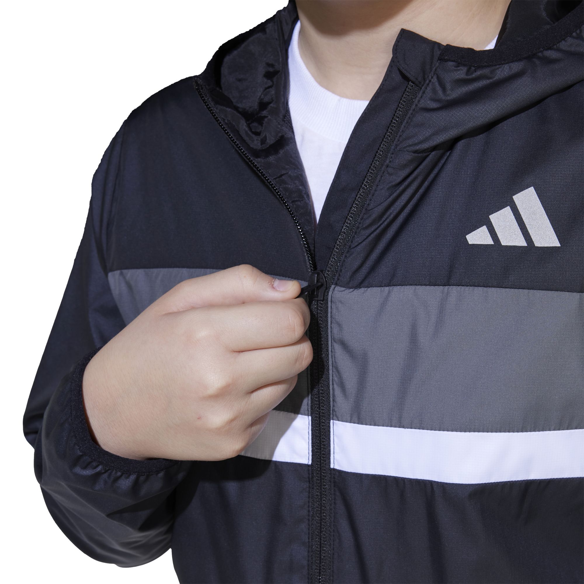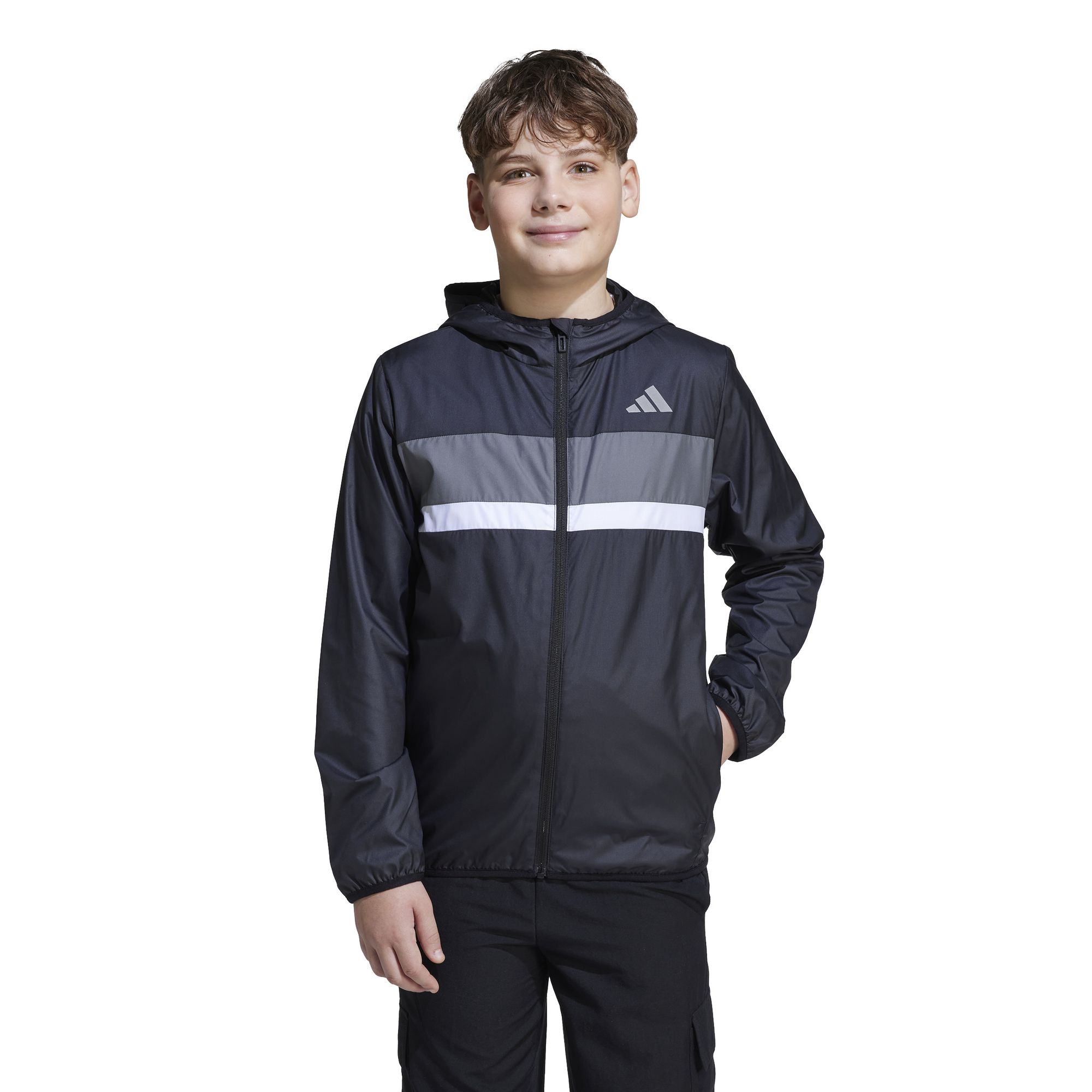 Egal, ob du die Natur erkundest oder einfach nur mit Freunden unterwegs bist: Der adidas Tiberio Windbreaker bietet dir Schutz und Komfort. Dieser Windbreaker ist aus leichtem, strapazierfähigem Ripstop mit atmungsaktivem Mesh-Futter. Ein reflektierender Streifen auf der Rückseite sorgt für bessere Sichtbarkeit.