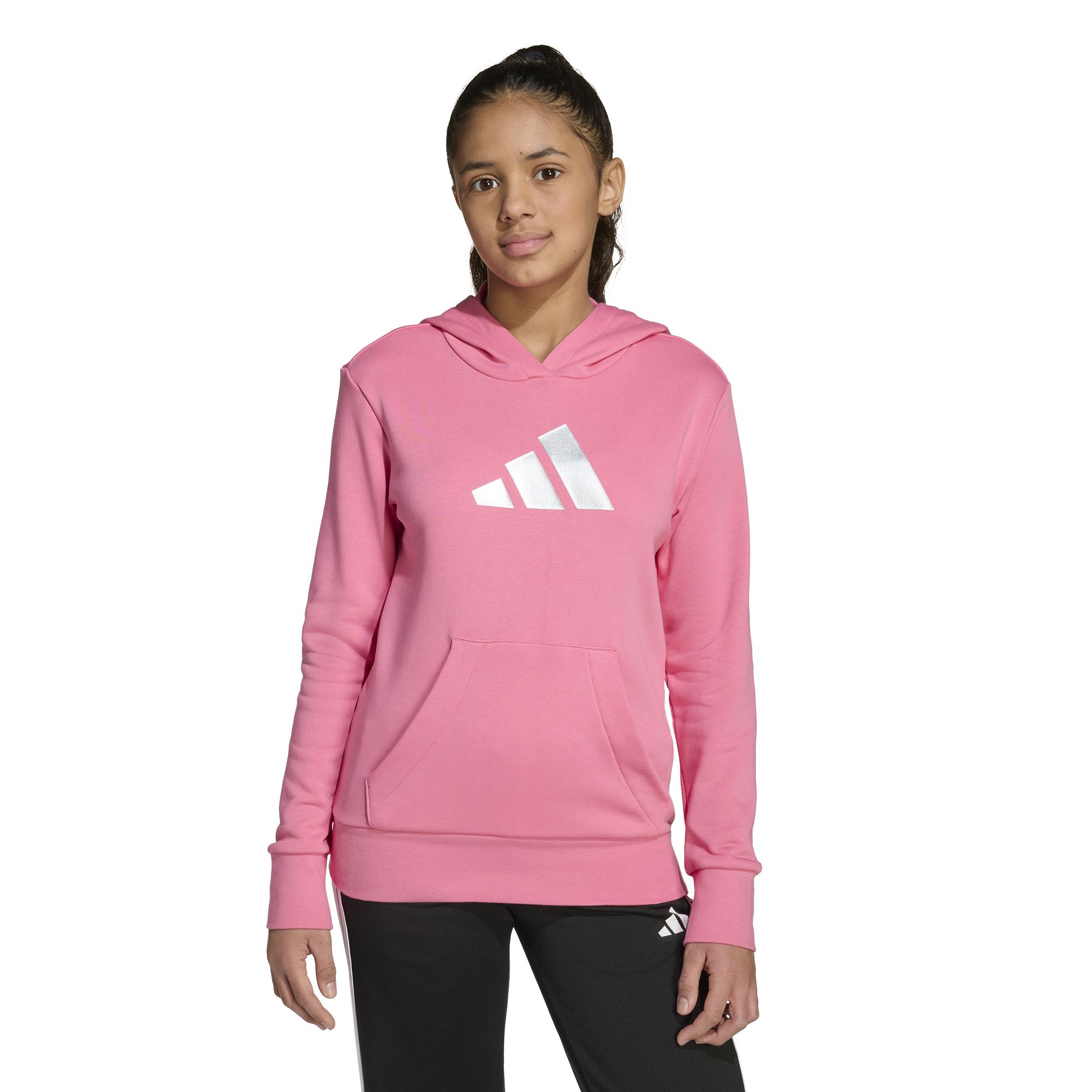Diese adidas Kapuzenjacke für Kinder und Teens ist wie geschaffen für Tage, an denen man sich wohlfühlen und trotzdem gut aussehen möchte. Das French Terry-Material aus einer Baumwollmischung ist weich und bequem, und die glänzende Grafik auf der Brust sorgt für einen Hauch von Glamour im Alltag. Ob du dich mit Freunden triffst oder einfach nur zu Hause entspannst, mit dieser Kapuzenjacke zeigst du deinen Stil.