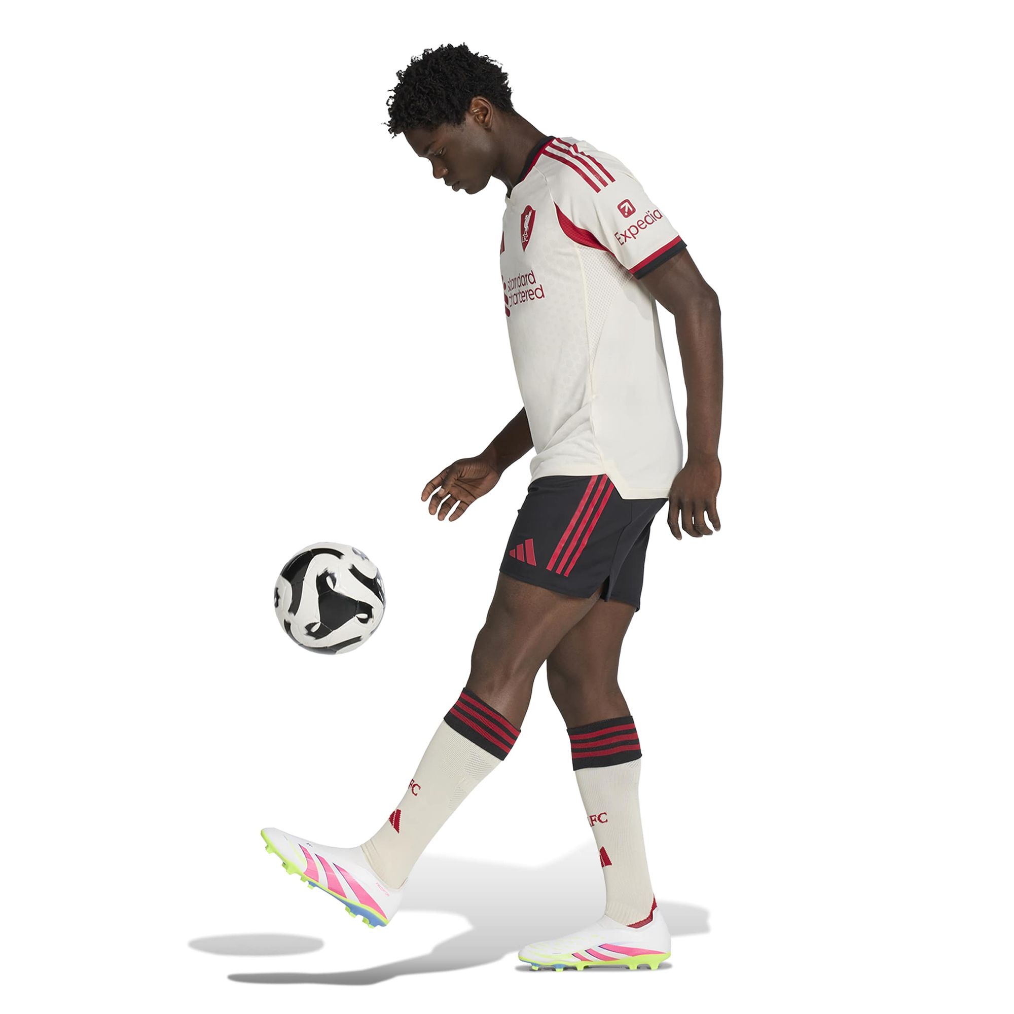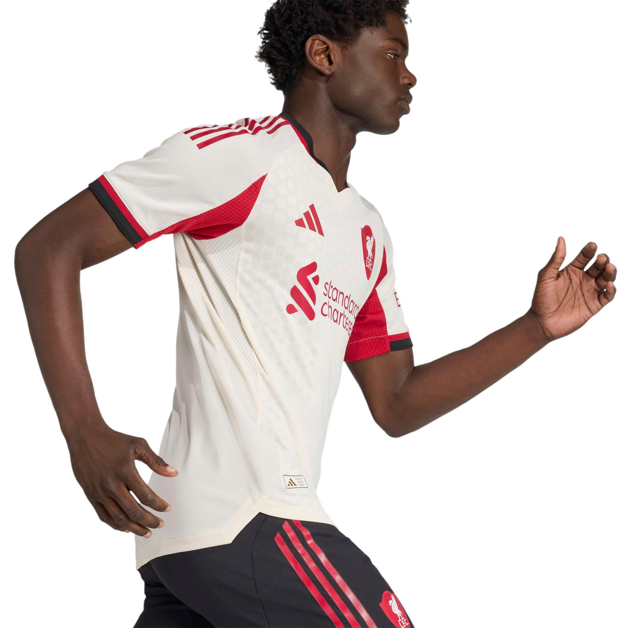 In der Saison 25/26 ist Anfield überall. Dieses authentische Trikot von adidas repräsentiert an Auswärtsspieltagen das ikonische Heimstadion des FC Liverpool und zeigt ein spezielles Vereinslogo, dessen Form vom gewölbten Giebel der alten Haupttribüne des Stadions inspiriert wurde. Dieses leistungsorientierte Fußballshirt wurde für die Auswärtssiege des Teams entworfen. Es ist in Offwhite gehalten, eine Farbe, die den eingefleischten Red-Fans vertraut ist.
