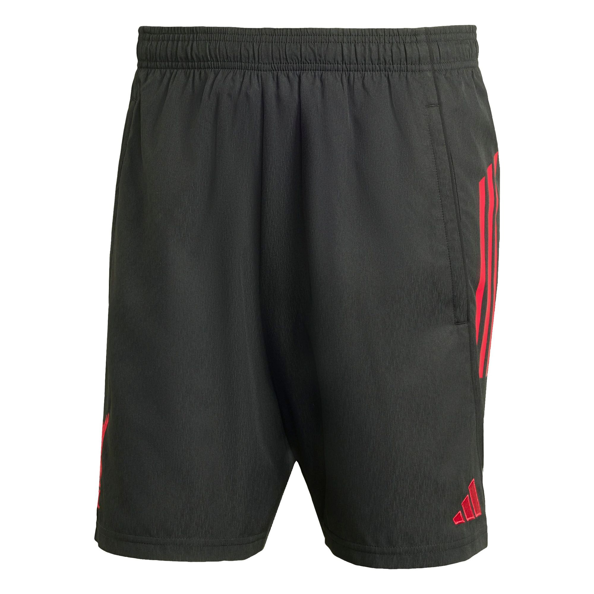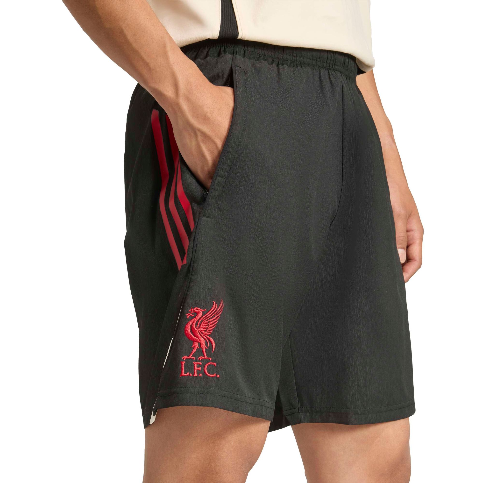 Mit der adidas Fußballausrüstung, die für die Freizeit gedacht ist, kannst du überall deine Begeisterung für den FC Liverpool zeigen. Die Kombination aus weichem, leichtem, gewebtem Material und feuchtigkeitsregulierendem AEROREADY sorgt dafür, dass du es in diesen Shorts bequem hast, egal wie intensiv deine Ruhephasen sind. Über dem Saum prangt ein Vereinslogo, das deine Liebe zu den Reds zeigt.