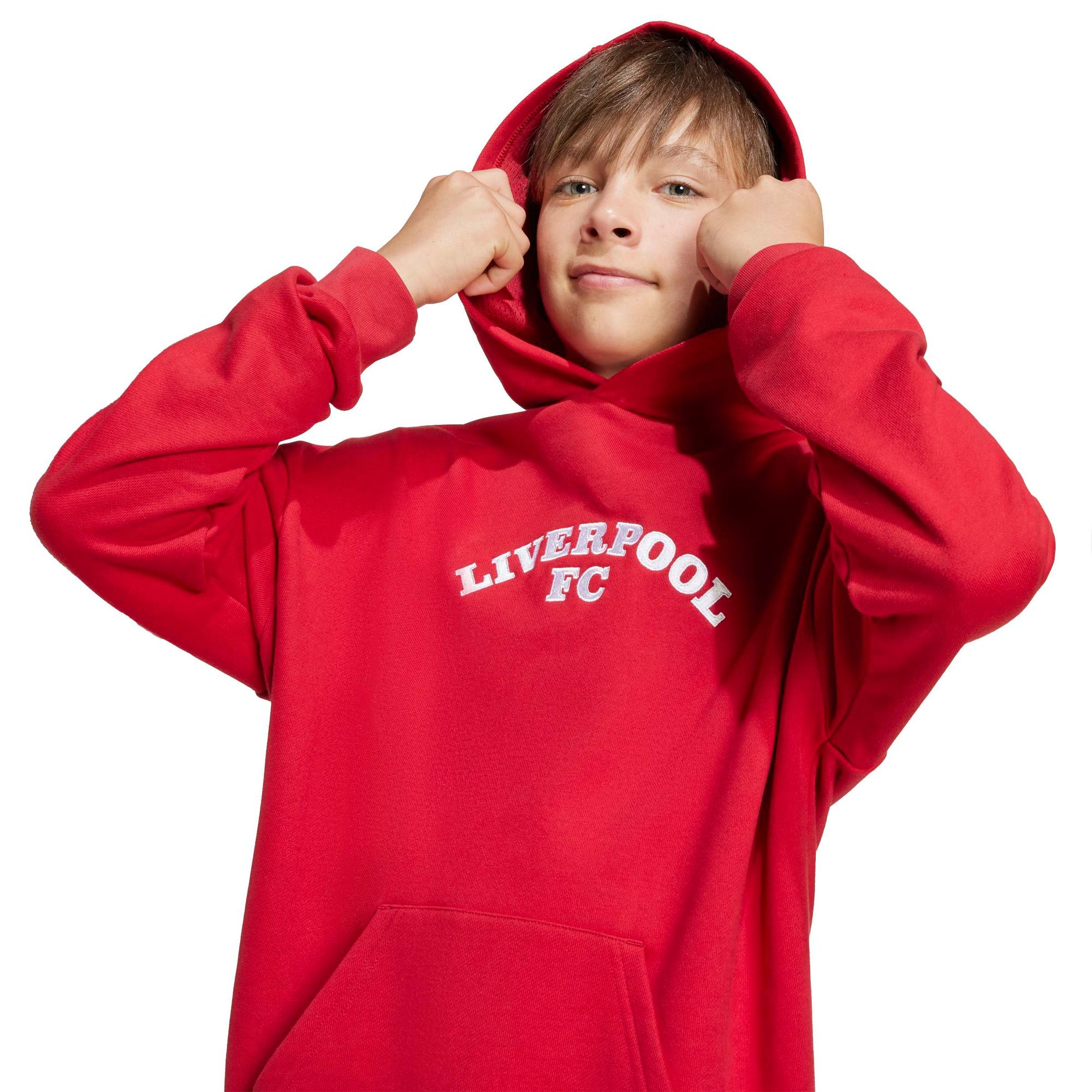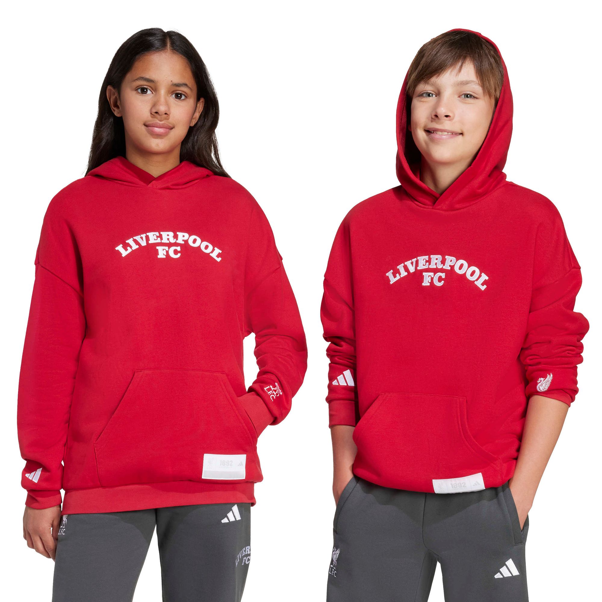 Dieser FC Liverpool Hoodie für Kinder und Teens von adidas ist eine stilvolle Mischung aus Fußball- und Baseballkultur und ein Must-have für Fans, die eine Vorliebe für US-Sportarten haben. Das weiche French-Terry-Material, die geräumige Kapuze und die Kängurutasche sorgen dafür, dass du dich als Fan wohl fühlst. Der Schriftzug des Teams über der Brust, rundet den auffälligen Look stilvoll ab.