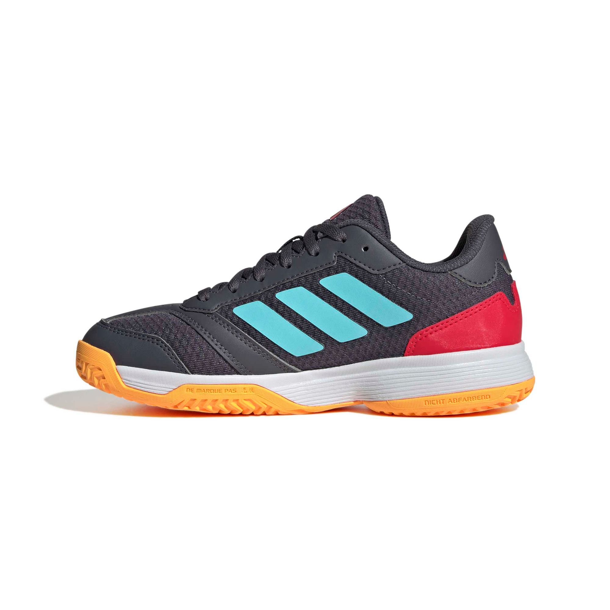 Mit diesem adidas Indoor-Schuh für Kinder und Teens zeigst du, was du drauf hast. Egal, ob Volleyball oder Handball, der Ligra 8 ist dein perfekter Begleiter. Das atmungsaktive Obermaterial aus Mesh ist für ein Plus an Strapazierfähigkeit mit Synthetik-Overlays verstärkt. Die Halt gebende Zwischensohle dämpft jede deiner Bewegungen, während die Gummiaußensohle dir den nötigen Grip für schnelle Richtungswechsel und plötzliche Stopps bietet.
