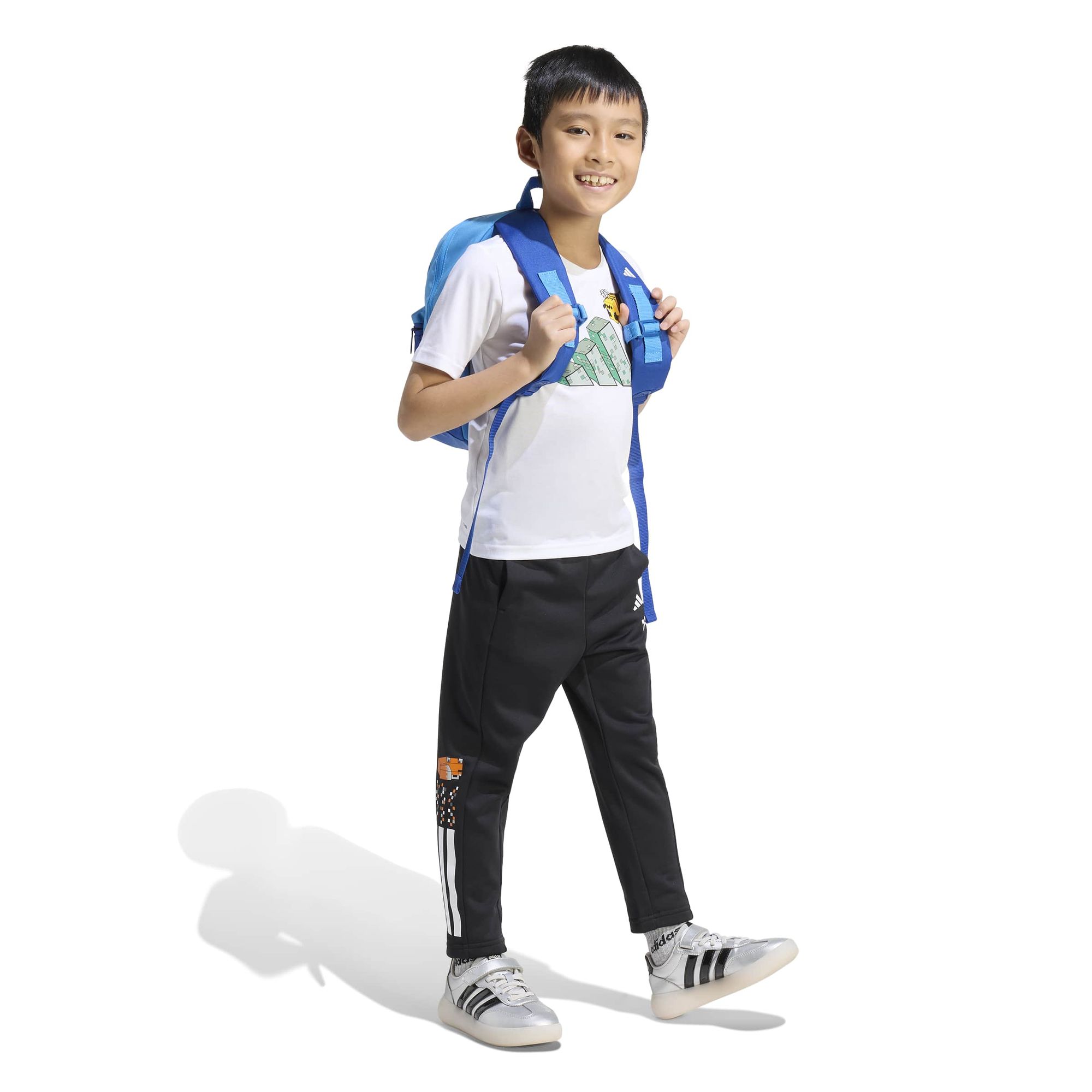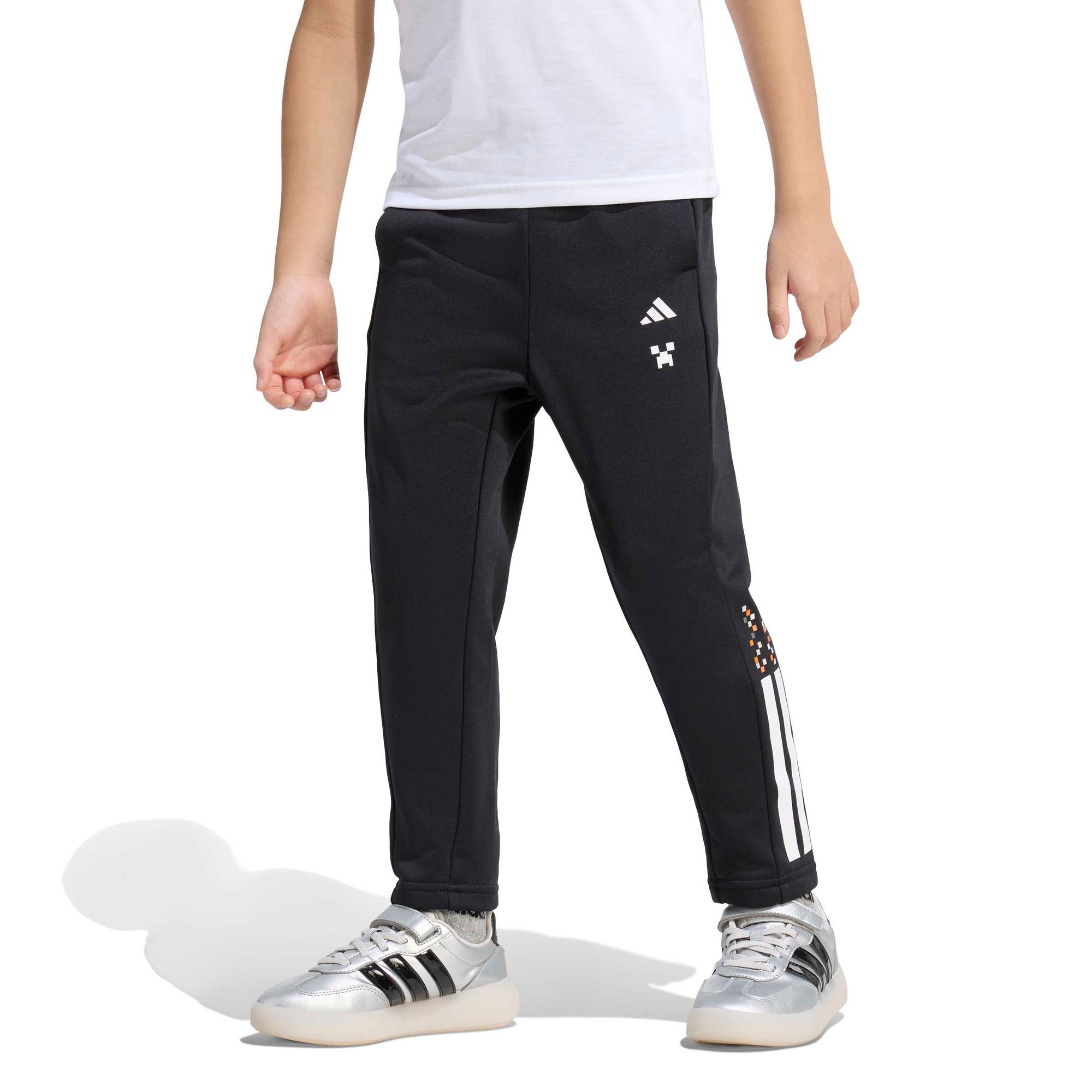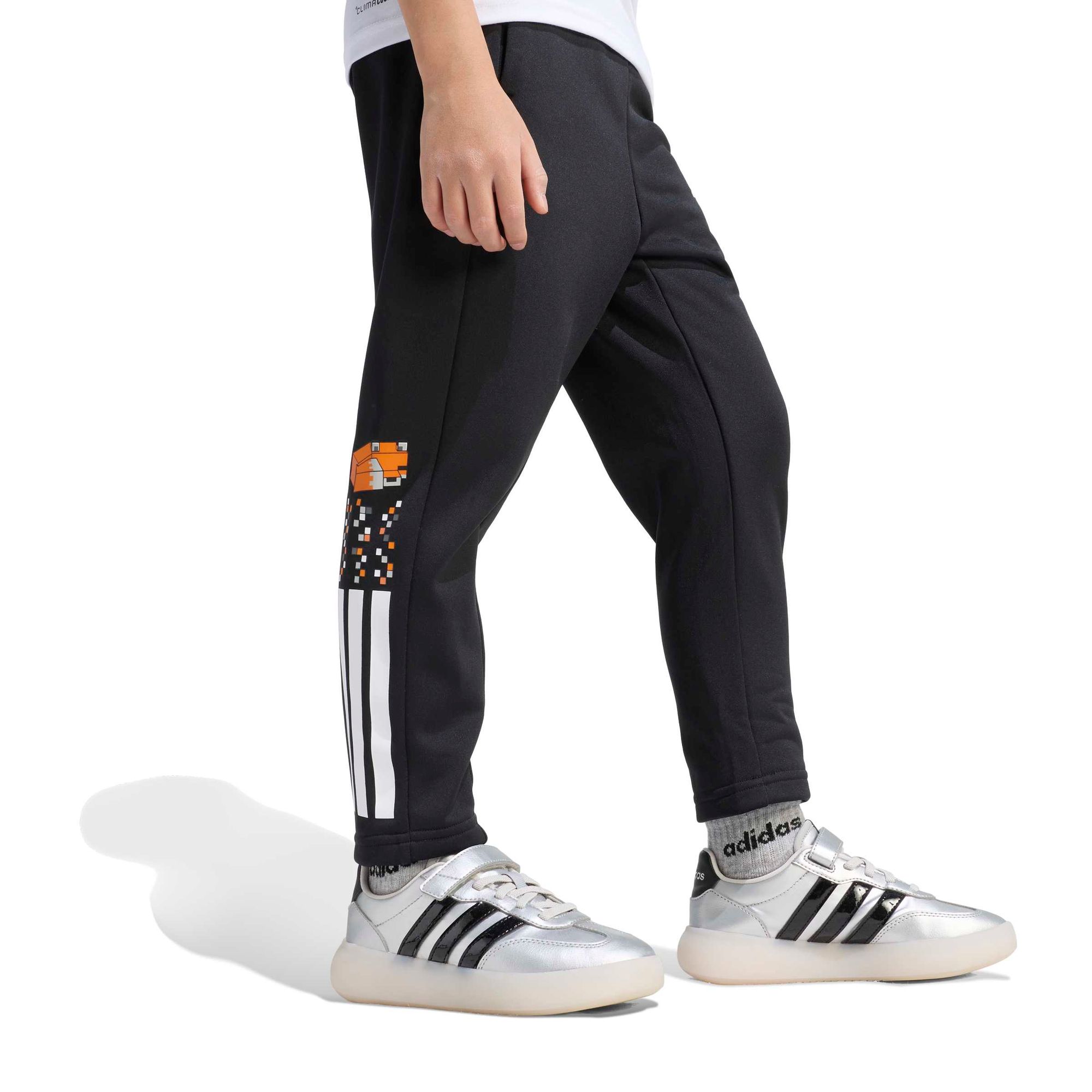 In der adidas Minecraft Training 3-Streifen Hose treffen die digitale Abenteuerwelt und die reale Welt aufeinander.