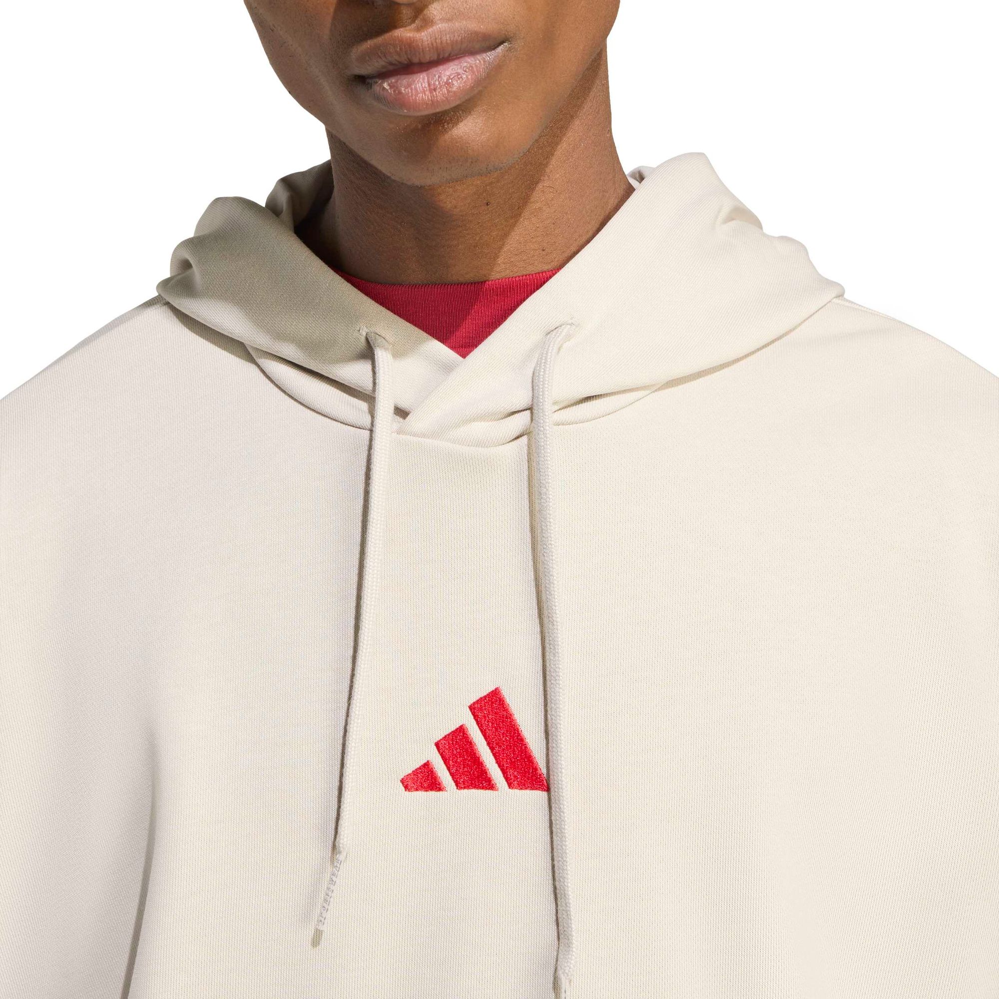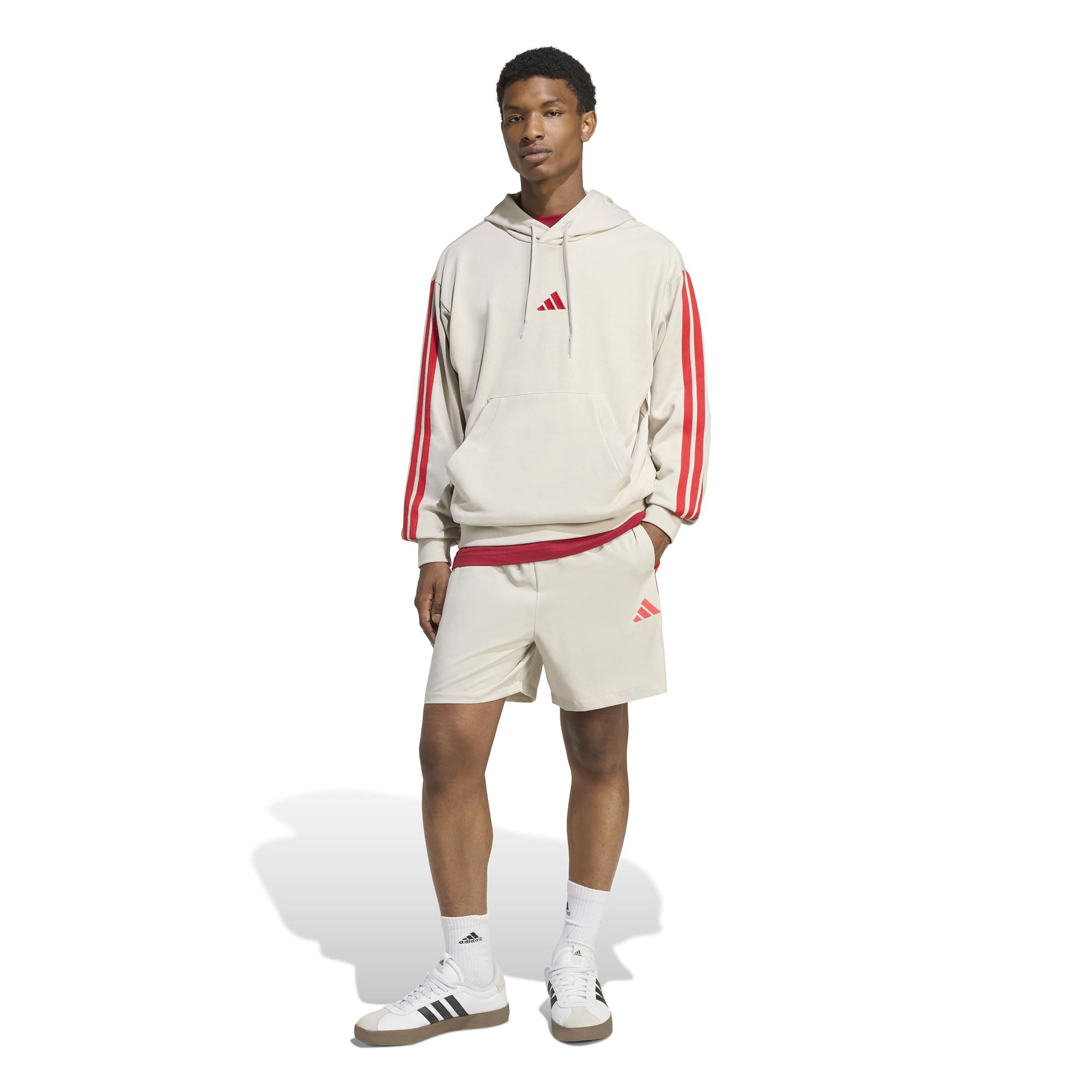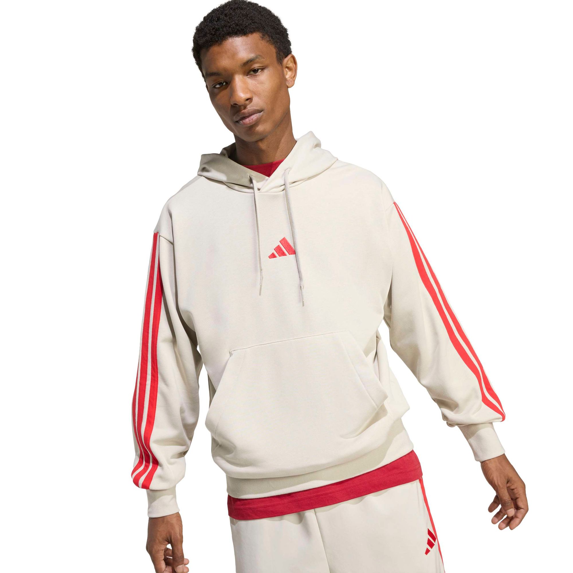 Dieser adidas Hoodie ist ein echtes Must-have, wenn du die perfekte Kombi aus Style und Komfort suchst. Er ist locker geschnitten und aus weichem French Terry. So hast du es immer bequem – egal, ob du in der City unterwegs bist oder zu Hause chillst. Die legendären 3-Streifen an den Ärmeln und ein aufgesticktes Logo auf der Brust versprühen außerdem sportliche Vibes. Kombiniert mit einer Jogginghose oder Jeans wird ein lässiger Look draus.
