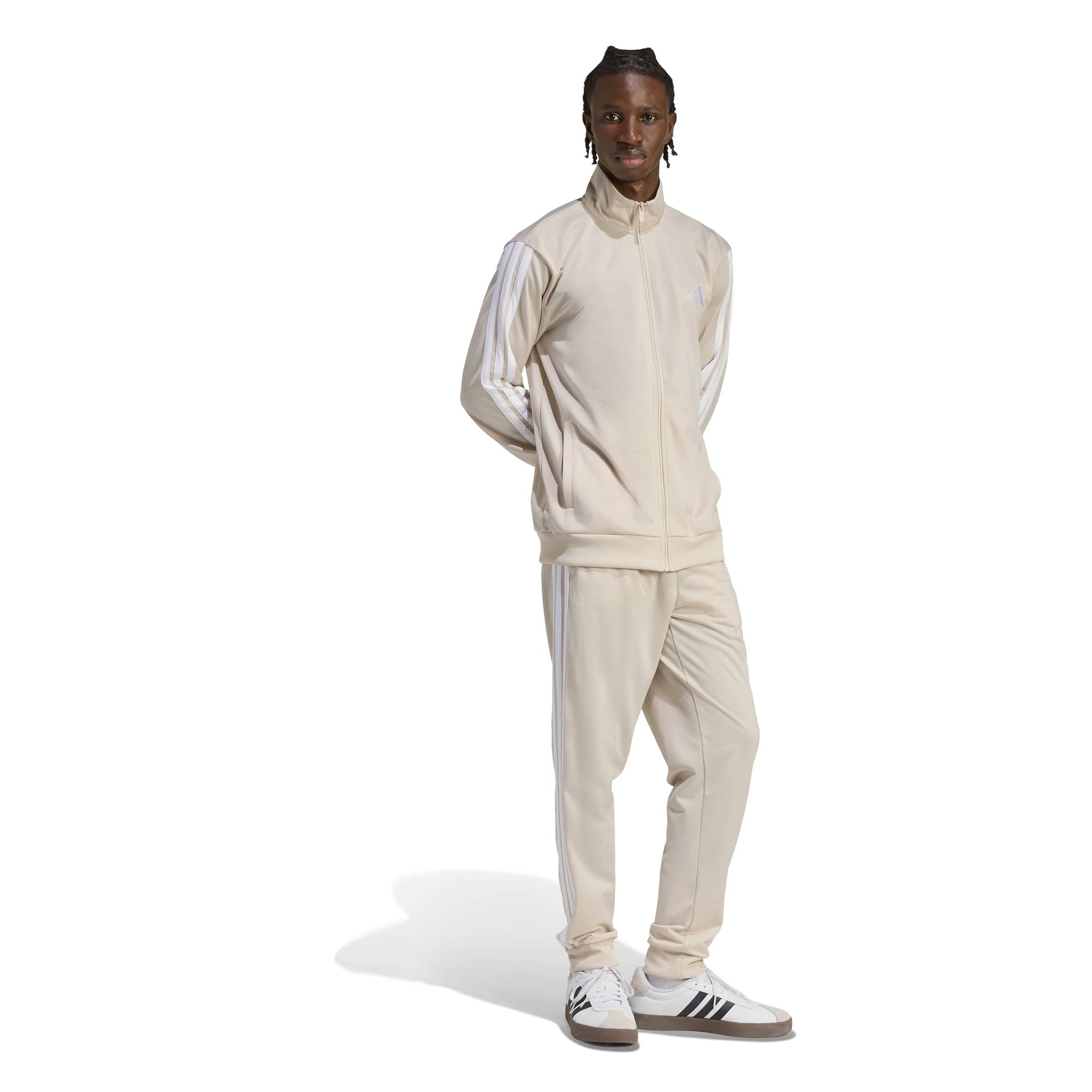 Mit diesem Adidas Trainingsanzug startest du stylish und bequem ins Wochenende. Das weiche, glatte Trikotmaterial sorgt für Komfort, ganz gleich, ob du Besorgungen machst oder dich mit Freund_innen triffst. Mit dem Kordelzug am elastischen Bund kannst du die Passform individuell regulieren.