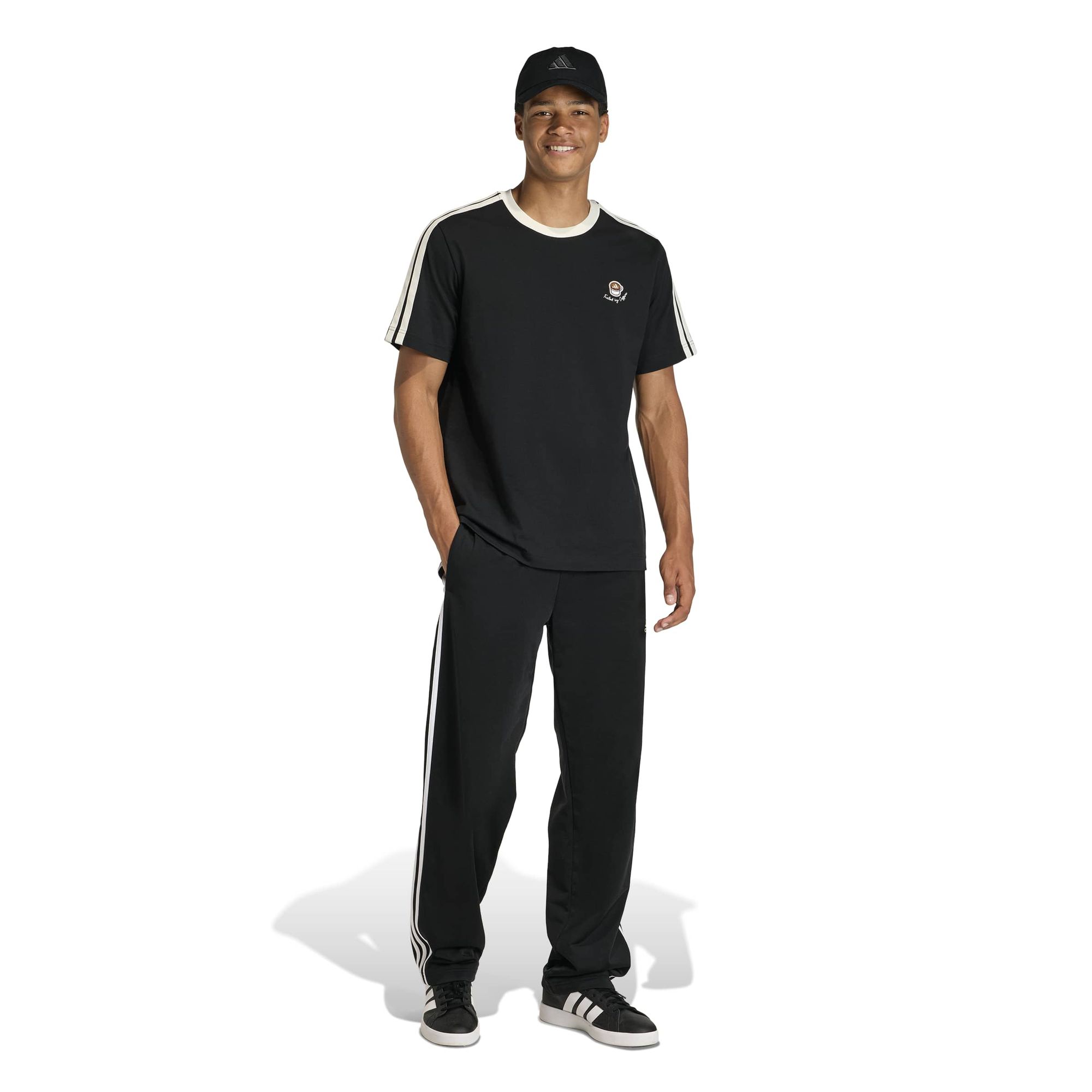 Es ist aus 100 % Baumwolle gefertigt und bietet Komfort und Atmungsaktivität für jeden Tag. Das locker geschnittene Piece aus Single Jersey ist weich und lässig. Die Kaffeetassen-Grafik verleiht dem T-Shirt Charakter, während der dichte Logo-Siebdruck und die applizierten 3-Streifen auf der Schulter einen Hauch von Adidas Flair versprühen.