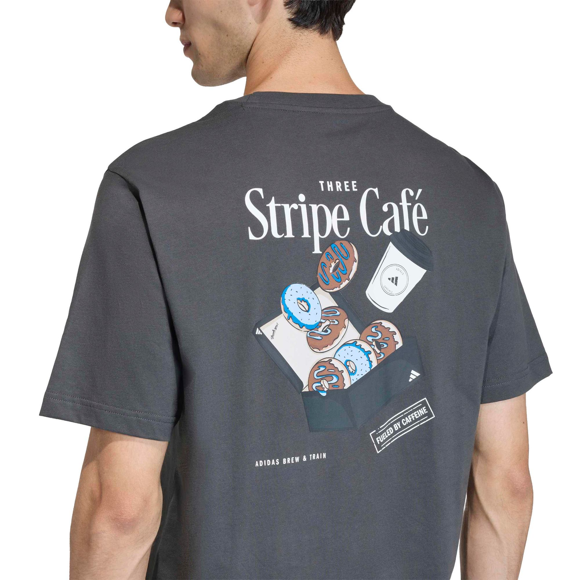 Im 3-Streifen Café-T-Shirt kannst du mit dem lässigen adidas Style auftrumpfen. Das Coffee Cafe Donut Box Grafic T-Shirt zeigt eine witzige Grafik auf dem Rücken und bringt etwas Skurrilität in deine Garderobe.