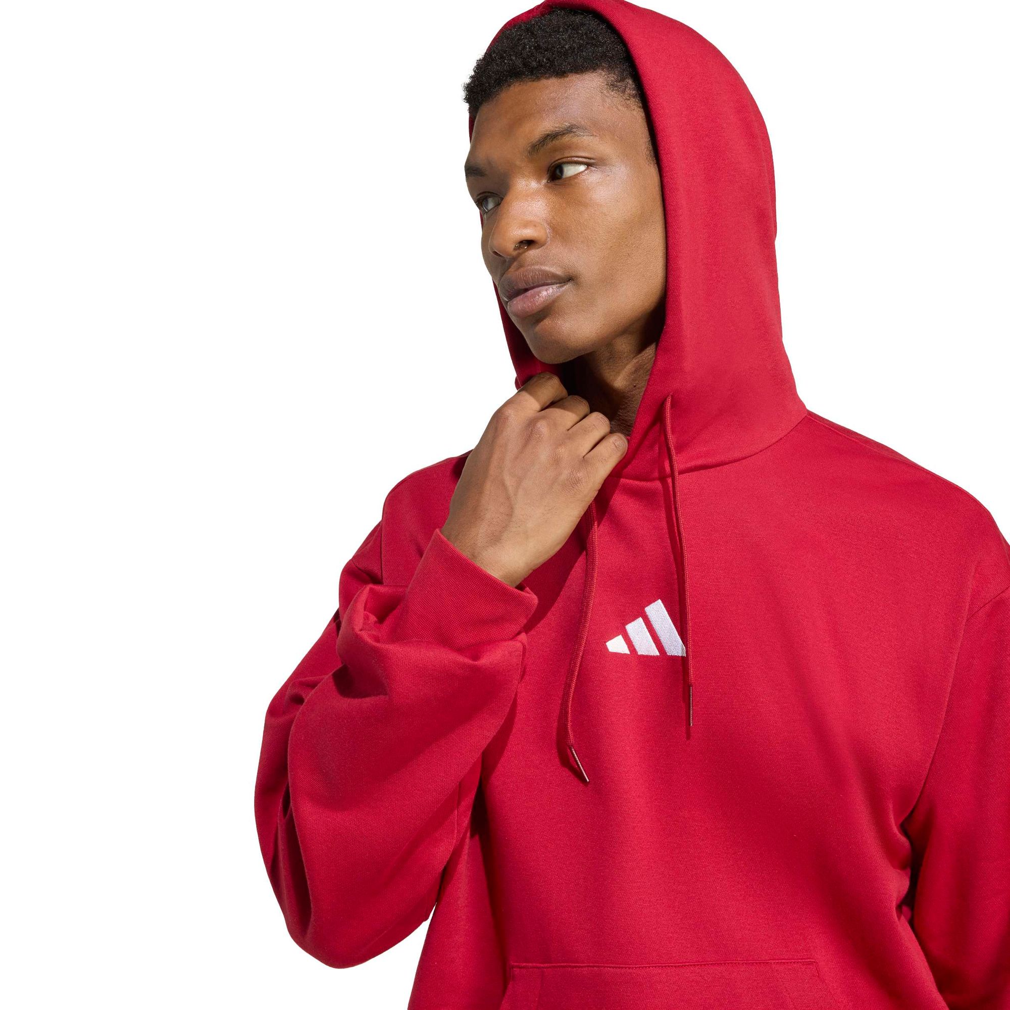 Dir steht der Sinn nach einem gemütlichen Oberteil? Dann liegst du mit diesem adidas Hoodie goldrichtig. Er ist aus weichem Baumwollmix mit flauschiger Innenseite und garantiert dir ein bequemes Tragegefühl, egal, ob du spazieren gehst oder dich mit Freund_innen triffst. Die Rippbündchen und die Kapuze mit weitenregulierbarem Kordelzug schützen dich vor Kälte. Mit seinem modernen, lässigen Design ist dieser Hoodie ein perfekter Begleiter für jeden Tag.
