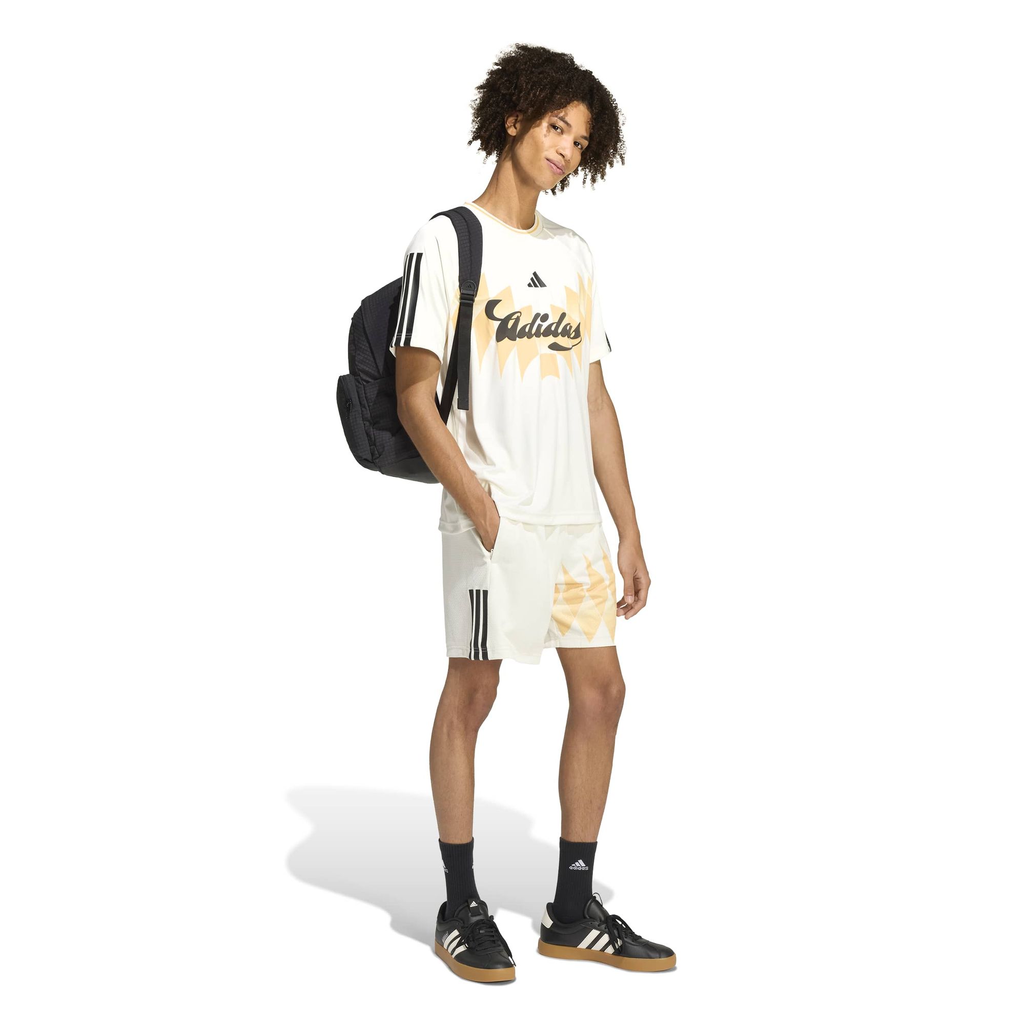 Die grafischen Details sind von der mexikanischen Fußballkultur inspiriert und werden durch ein adidas Puffer-Logo auf der Brust und ein gemeinsames Flaggenlabel auf der Innenseite ergänzt. Das Design zeigt unsere Partnerschaft mit Common Goal, die sich für sichere Orte für junge Leute durch Sport einsetzt.