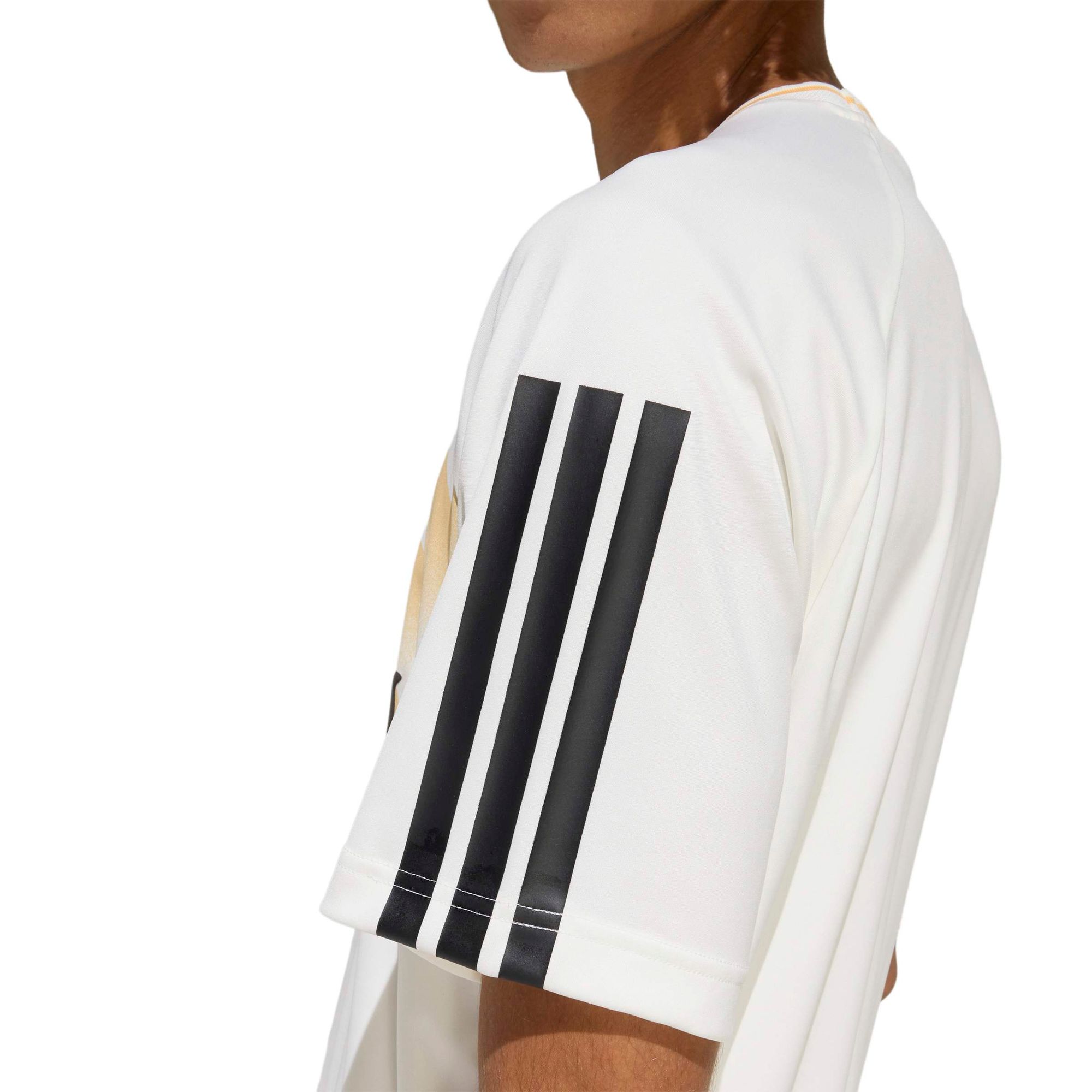 Das House of Tiro x Common Goal Jersey T-Shirt besteht aus strapazierfähigem Interlock-Material und bietet Tragekomfort für jeden Tag. Aufgedruckte 3-Streifen zieren die Ärmel, während ein gerippter, vom Fußball inspirierter Kragen an den klassischen Stil erinnert.