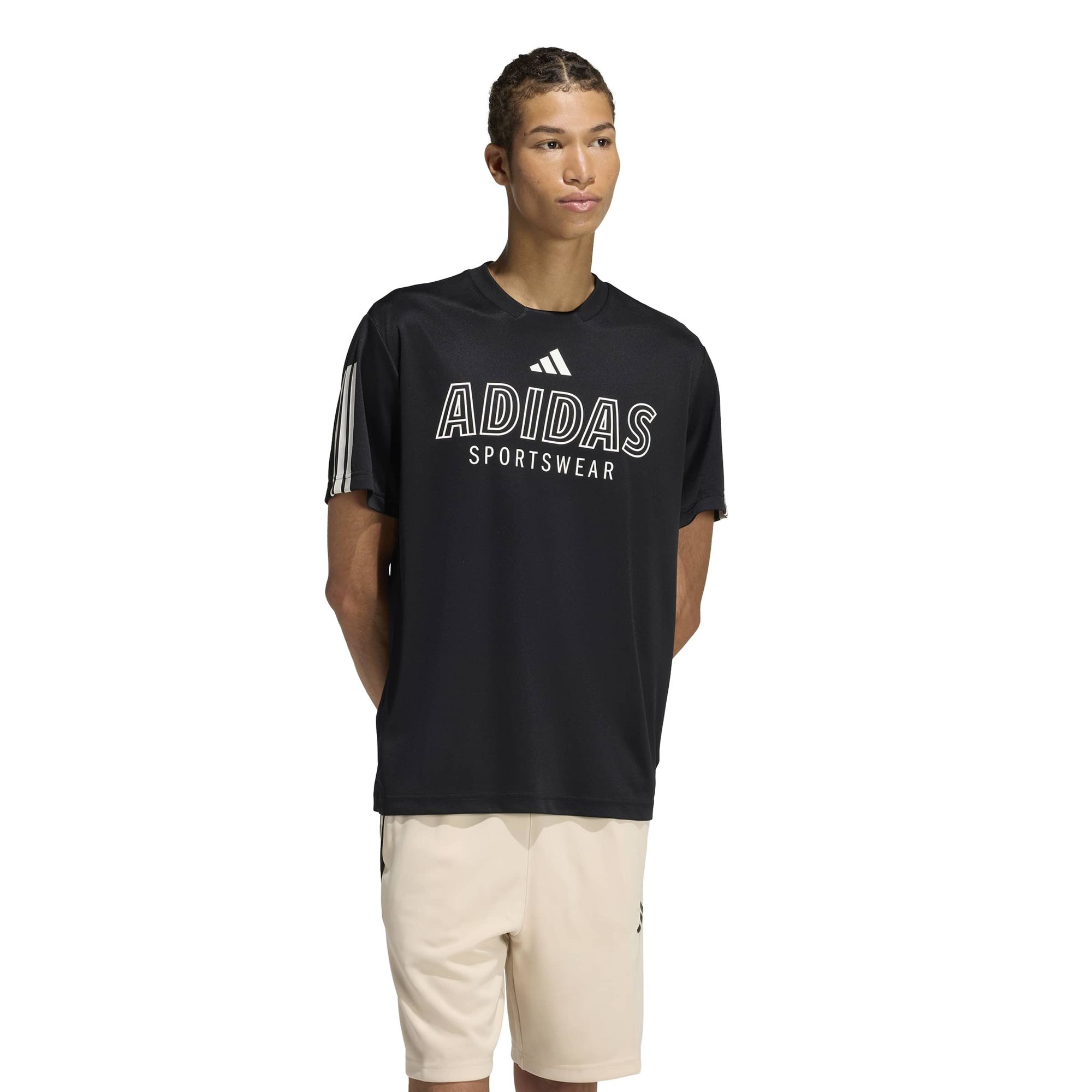 Zeig deinen Stil auch abseits vom Spielfeld mit der Fußball-inspirierten Streetwear von adidas. Dieses House of Tiro Wordmark T-Shirt zeigt auf der Brust ein 3-Balken Logo und einen „adidas Sportswear“-Schriftzug. 3-Streifen an den Ärmeln sorgen für einen sportlichen Look.