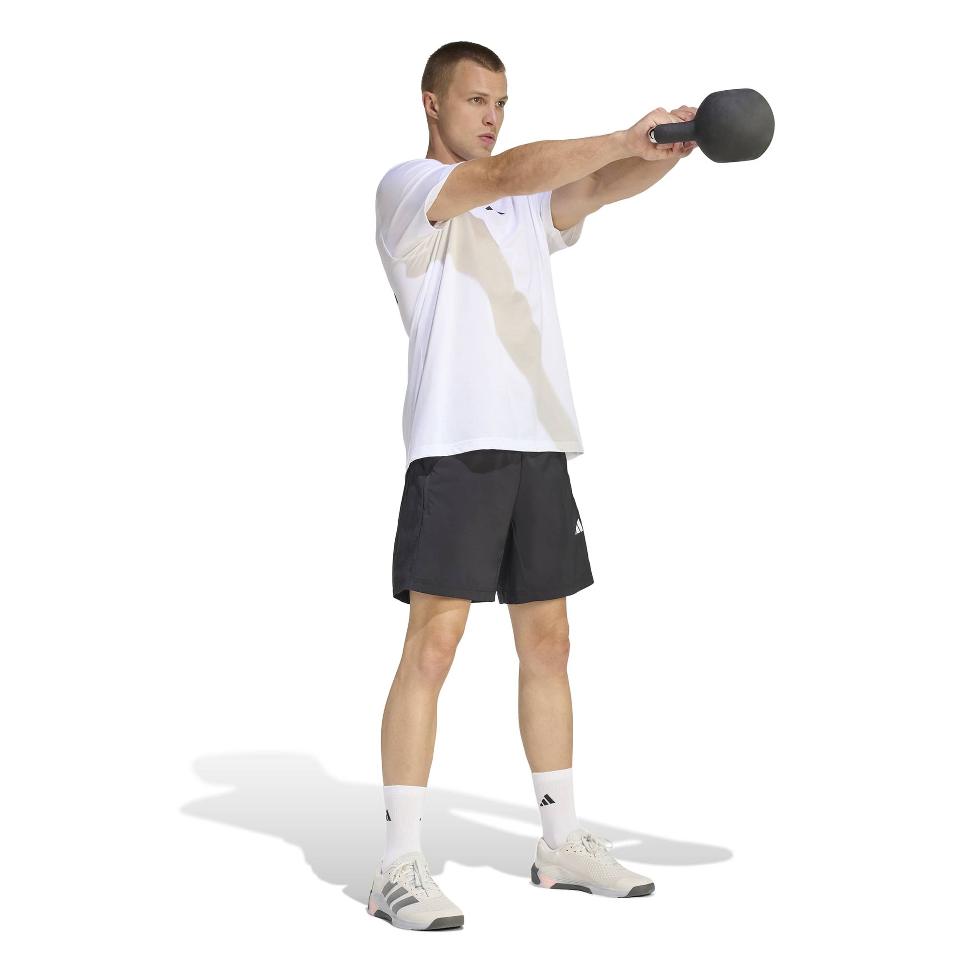 Das schlichte 3-Streifen-Logo auf der Vorderseite und eine größere adidas Grafik auf der Rückseite des T-Shirts aus Single-Jersey-Stoff zeigen, wie ernst du dein Workout nimmst.