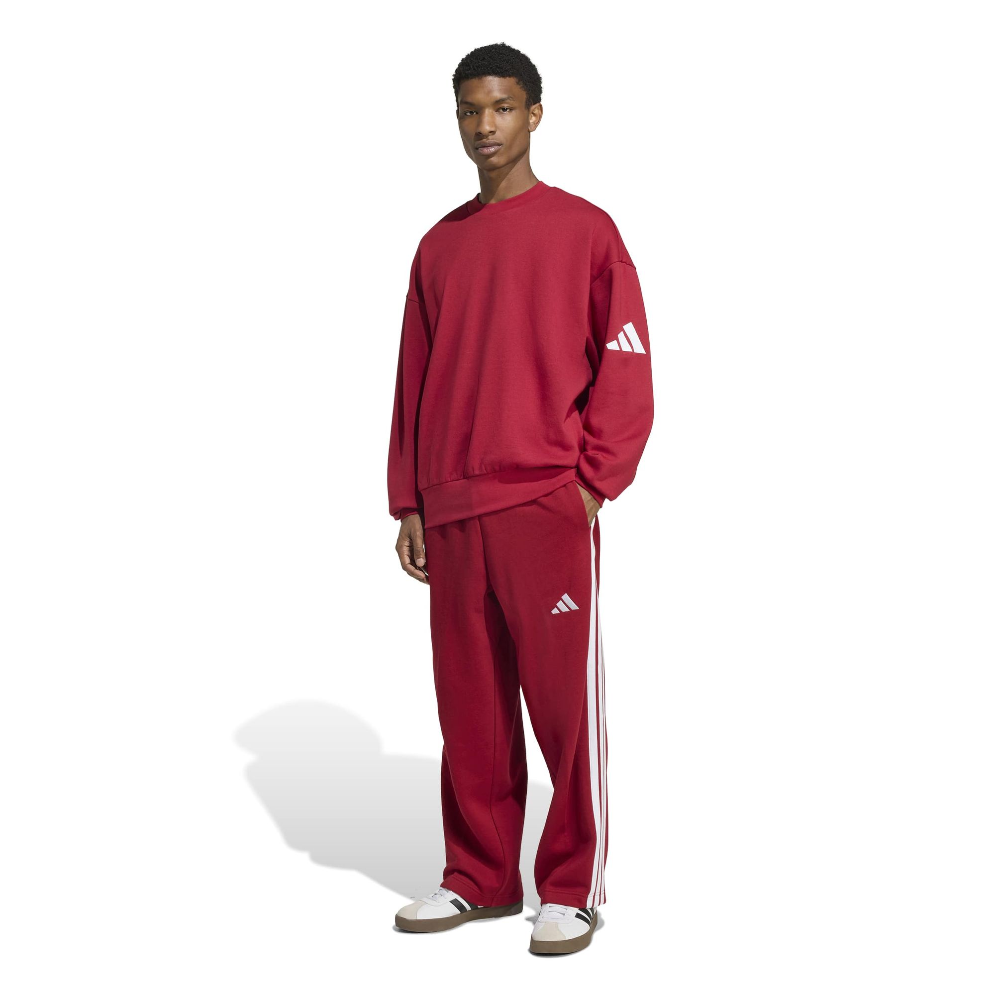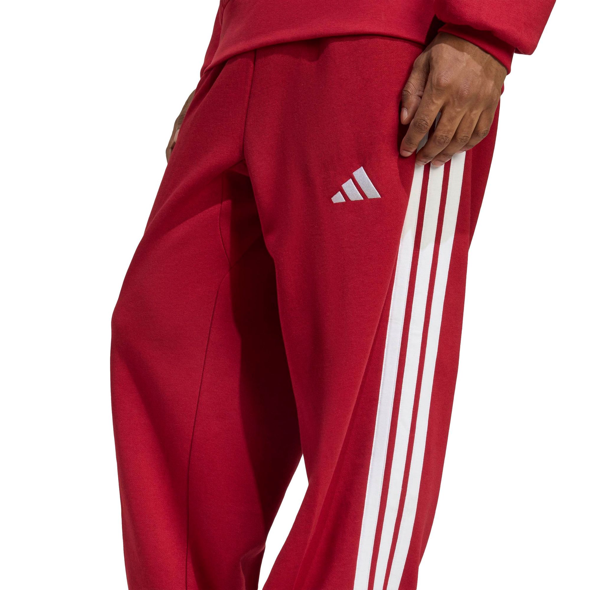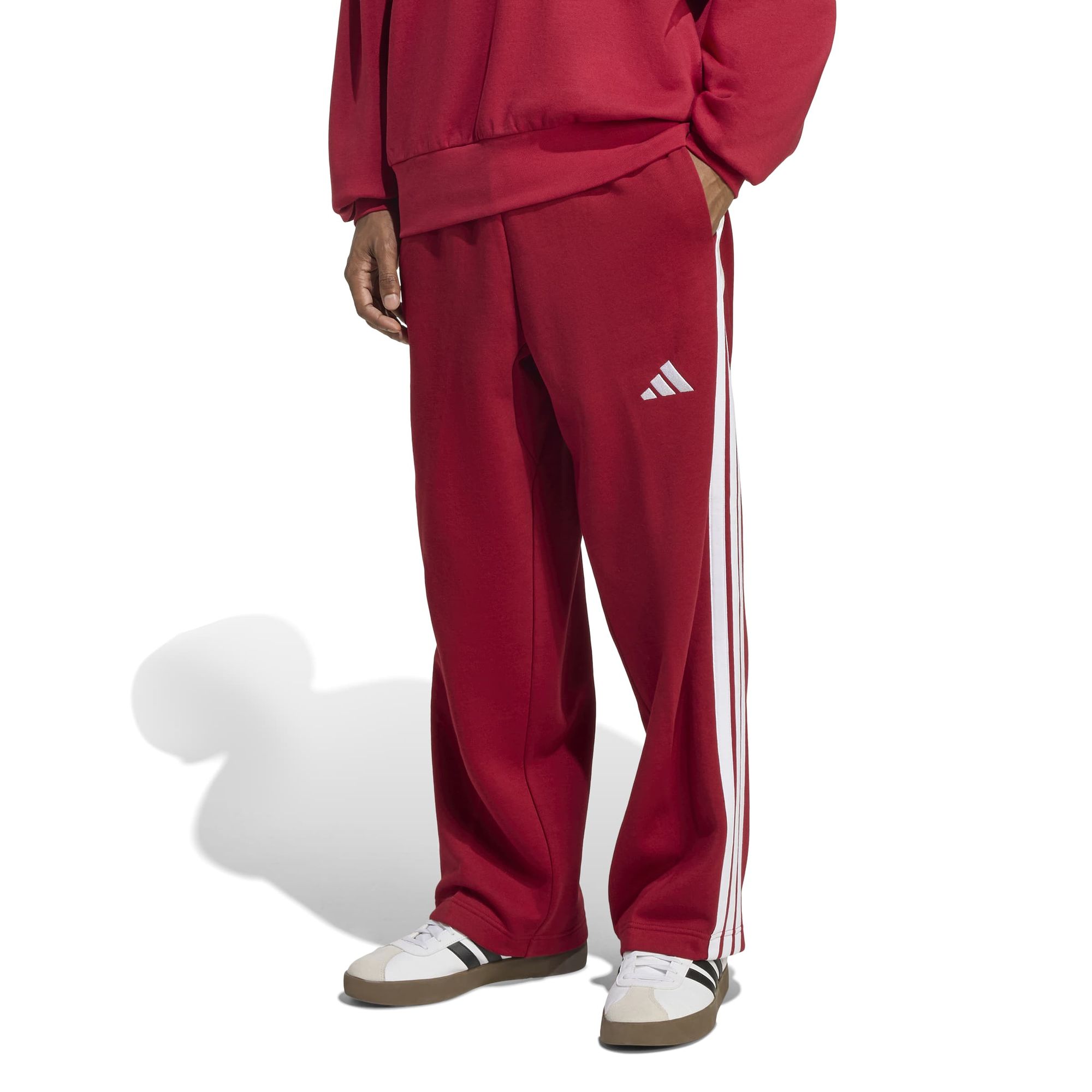 Mit der adidas Essentials 3-Streifen Fleecehose mit weitem Bein kannst du einen entspannten Lifestyle pflegen. In dieser bequemen Hose kannst du chillen, Besorgungen machen oder dich mit Freunden treffen. Der großzügige Schnitt mit weitem Bein wertet den lässigen Look auf und hebt ihn von der Loungewear ab.