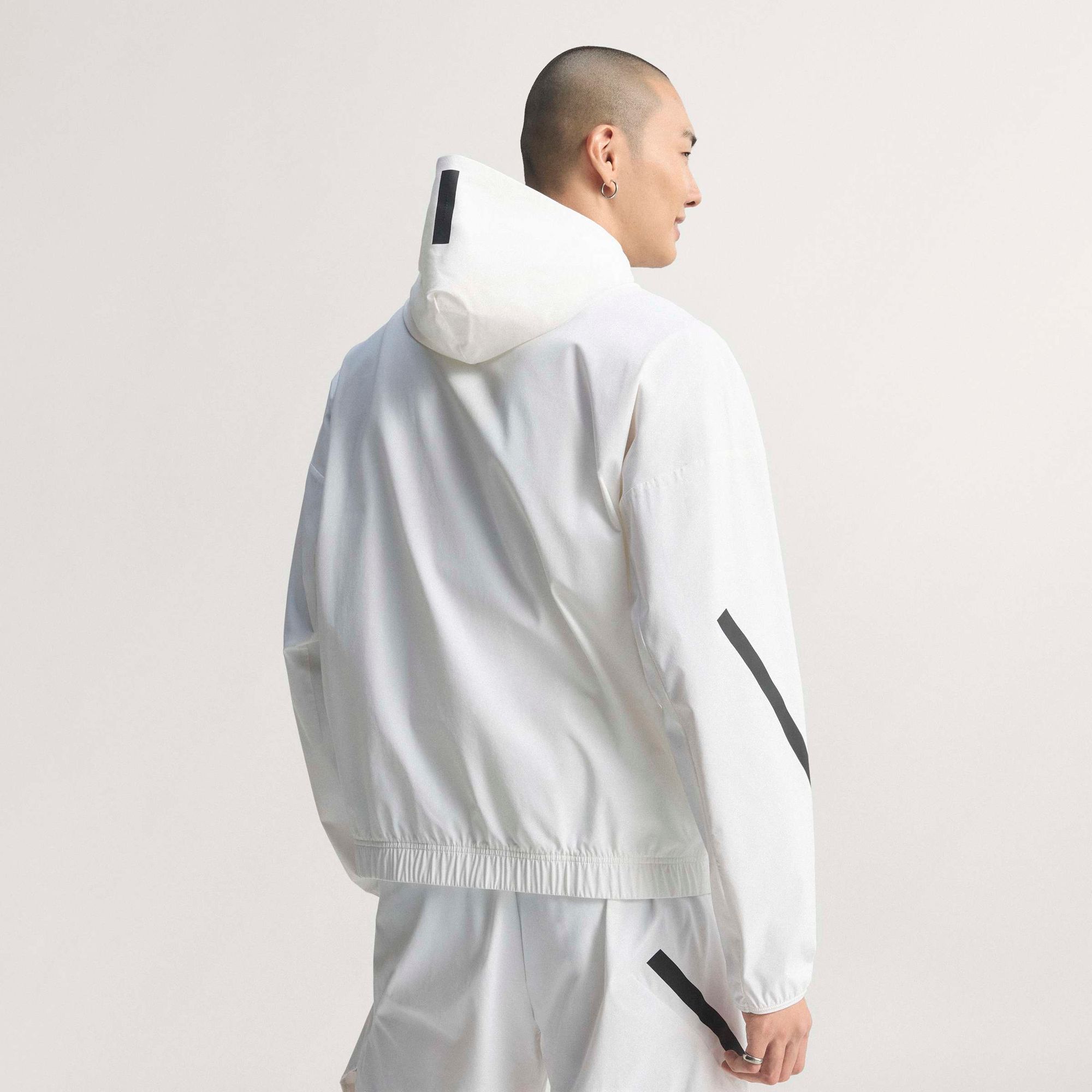 Matte Gummiprints erinnern an die Spielfeldlinien, während die Kordelzüge und Reißverschlüsse mit Tech-Vibes dem Design eine klare, moderne Note verleihen.