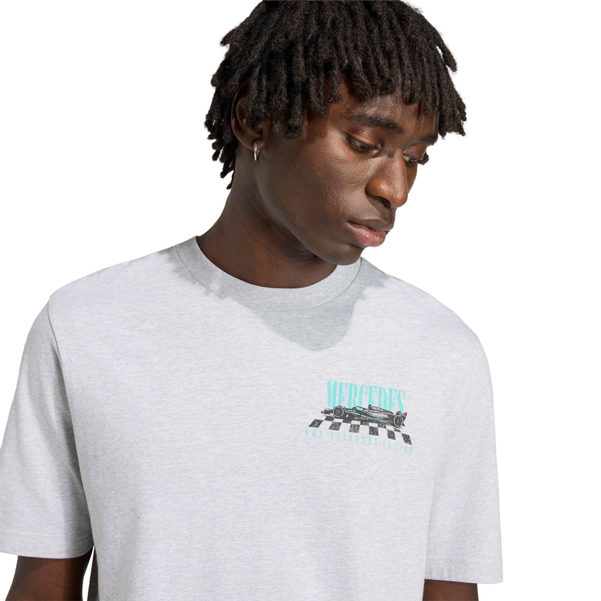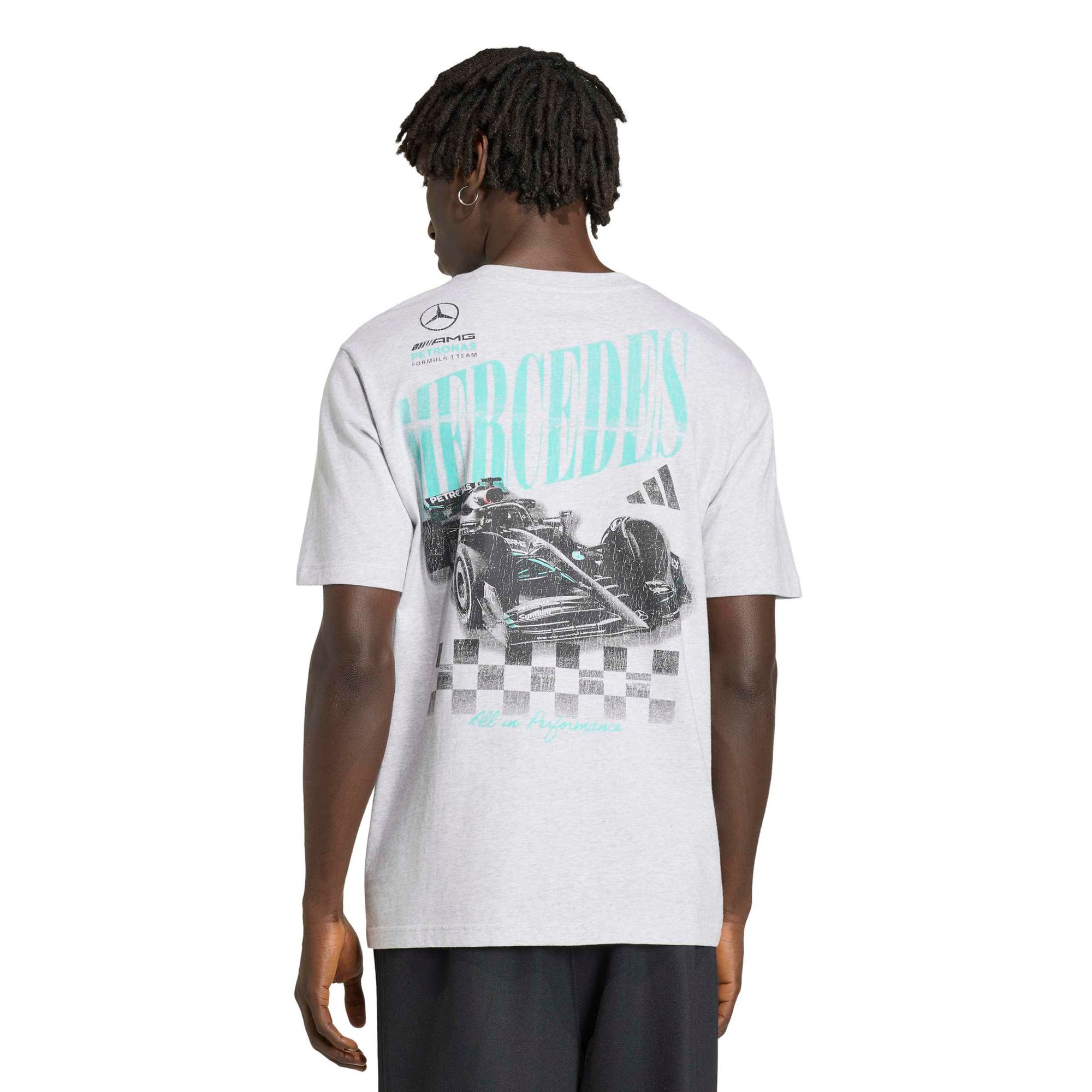 Das Mercedes – AMG Petronas Formula 1 Team Graphic 01 T-Shirt fängt den Vintage-Vibe der Formel 1 ein. Dieses T-Shirt bringt den Nervenkitzel der Rennstrecke in deine Alltagsgarderobe.