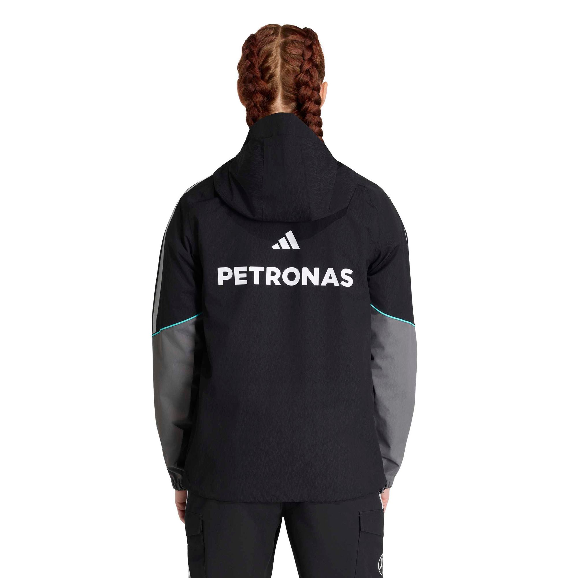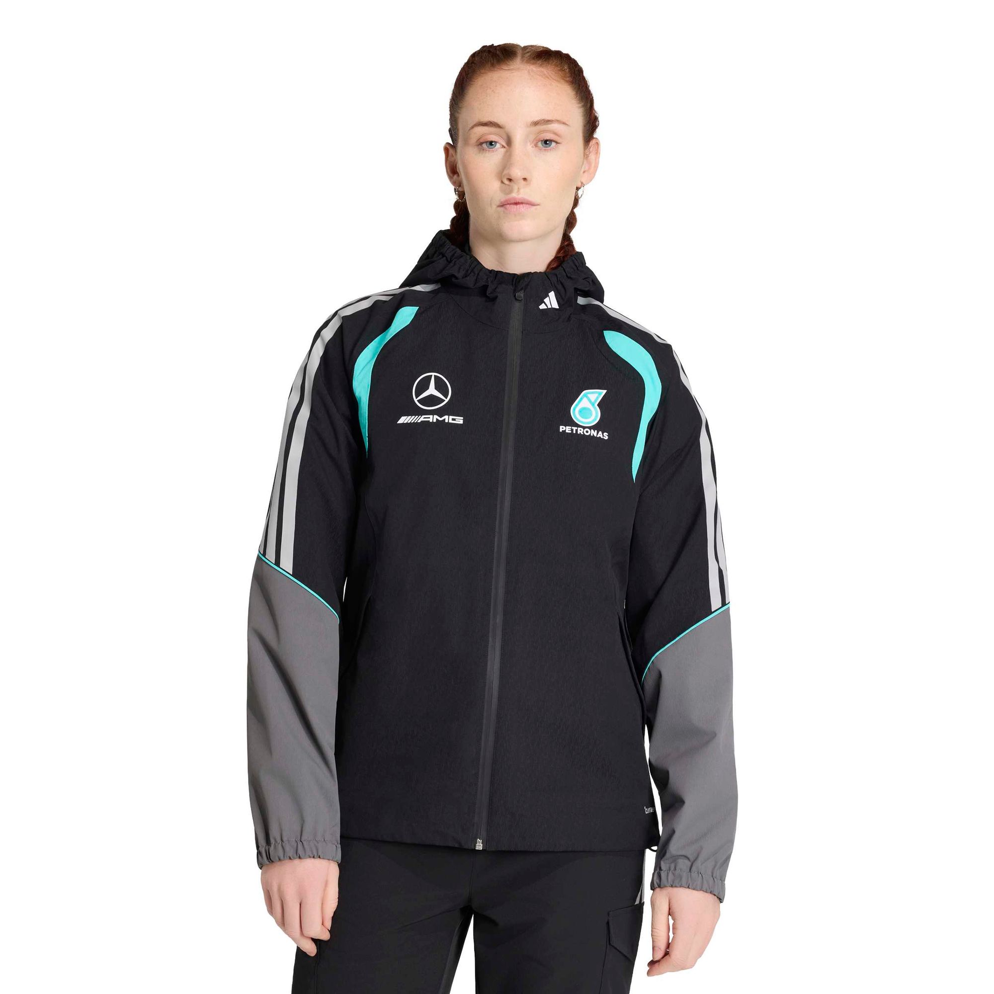 Die Mercedes - AMG Petronas Formula 1 Team Mechanics Regenjacke kombiniert den Stil von adidas und die Welt des Motorsports und bietet höchsten Tragekomfort.