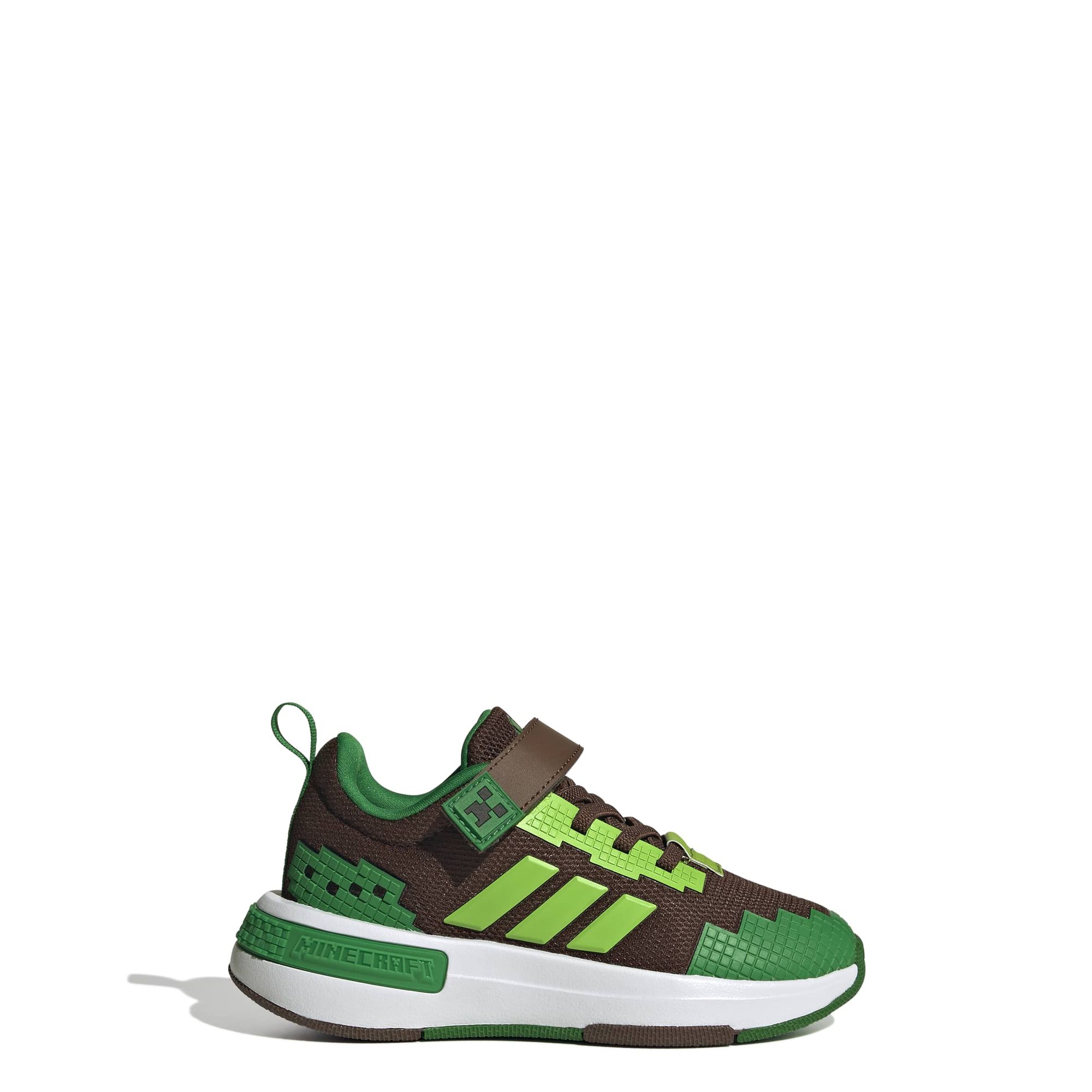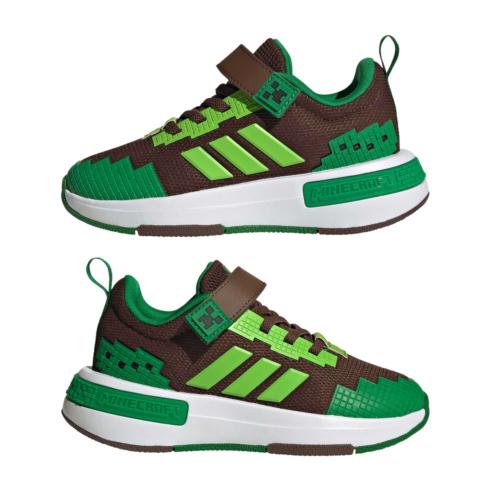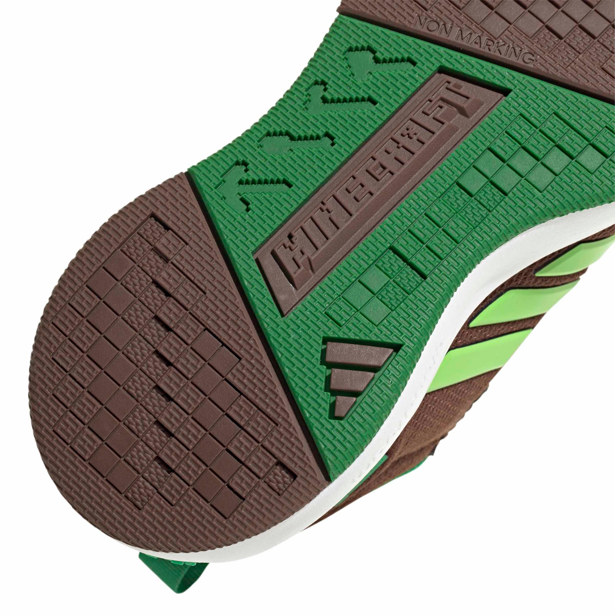 Die adidas Details und das Minecraft-Design verleihen dem Schuh einen coolen Touch, der die pixelbasierte Kreativität befeuert, ohne es zu übertreiben.