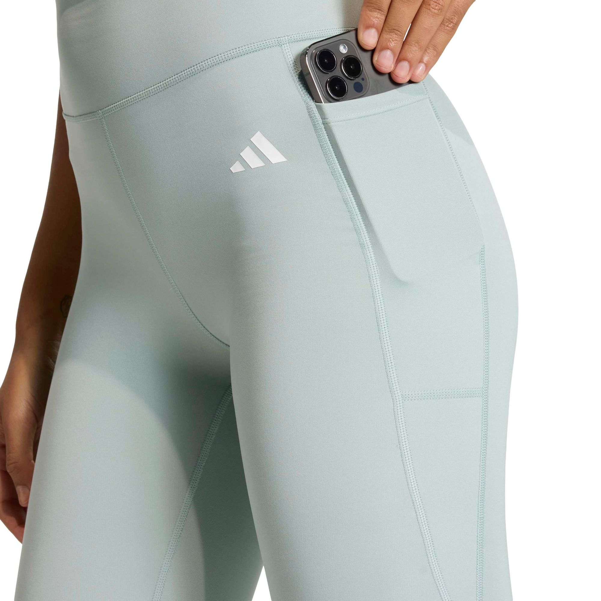 Das geschmeidige, dehnbare Material dieser Leggings fürs Training macht jeden deiner Schritte, Kniebeugen und Sprünge mit. Du kannst dich beim HIIT-Training oder Indoor-Cycling sicher fühlen und auf die Sache konzentrieren, denn die getapten Nähte verhindern, dass sich der Bund einrollt. Die feuchtigkeitsabsorbierende adidas AEROREADY Technologie bleibst du trocken und kannst dich auf deine Ziele konzentrieren. In der praktischen Tasche kannst du deine wichtigsten Utensilien verstauen, sodass du direkt vom Training zum Rest des Tages übergehen kannst.