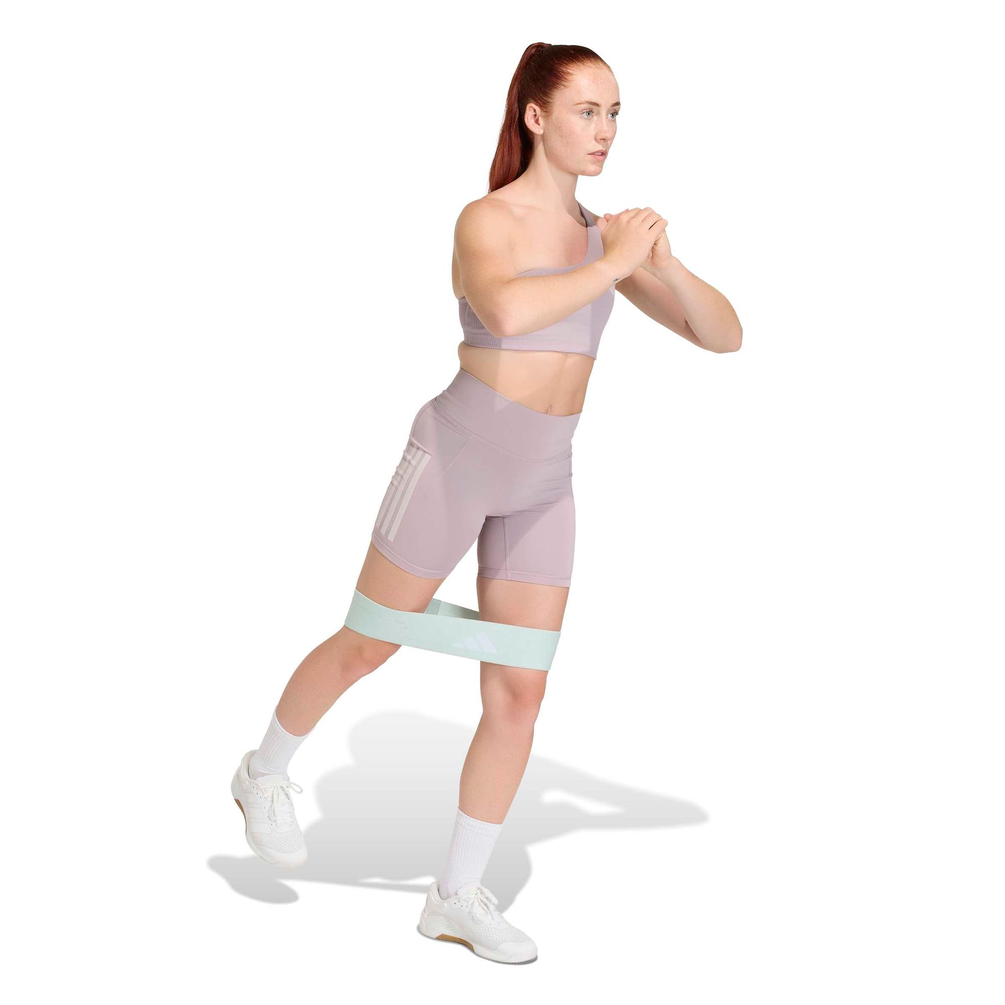 Anti-Rutsch-Punkte auf den Polstern verringern das Abrutschen und sorgen so für eine ablenkungsfreie Leistung, und das Performance Logo rundet den Look des Basics ab, das von der ersten bis zur letzten Wiederholung mit deiner Energie vibed.
