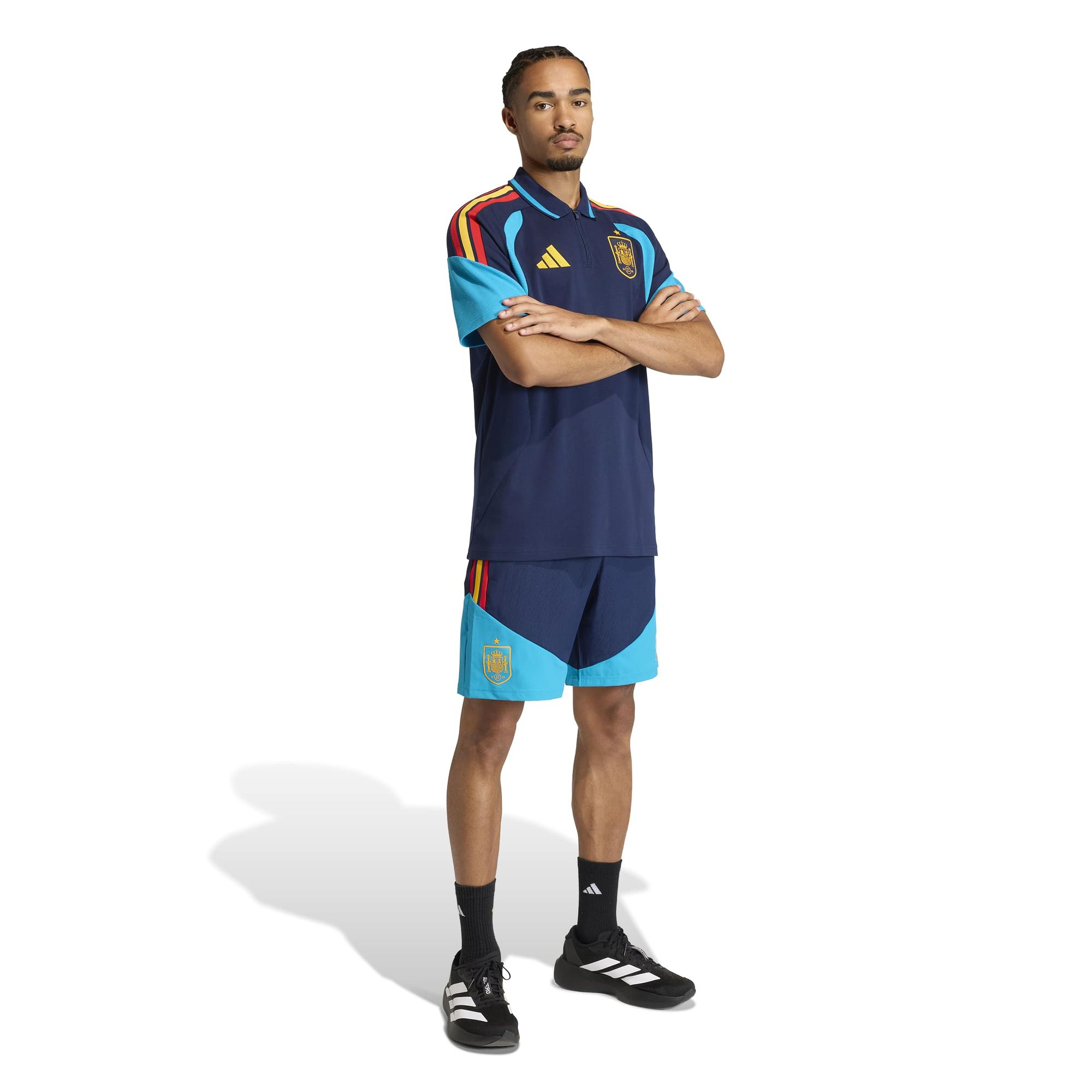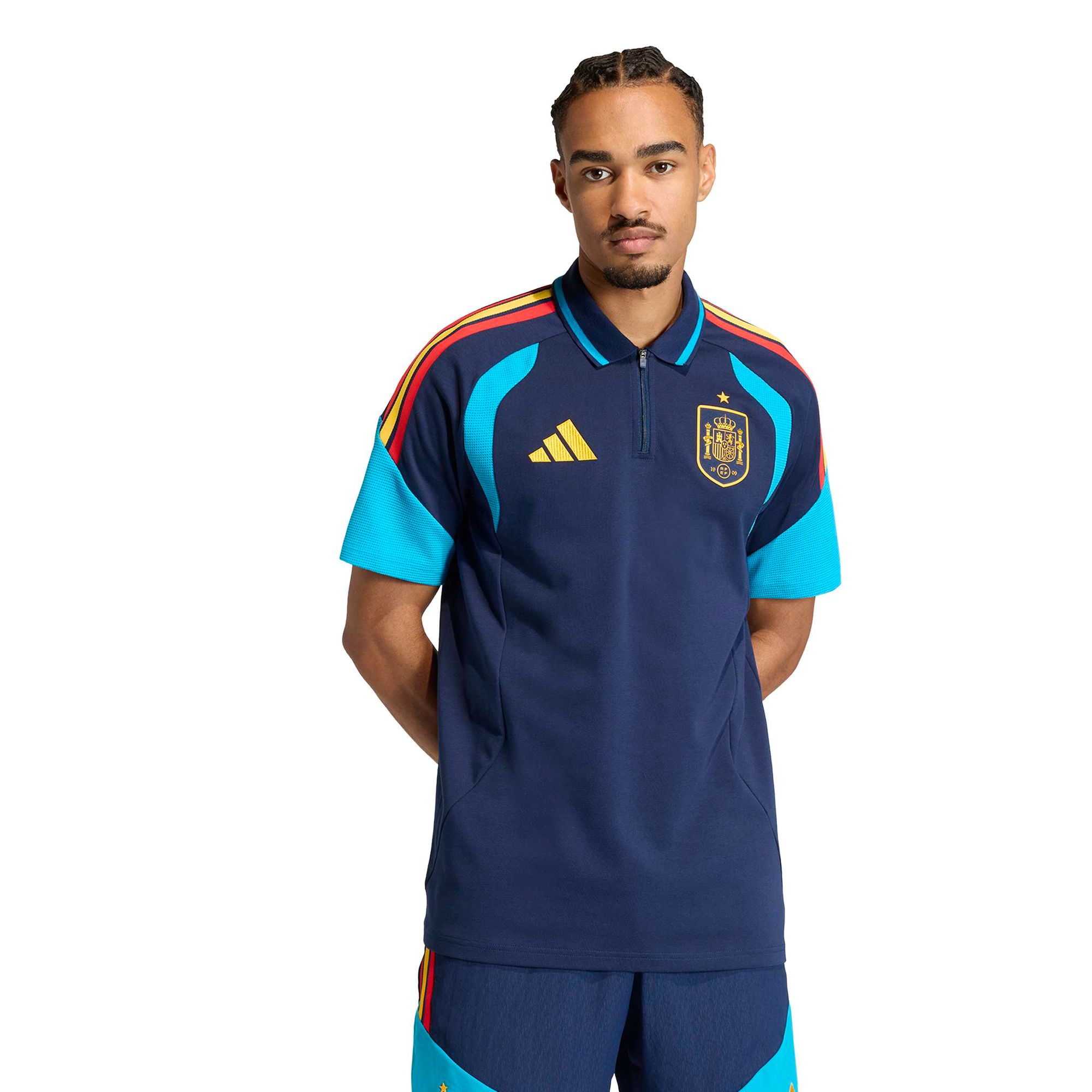 Mach dir die spanischen Eleganz zu eigen mit dem Spanien 26 Tiro Poloshirt. Inspiriert vom lebendigen Design der spanischen Flagge feiert dieses Poloshirt das sportliche Erbe mit Stil und lässt dich deine Fußballleidenschaft auch abseits des Platzes zeigen.